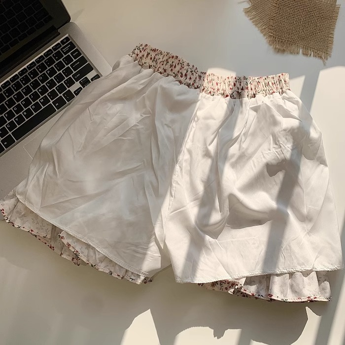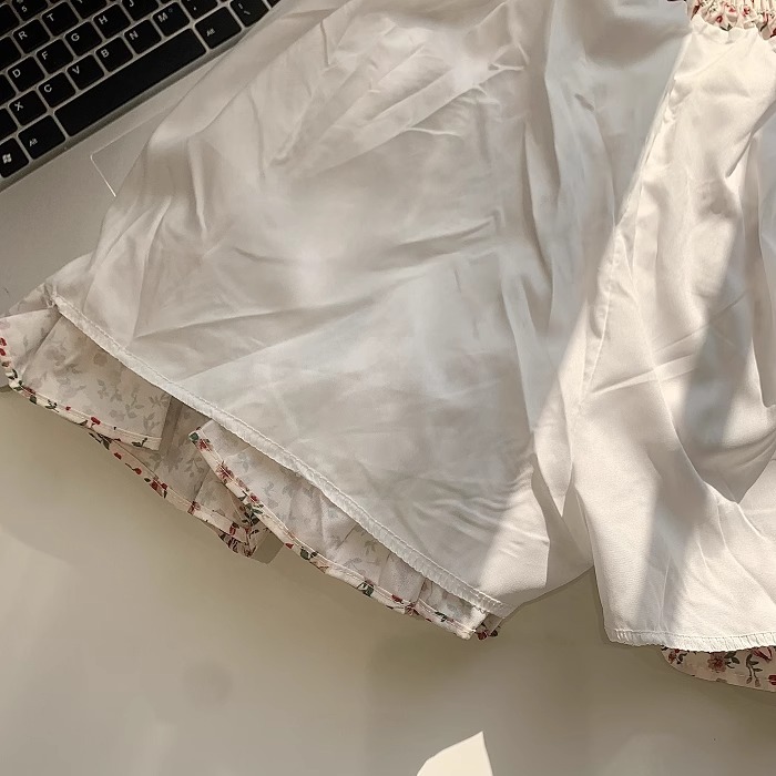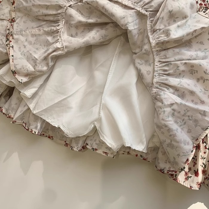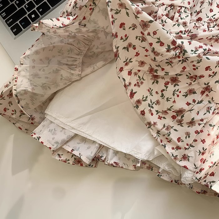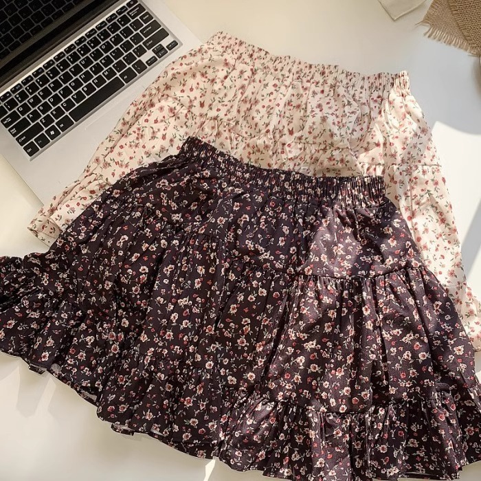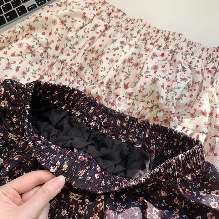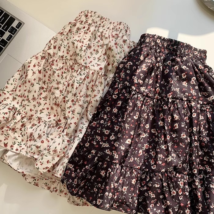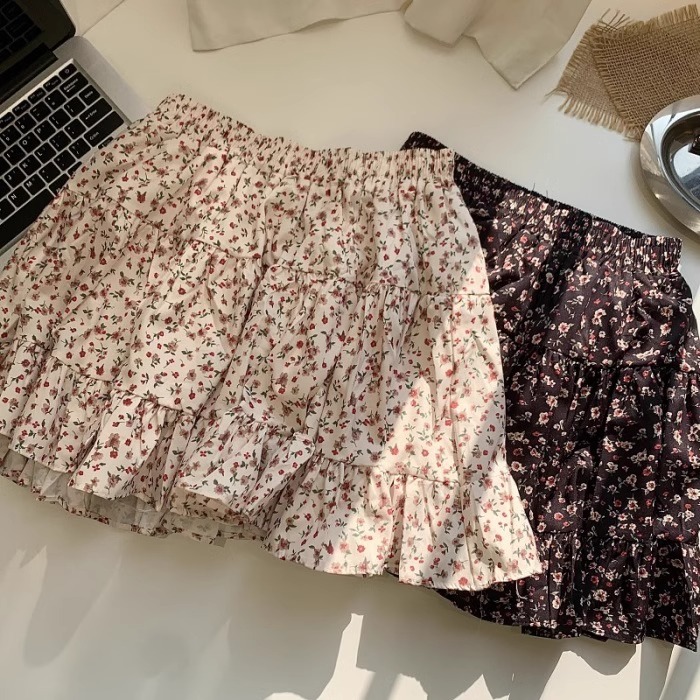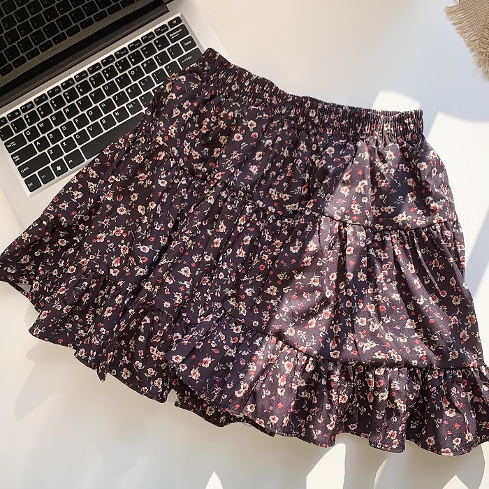 홍콩 스타일 연령 감소 꽃무늬 스커트 여름 입체 A라인 스커트 신축성 있는 하이웨이스트 슬리밍 퍼프 스커트
