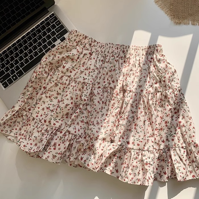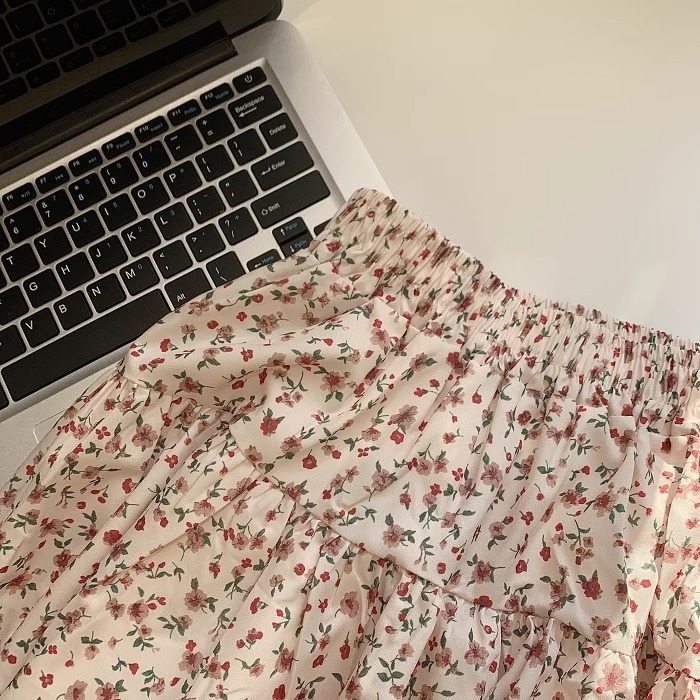 홍콩 스타일 연령 감소 꽃무늬 스커트 여름 입체 A라인 스커트 신축성 있는 하이웨이스트 슬리밍 퍼프 스커트스토어 가기