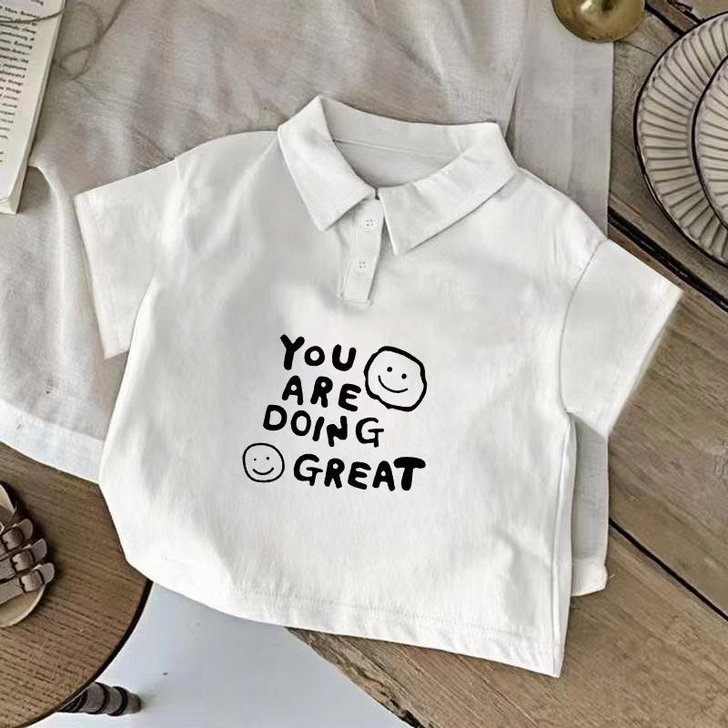 어린이 여름 옷깃 티셔츠 소년 소녀 올매치 톱 2025 뉴 여름 중소 어린이 아기 착용 트렌디스토어 가기
