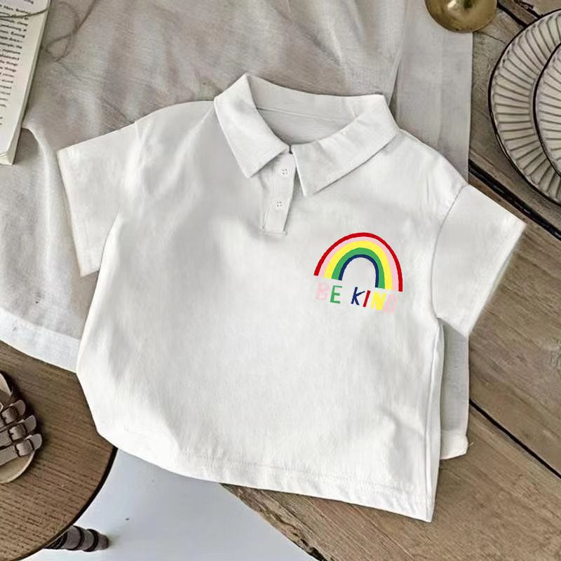 어린이 여름 옷깃 티셔츠 소년 소녀 올매치 톱 2025 뉴 여름 중소 어린이 아기 착용 트렌디