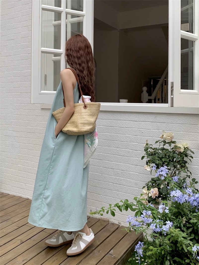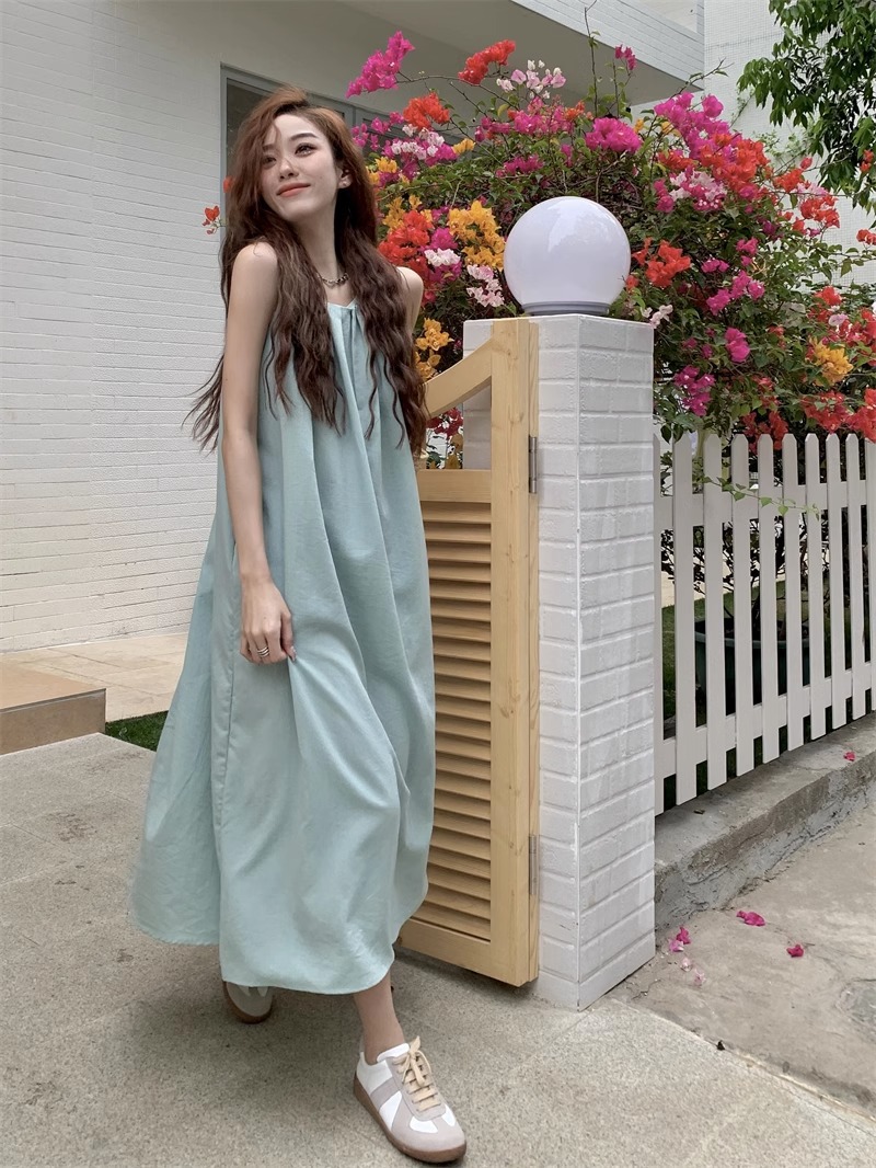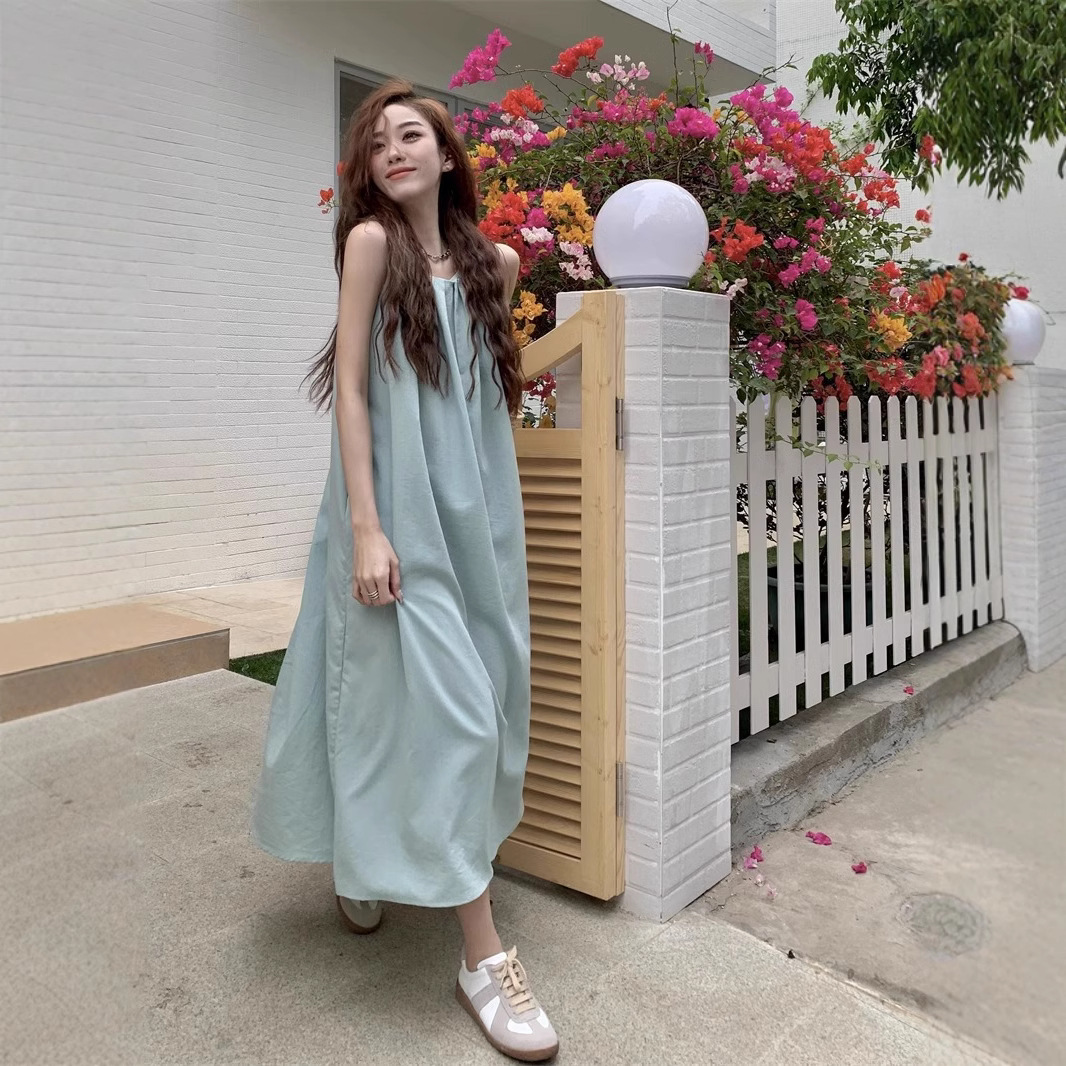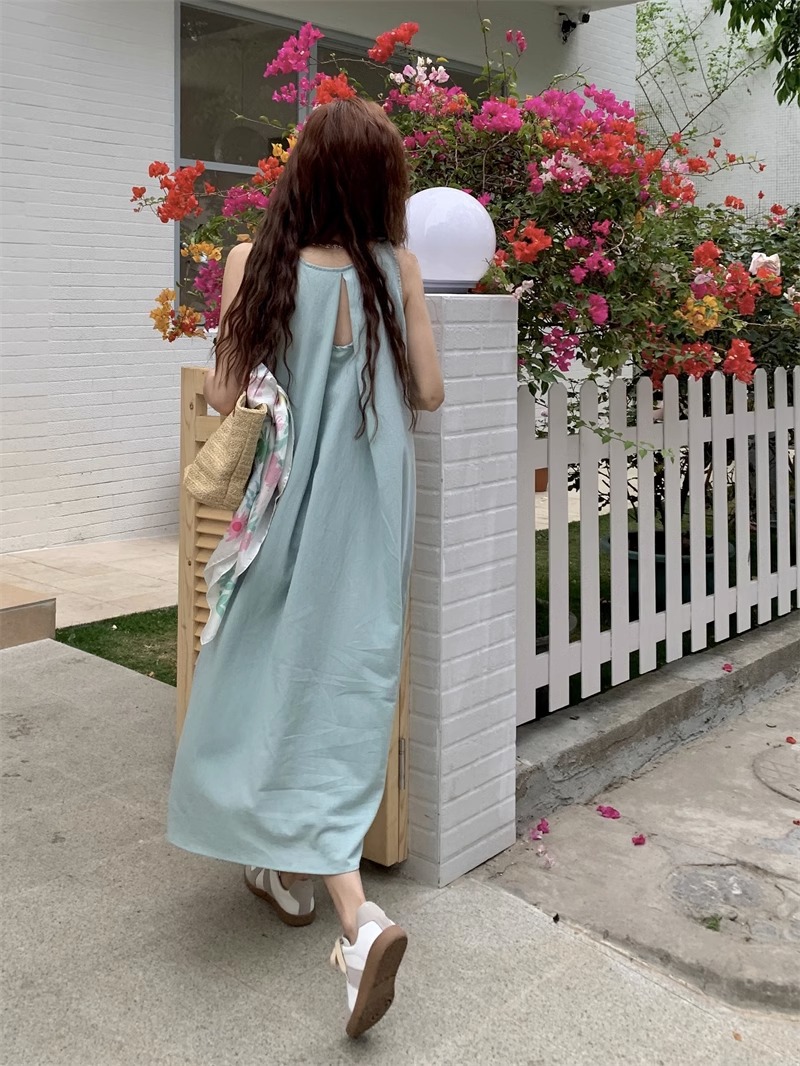 봄과 여름 2025 새로운 디자인 센스 휴일 시원한 민소매 원피스 프랑스 긴 원피스 미니멀리스트 틈새 여름 원피스스토어 가기