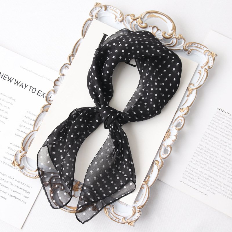 봄과 가을 항저우 실크 70 뽕나무 실크 스카프 쉬폰 폴카 도트 복고풍 맞춤형 다용도 작은 사각형 스카프 여성 스카프