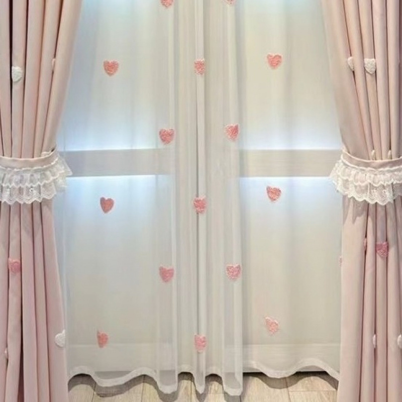 Q3Y 새 소녀 침실 커튼 어린이 방 한국 핑크 만화 소녀 공주 귀여운 러브 베이 창 표지스토어 가기