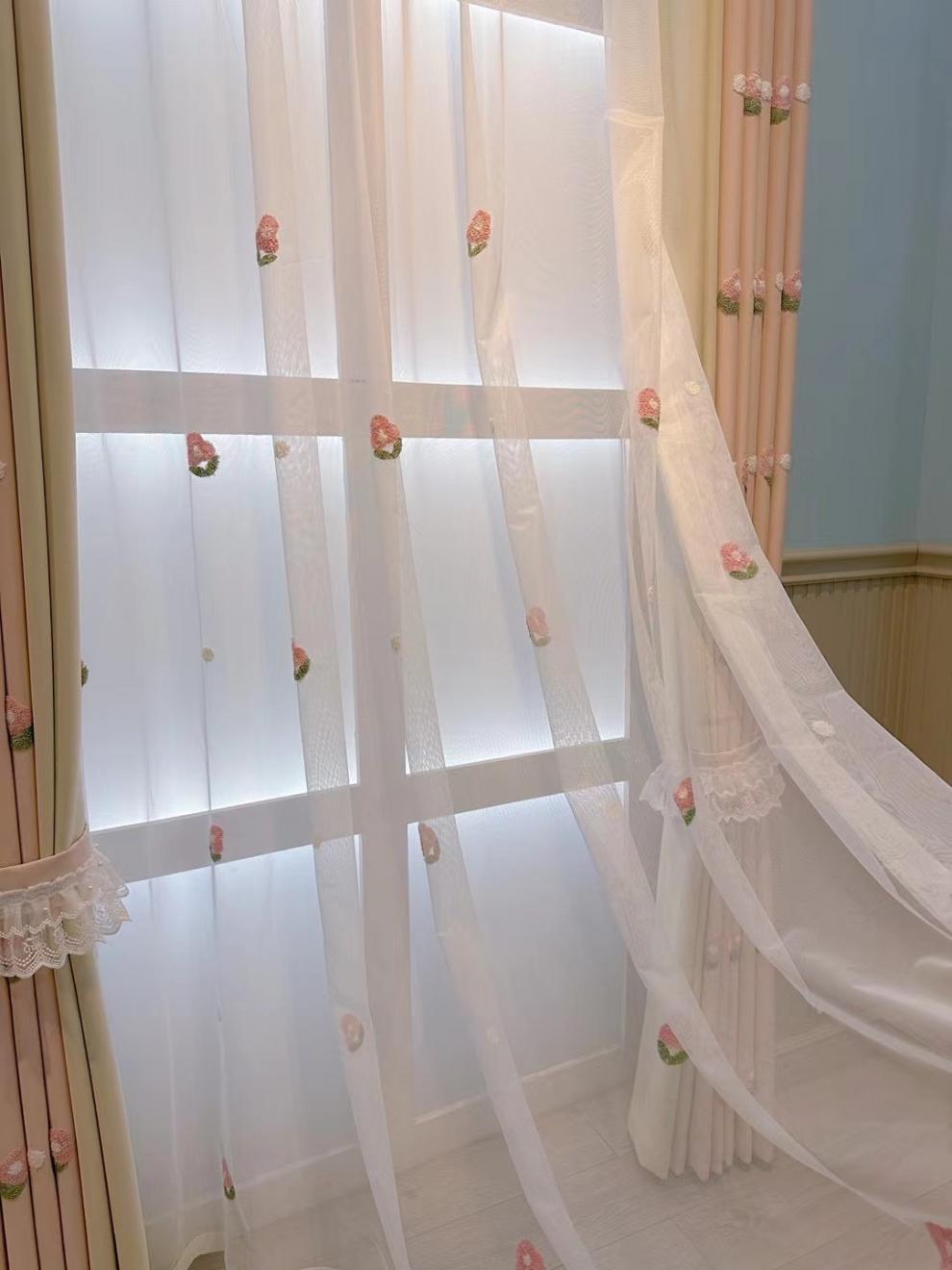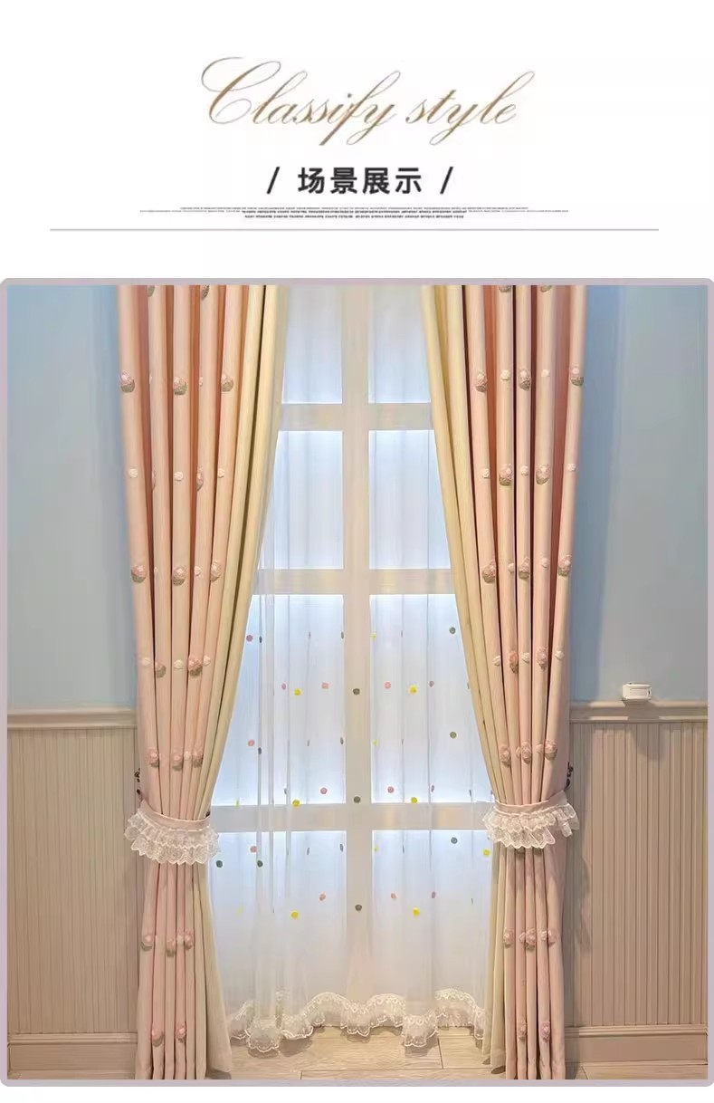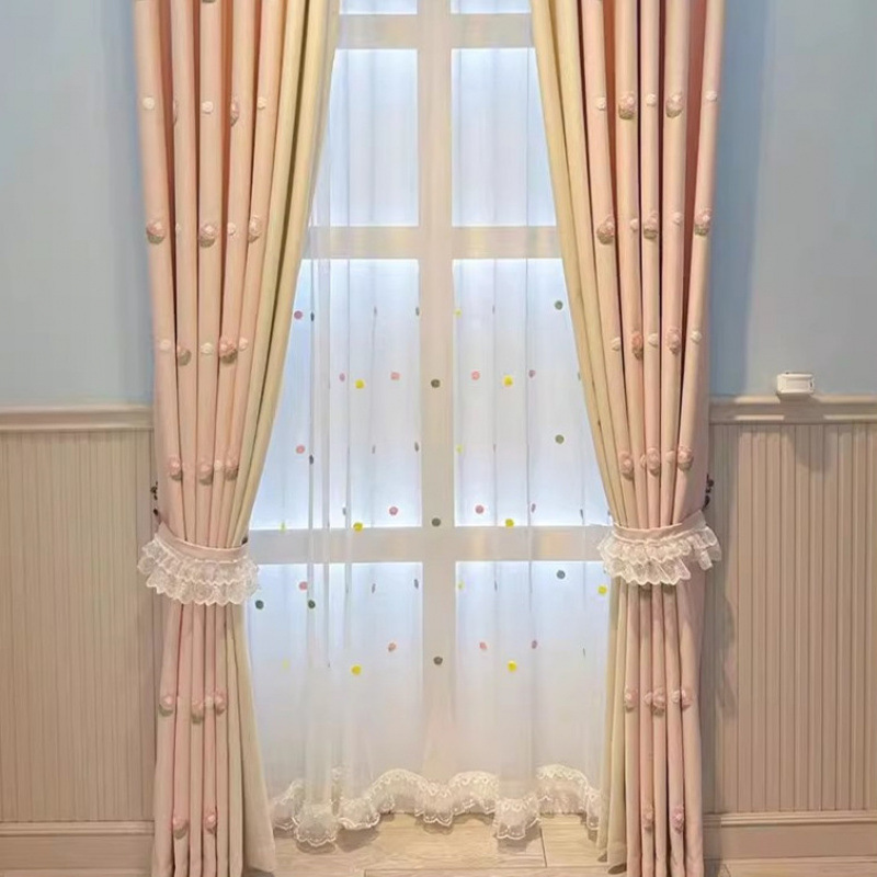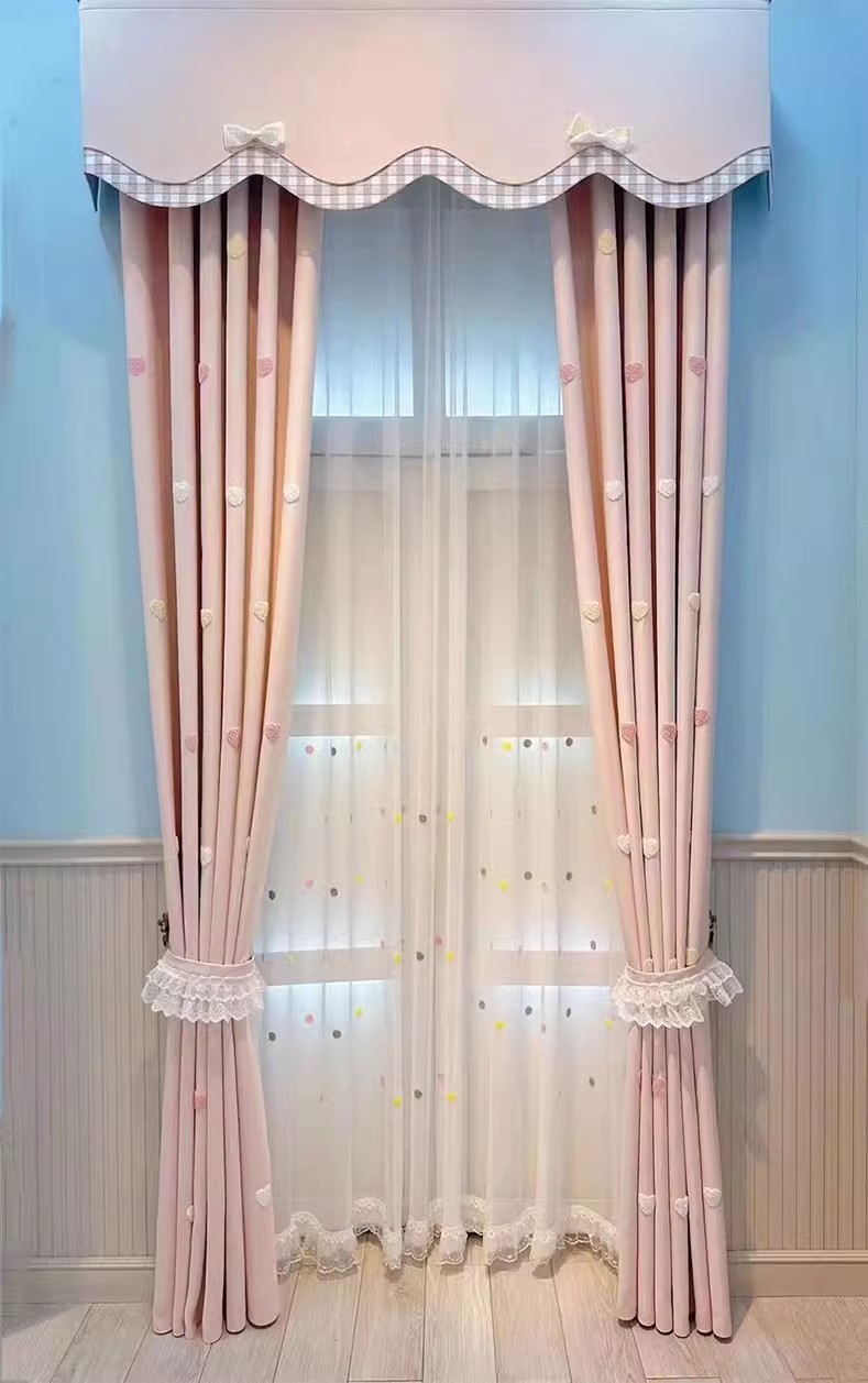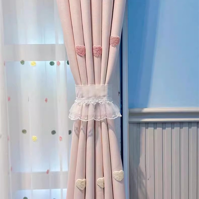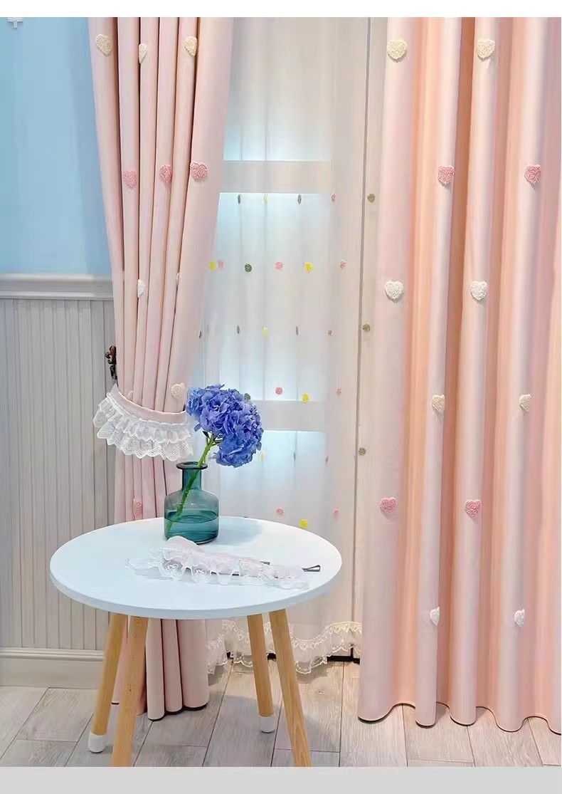 Q3Y 새 소녀 침실 커튼 어린이 방 한국 핑크 만화 소녀 공주 귀여운 러브 베이 창 표지