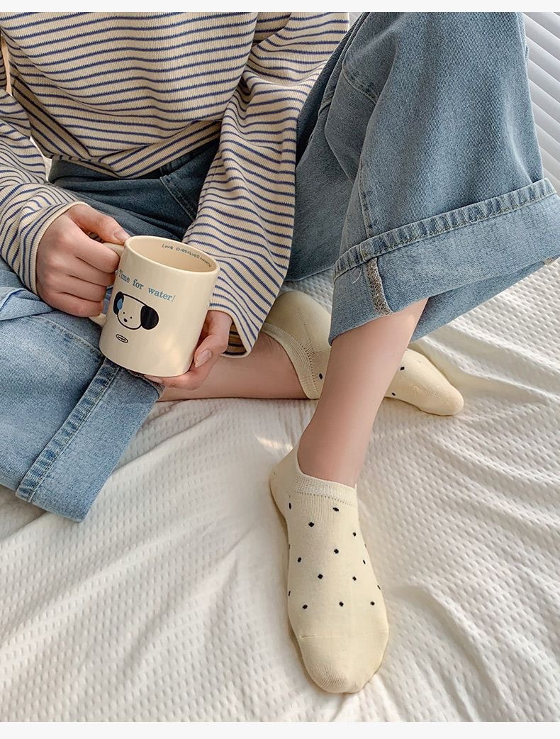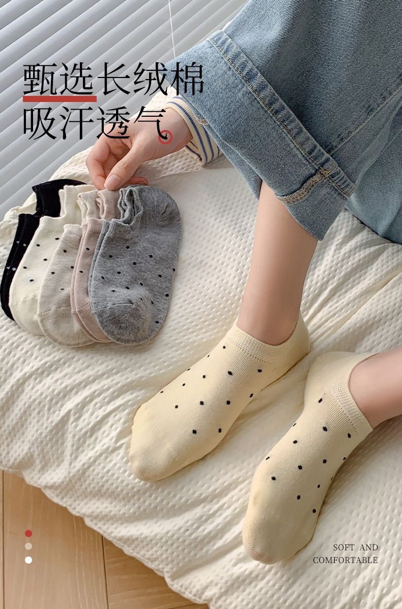 여름 부드러운 작은 ~ 봄과 여름 일본 단색 폴카 도트 보트 양말은 보이지 않는 양말 양말 달콤한 조커로 떨어지지 않습니다.