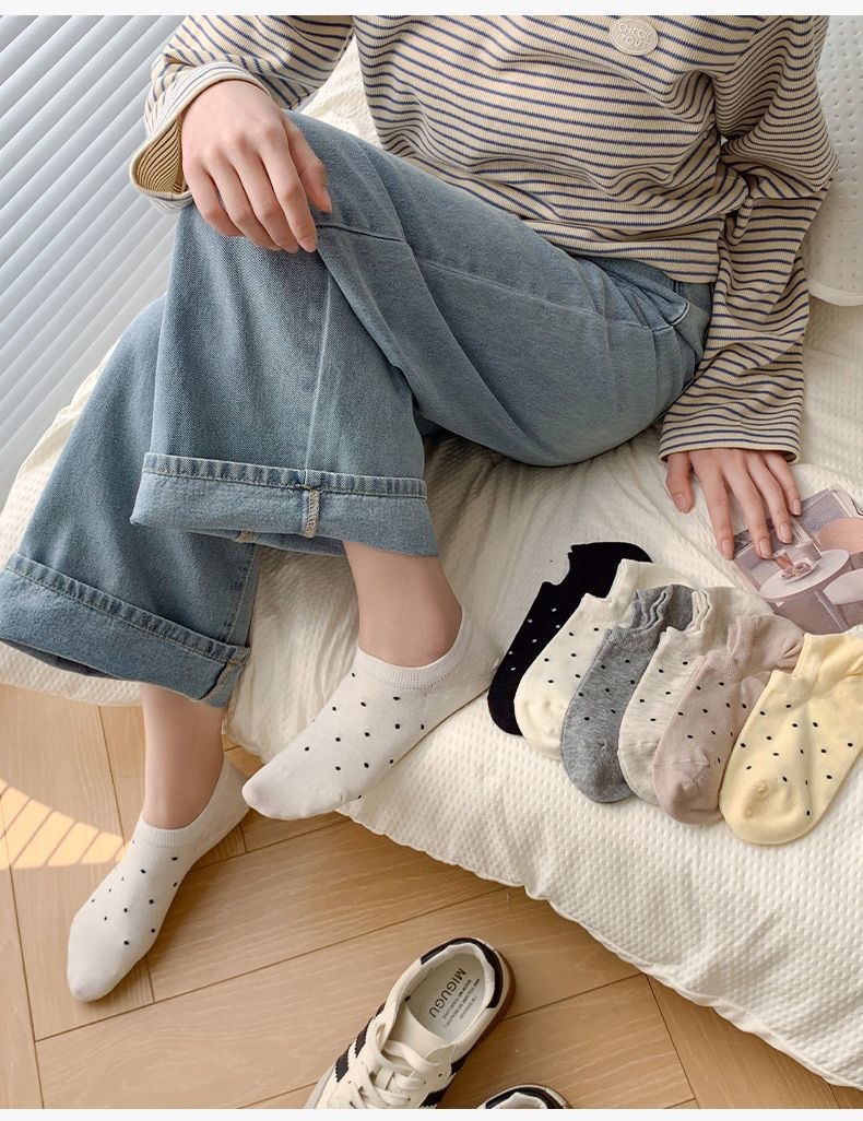 여름 부드러운 작은 ~ 봄과 여름 일본 단색 폴카 도트 보트 양말은 보이지 않는 양말 양말 달콤한 조커로 떨어지지 않습니다.스토어 가기