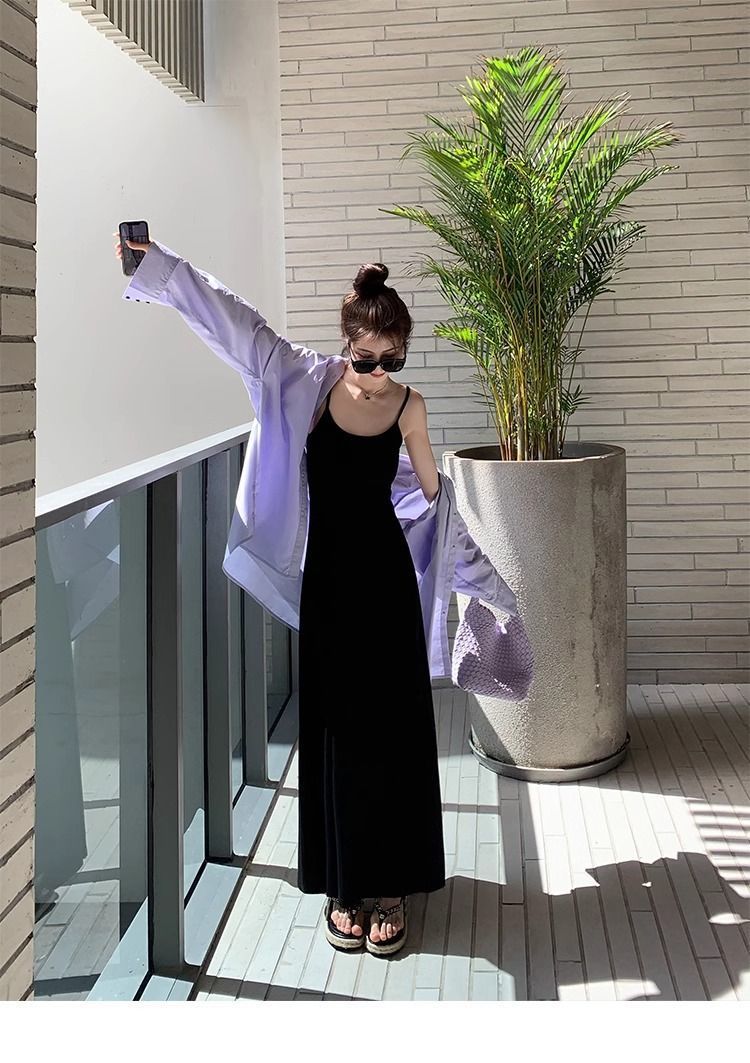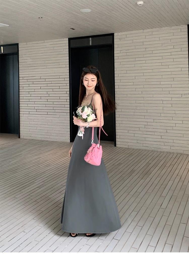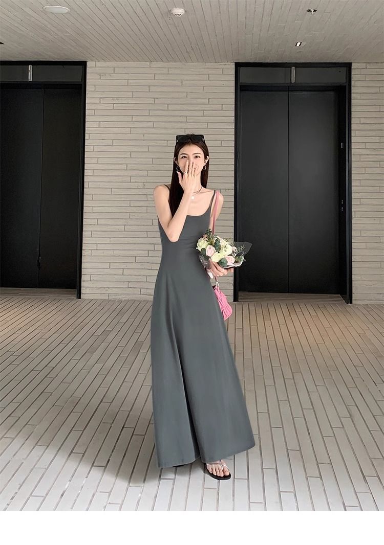 여름 원피스 면 슬림핏 슬립 원피스 2025 새로운 허리 슬리밍 우아한 간단한 긴 원피스
