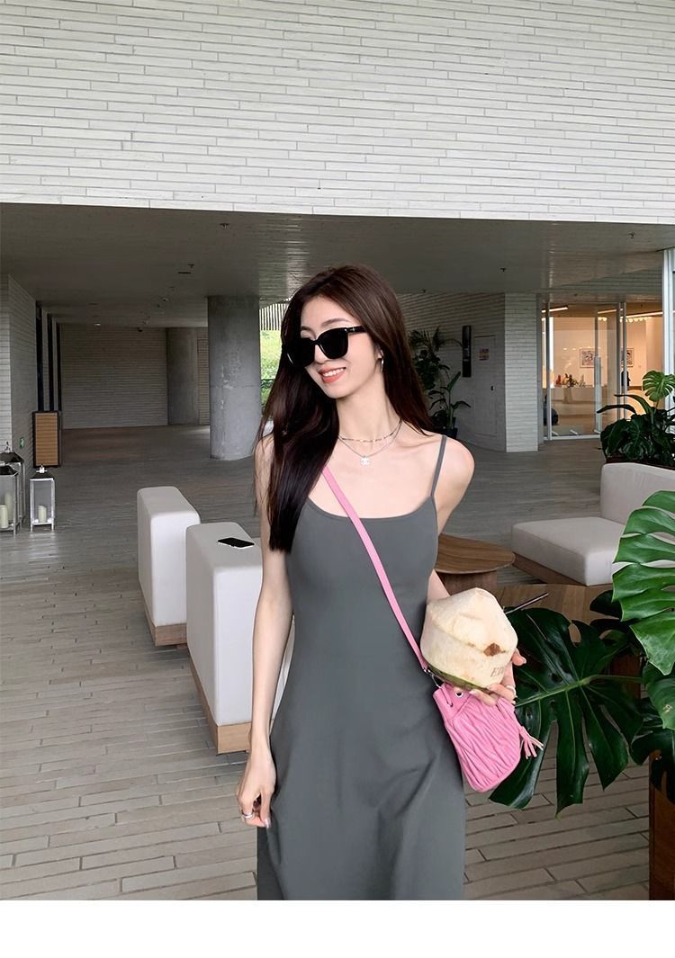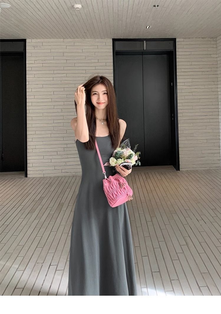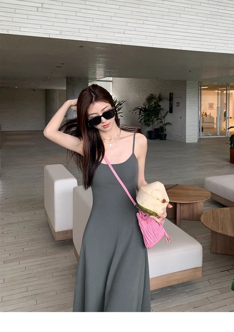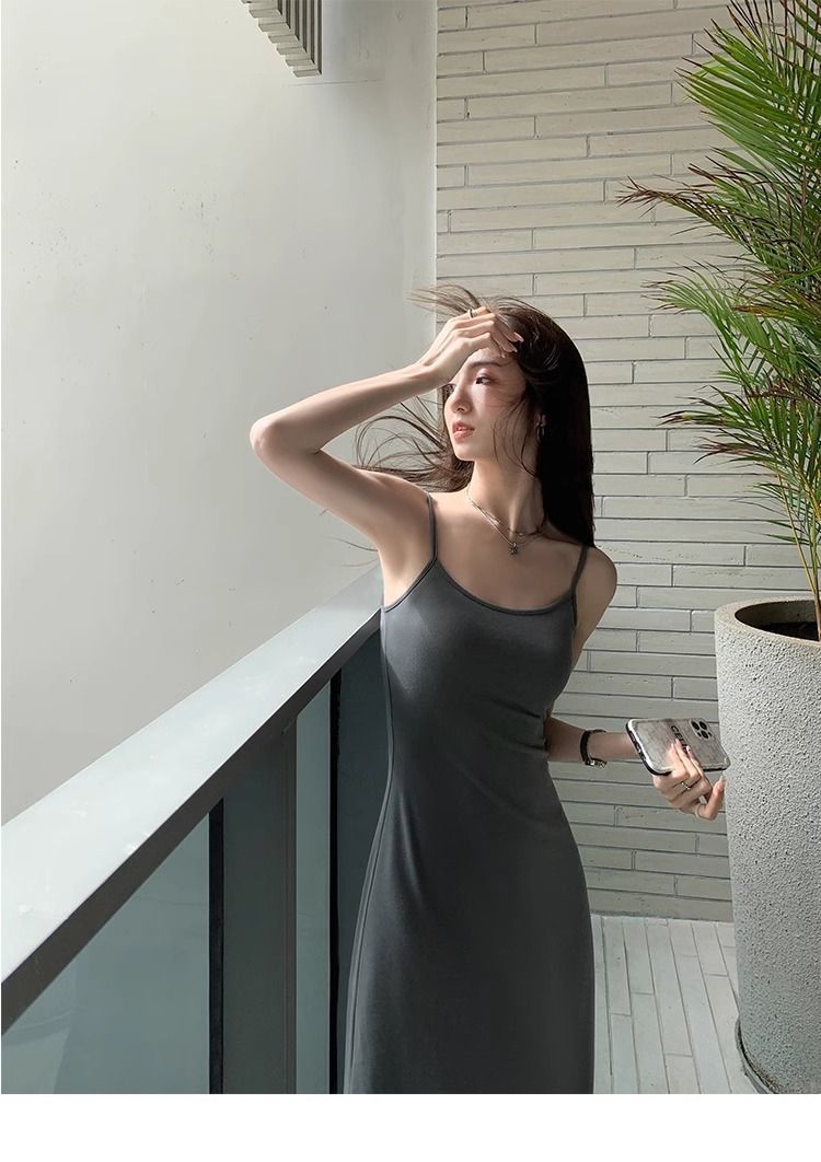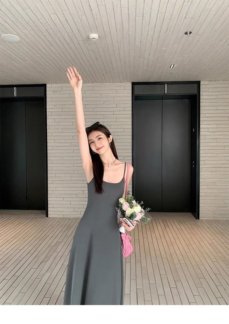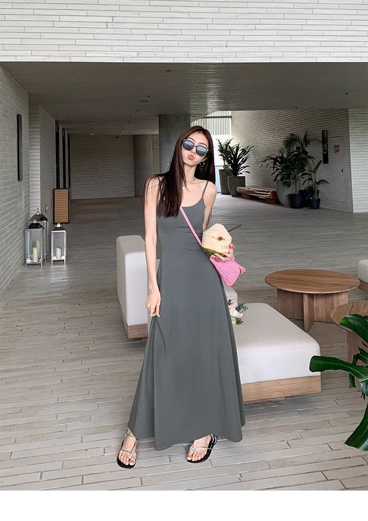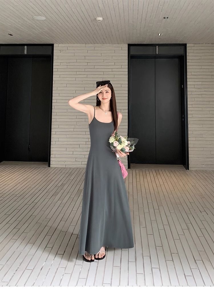 여름 원피스 면 슬림핏 슬립 원피스 2025 새로운 허리 슬리밍 우아한 간단한 긴 원피스스토어 가기