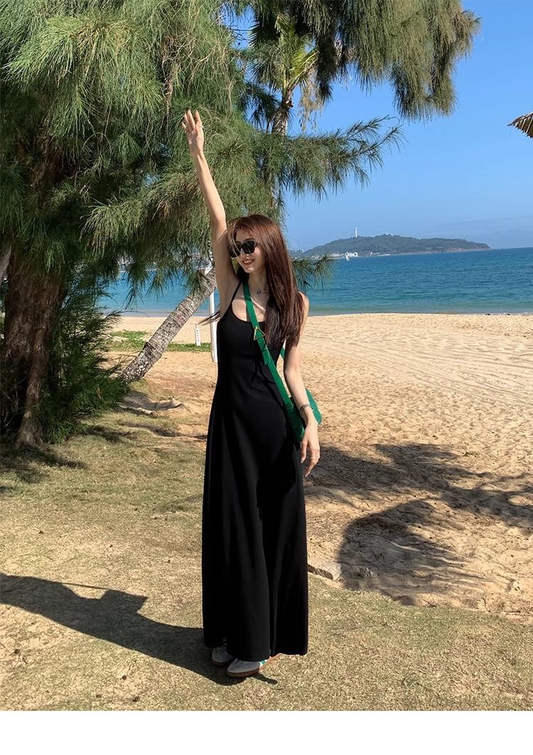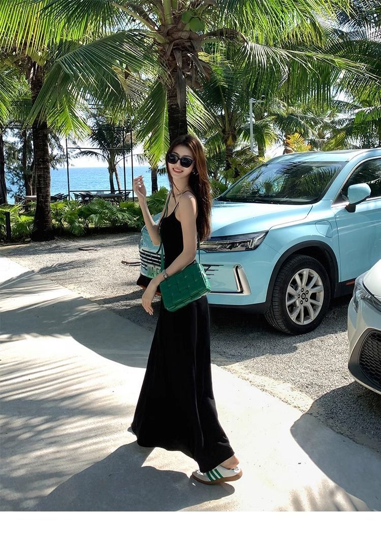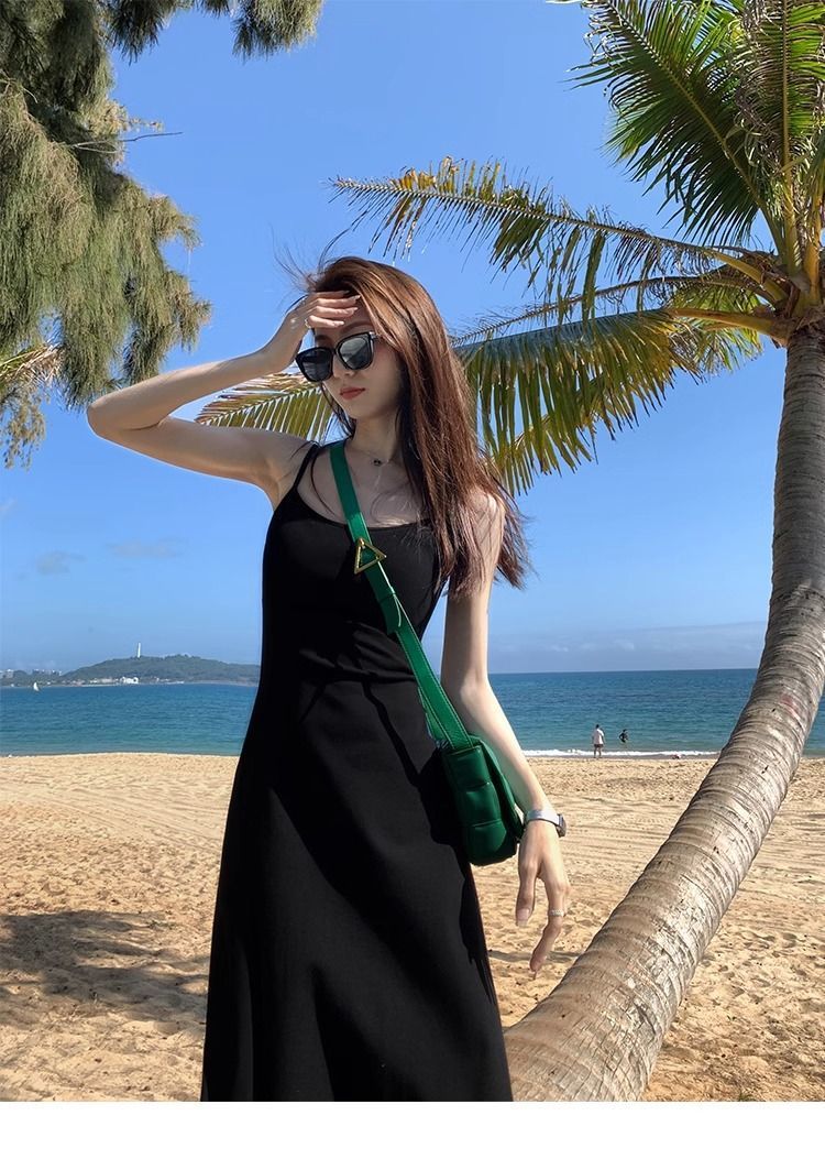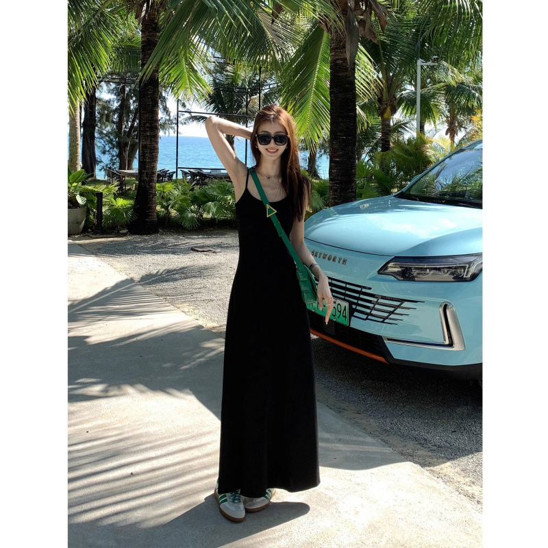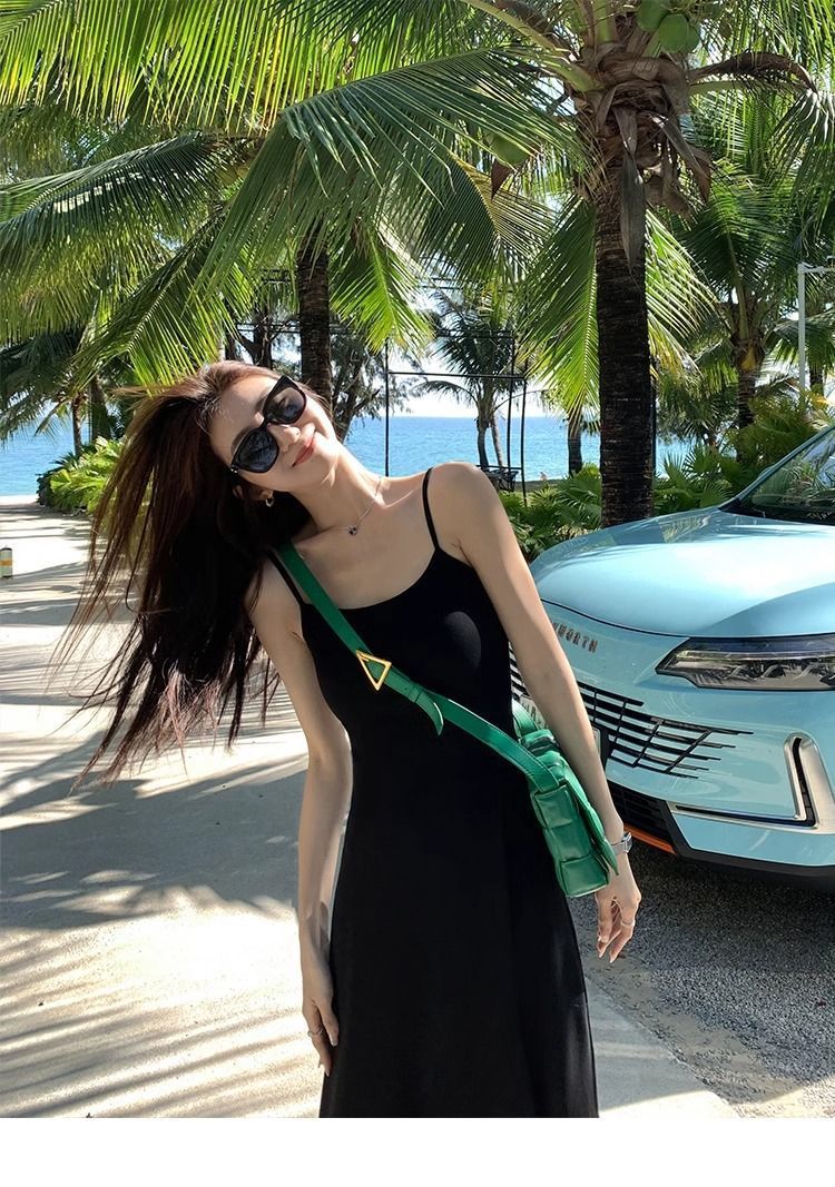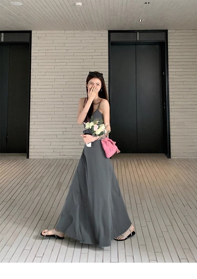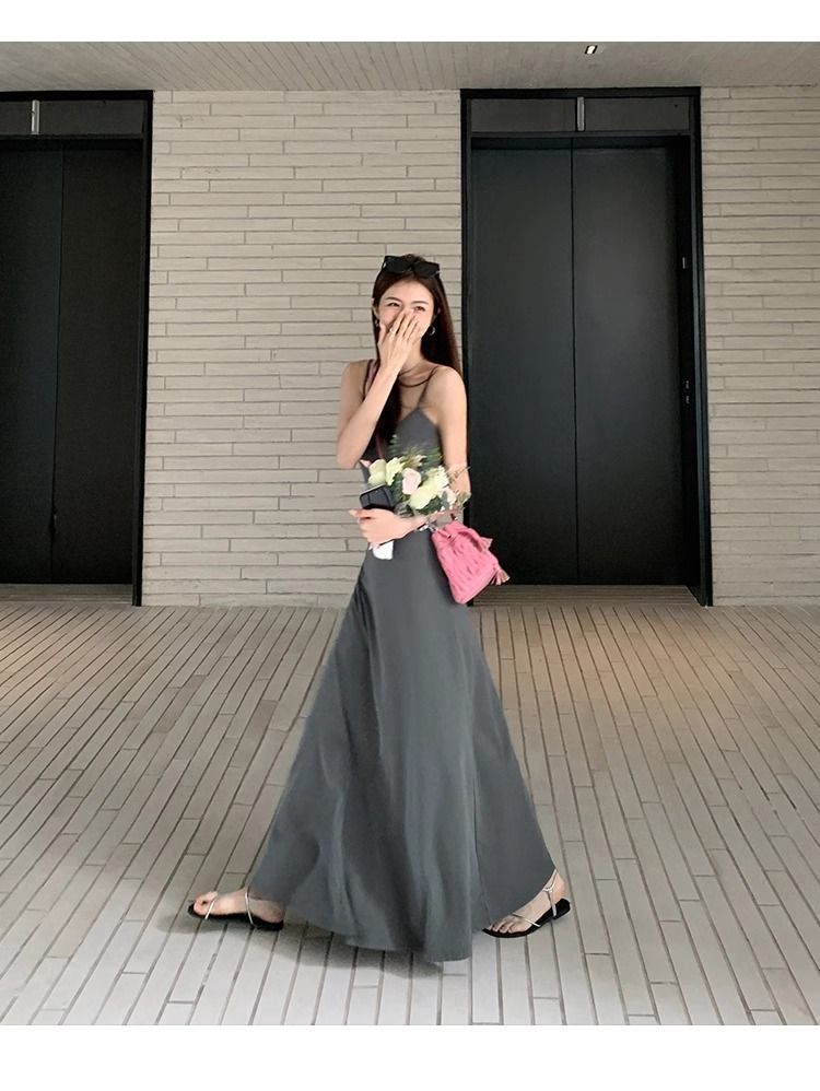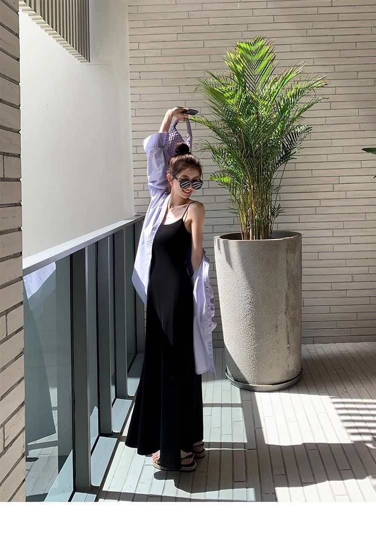 여름 원피스 면 슬림핏 슬립 원피스 2025 새로운 허리 슬리밍 우아한 간단한 긴 원피스스토어 가기