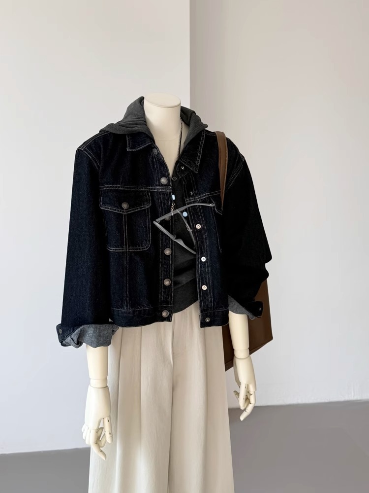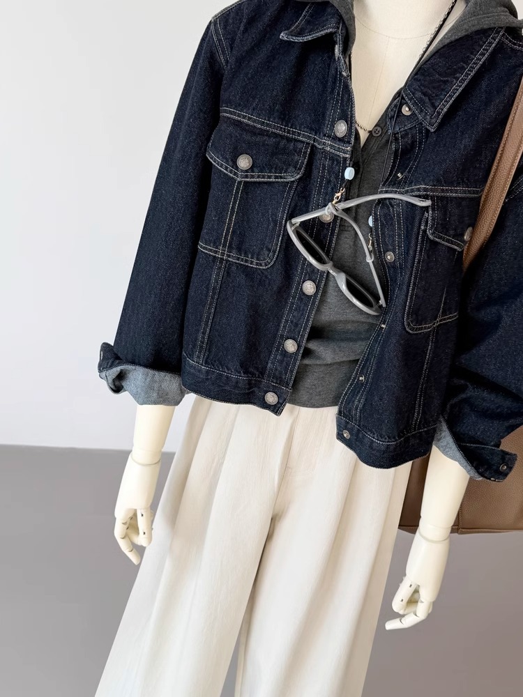 봄 2025 새로운 한국 스타일 클래식 어깨 쇼트 탑 라인 디자인 데님 재킷 여성 느슨한 슬리밍 재킷스토어 가기