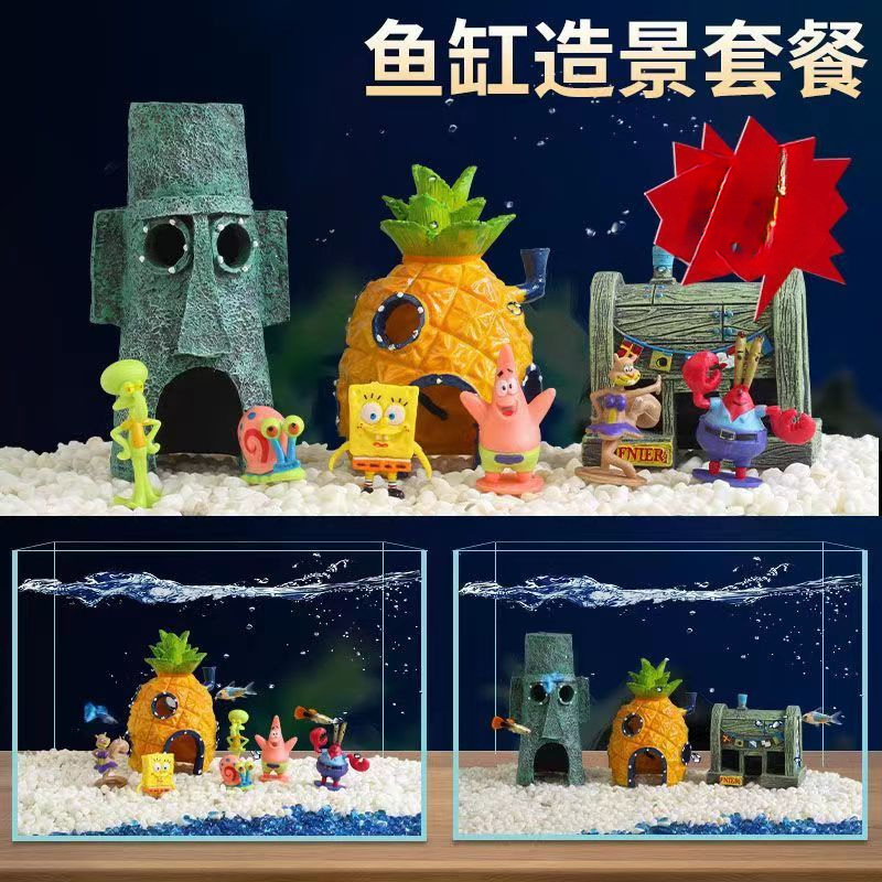 생선 탱크 파인애플 하우스 조경 장식 수족관 만화 인형 집 장식 패키지 스폰지 밥 탈출 하우스스토어 가기