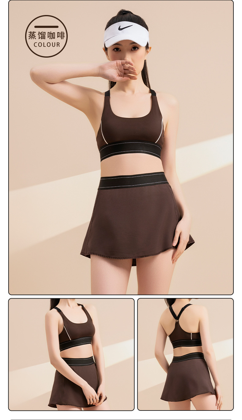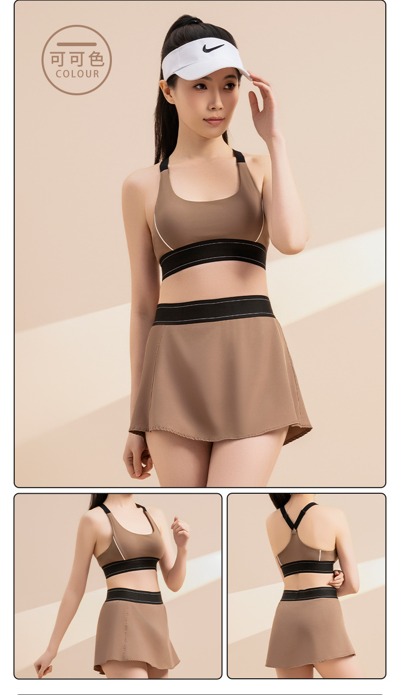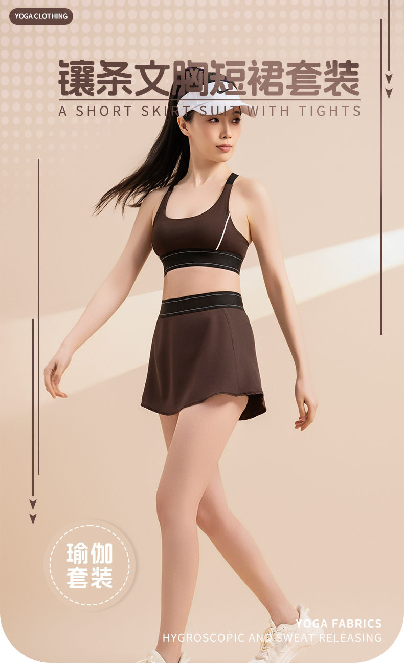 Noordin 폭발성 크로스 뷰티 백 삽입 요가 세트 세트 충격 방지 푸시 업 브라 바지 스커트 스포츠 퀵 드라이 피트니스 여성