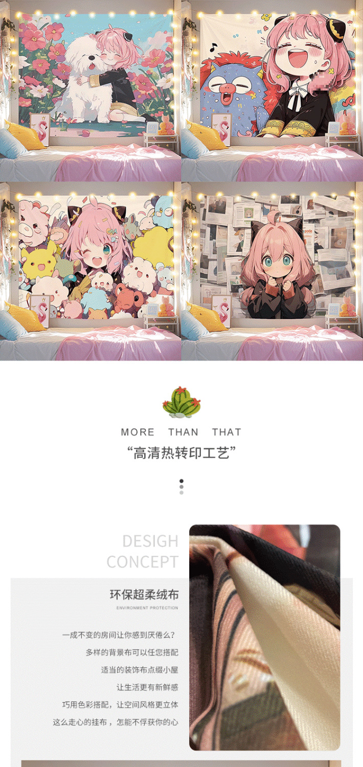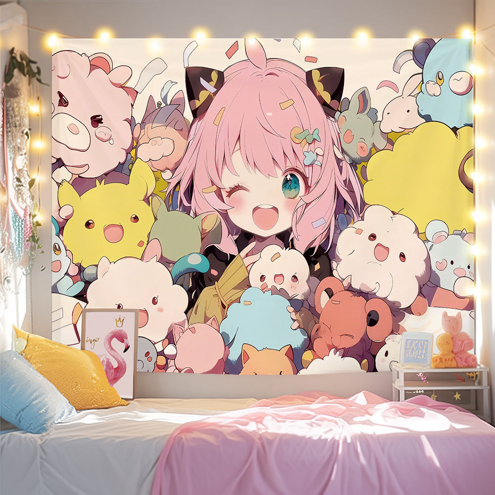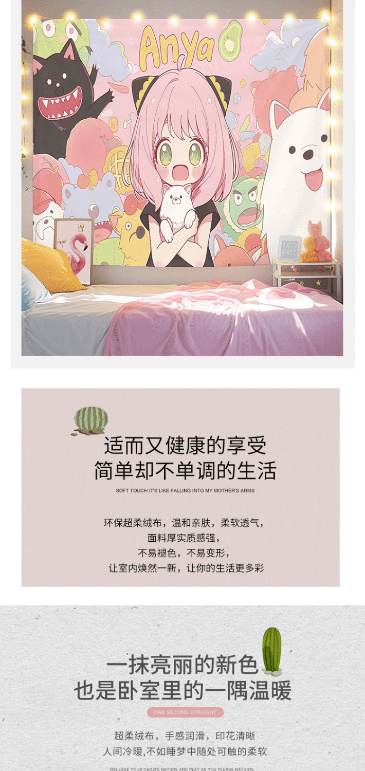 아니아 스파이 하우스 배경 매달려 헝겊 귀여운 만화 소녀의 방 기숙사 장식 침실 벽 천스토어 가기