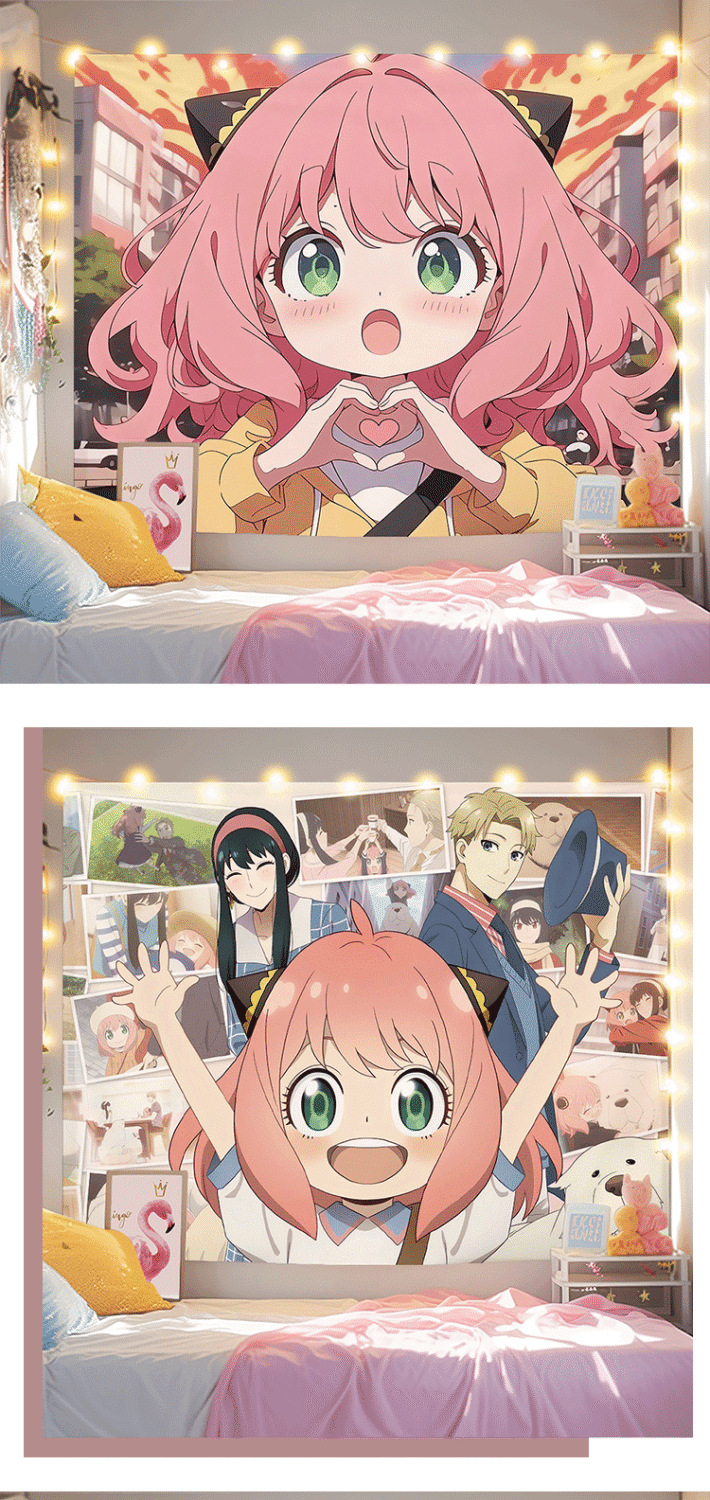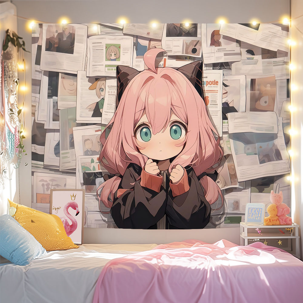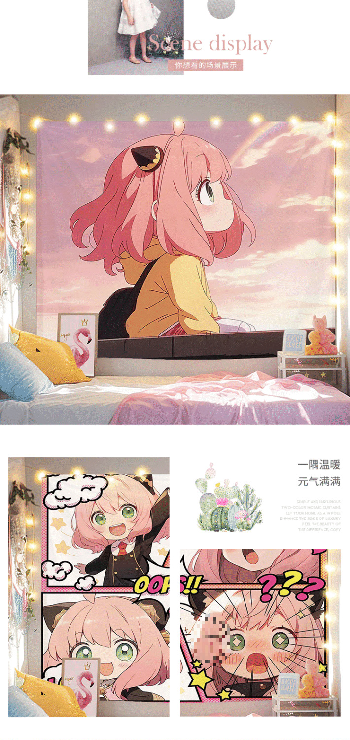 아니아 스파이 하우스 배경 매달려 헝겊 귀여운 만화 소녀의 방 기숙사 장식 침실 벽 천