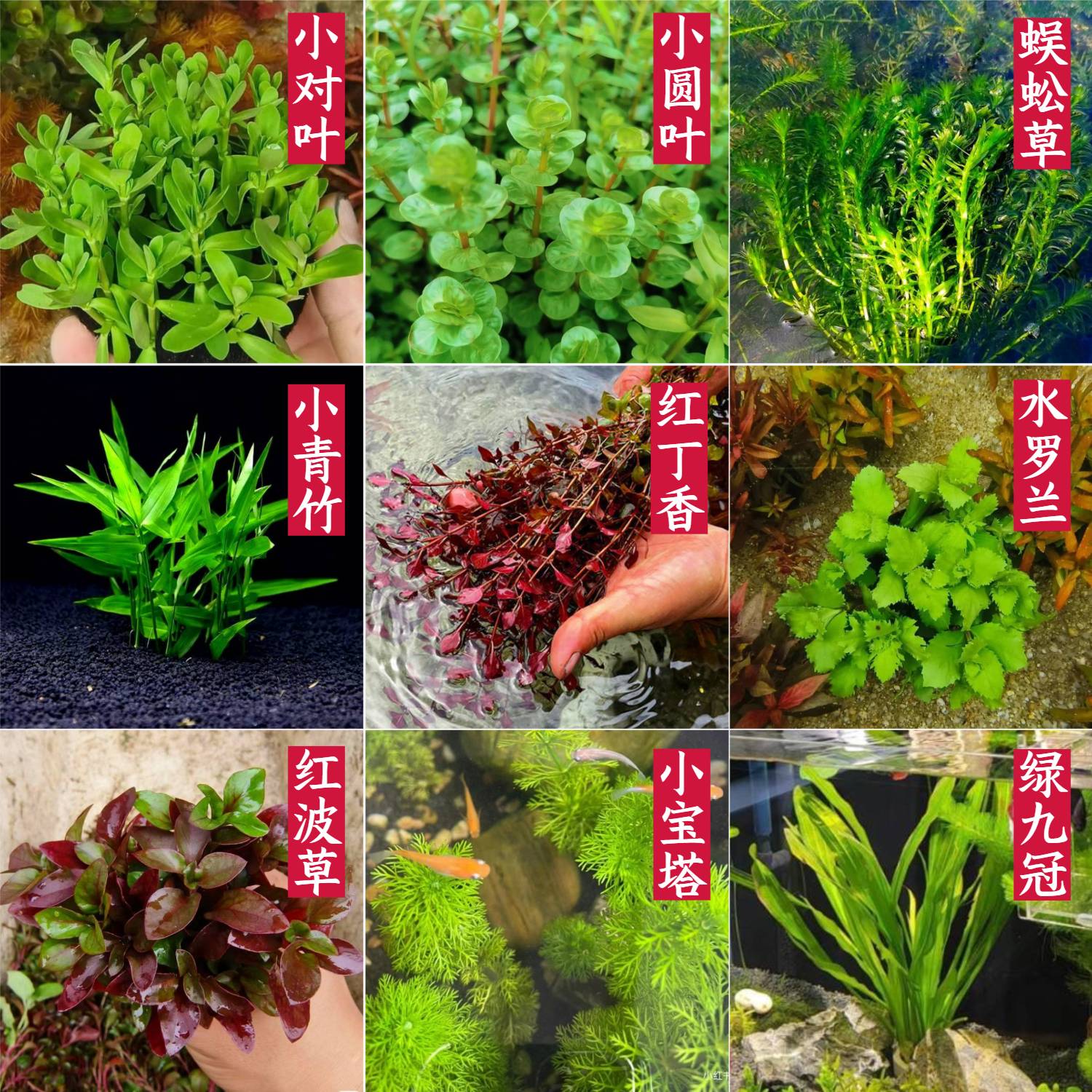 고대 방법 물고기 문화 재료 정화 수질 진흙없는 물 식물 조경 패키지 녹색 9 왕관 녹색 국화 지네 잔디 히비스커스 덕초