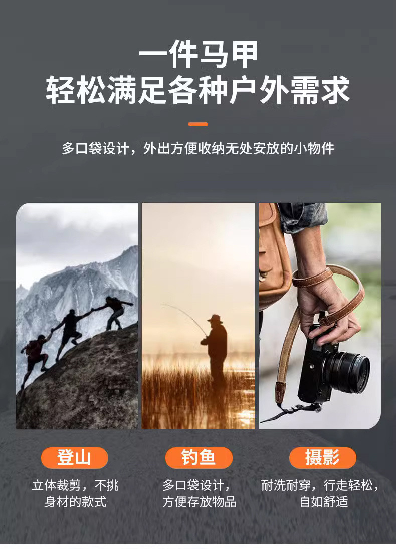 국경 간 가을 조끼 남성 얇은 느슨한 조끼 클립 야외 등산 스포츠 레저 조끼 재킷 탑