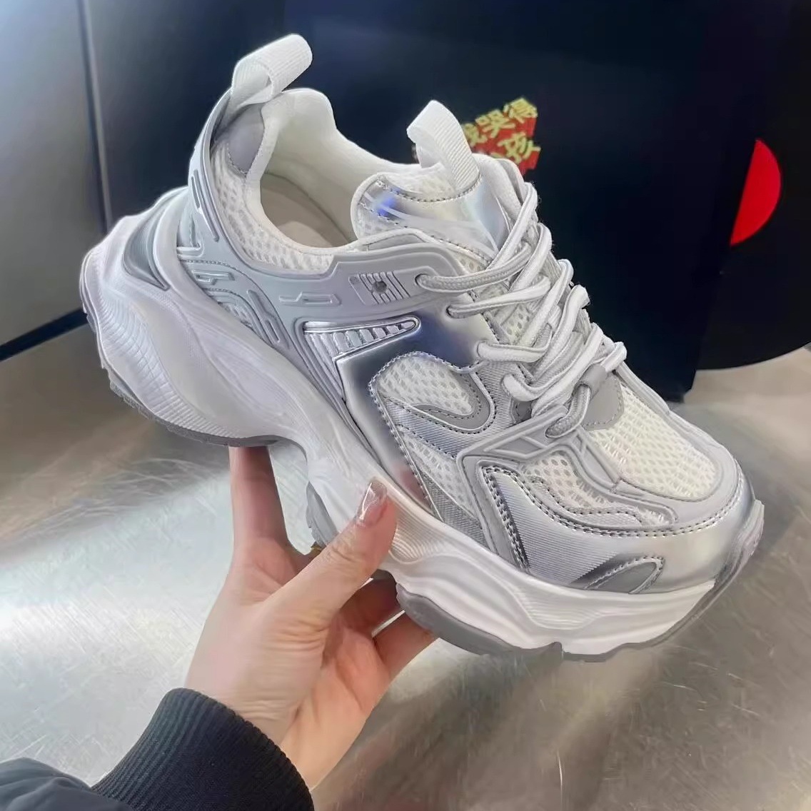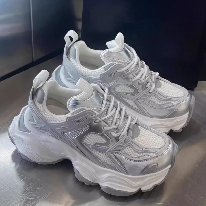 여성을 위한 인기 있는 두꺼운 밑창 높이 증가 아빠 신발 트렌드 2025 봄, 가을 새로운 메쉬 통기성 캐주얼 스포츠 신발스토어 가기