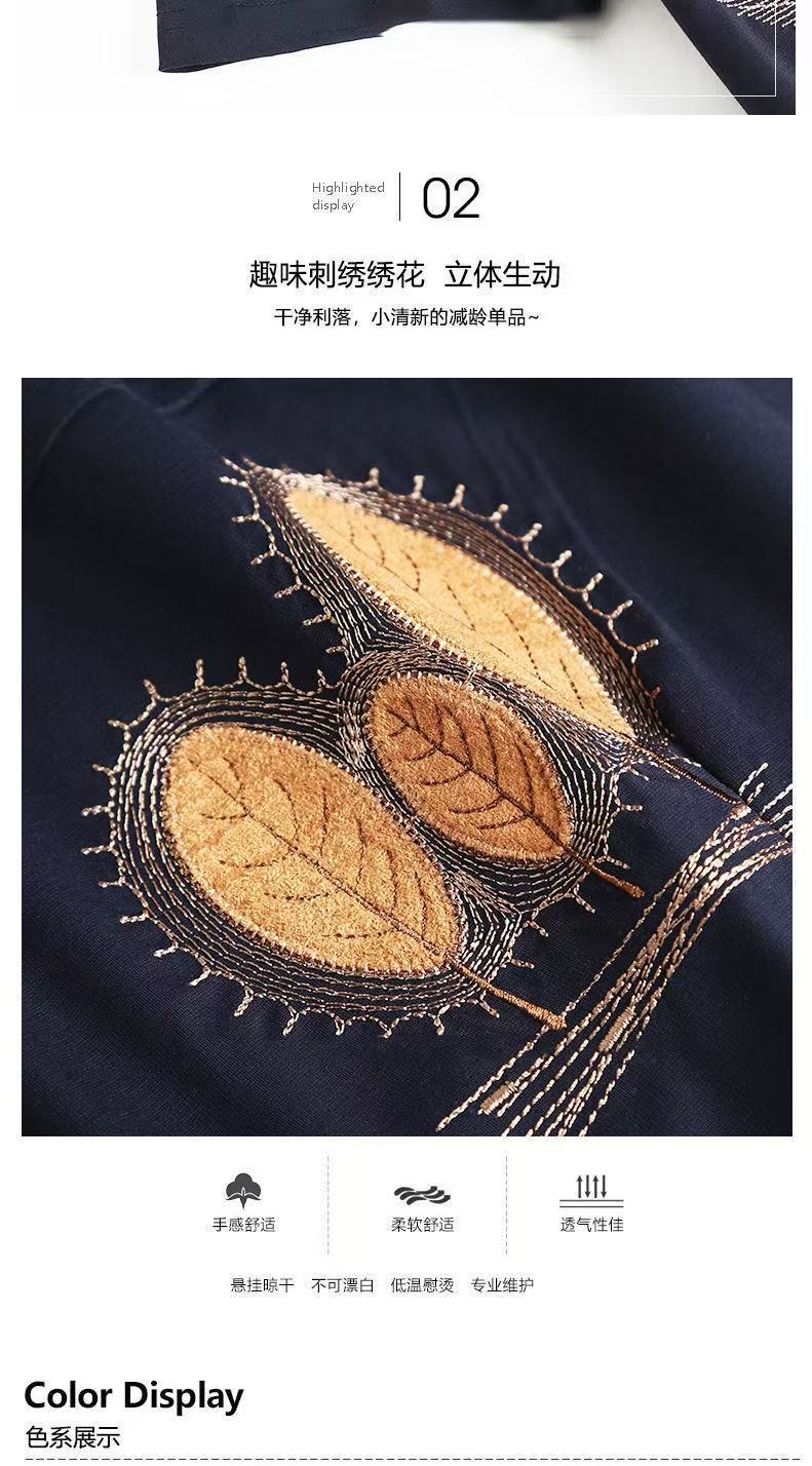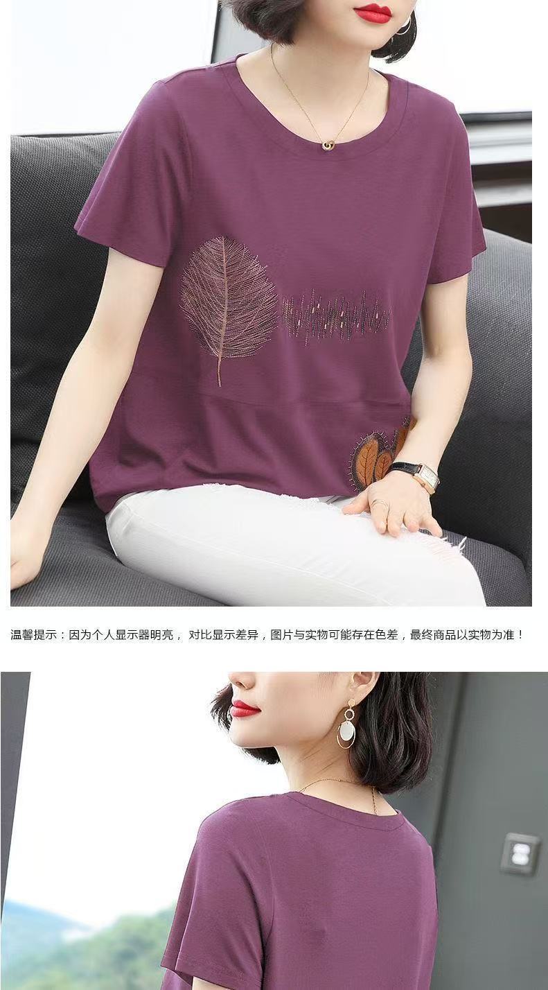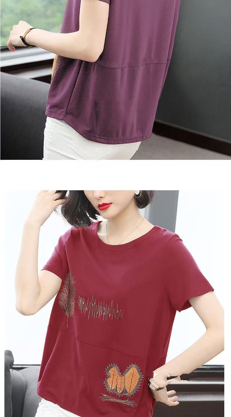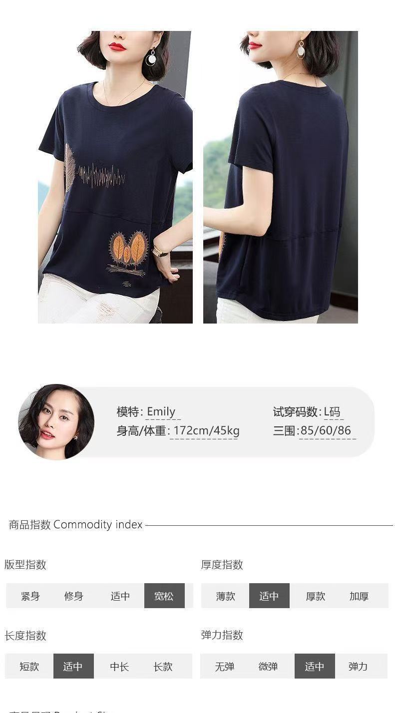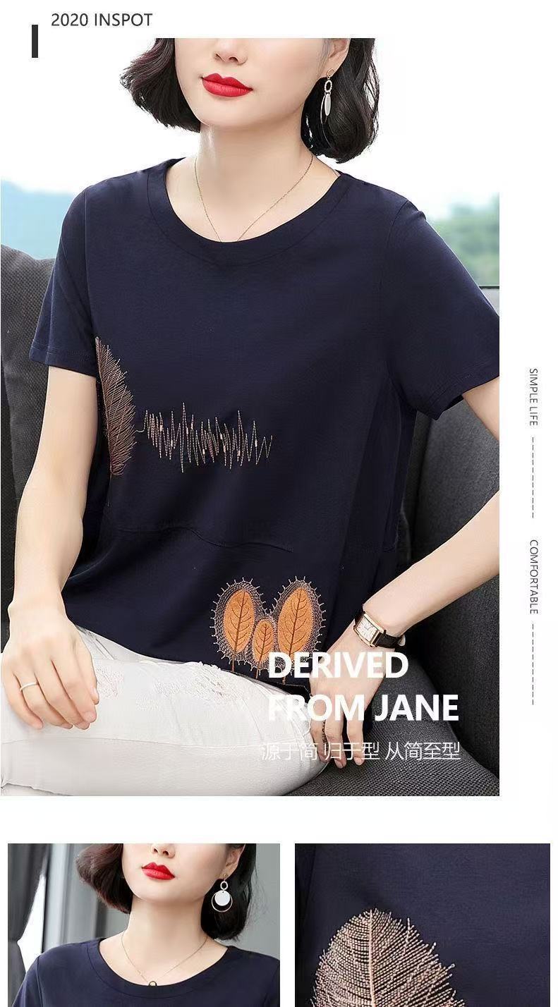 중년 어머니의 자수 반팔 티셔츠 여자 플러스 사이즈 2025 면 여름 새로운 유행 한국 느슨한 여성 탑스토어 가기