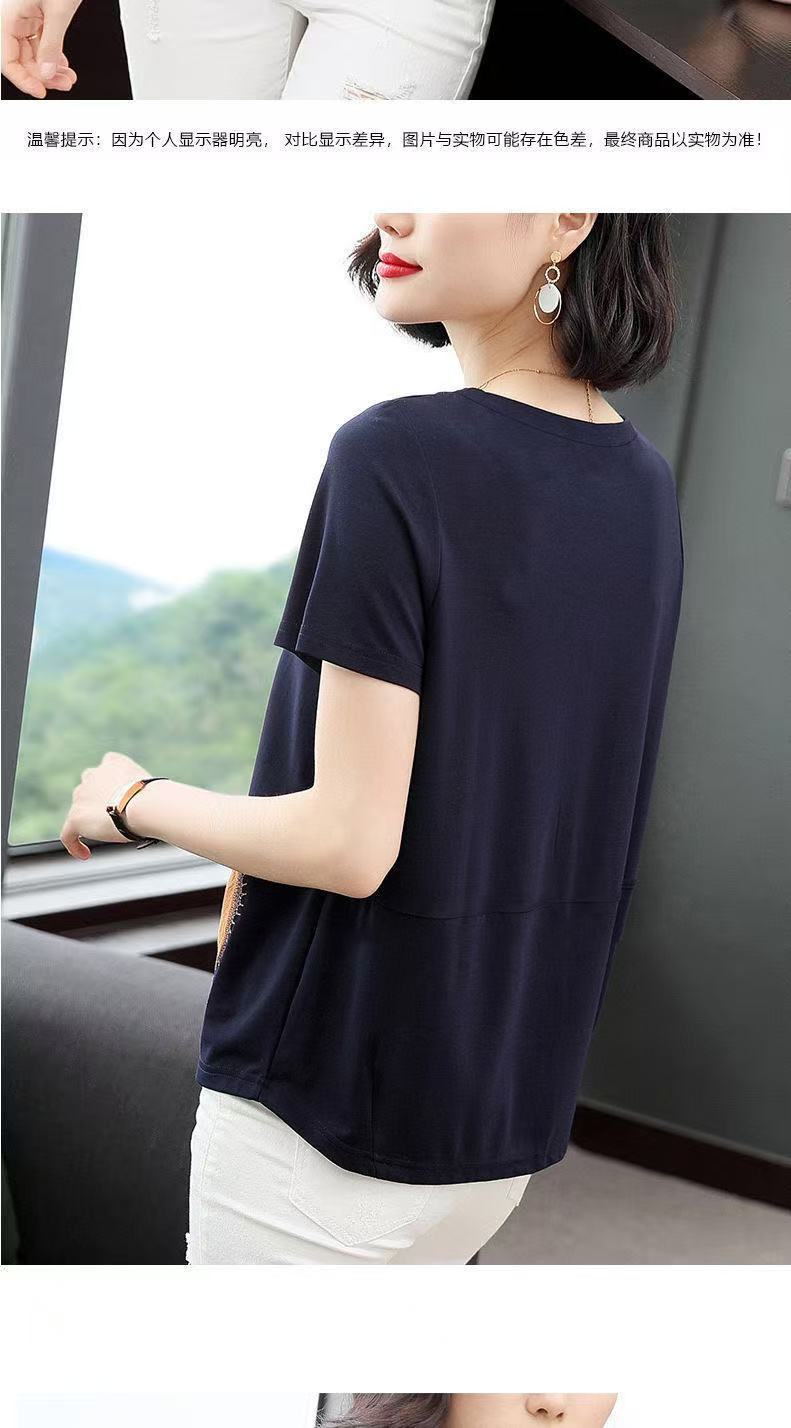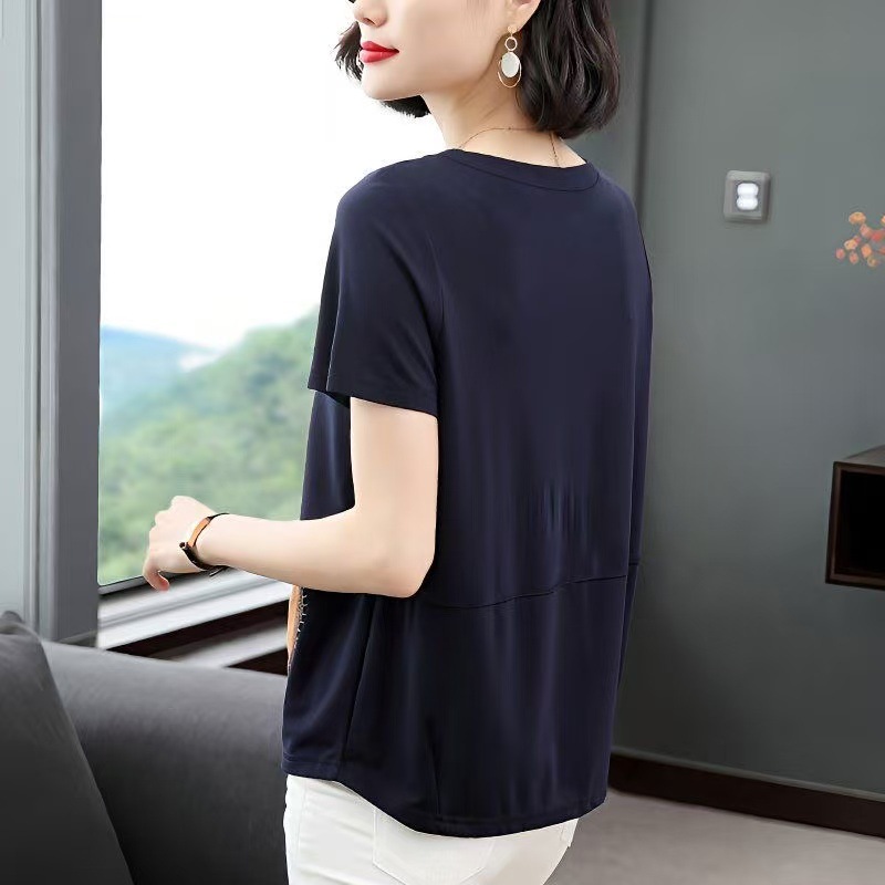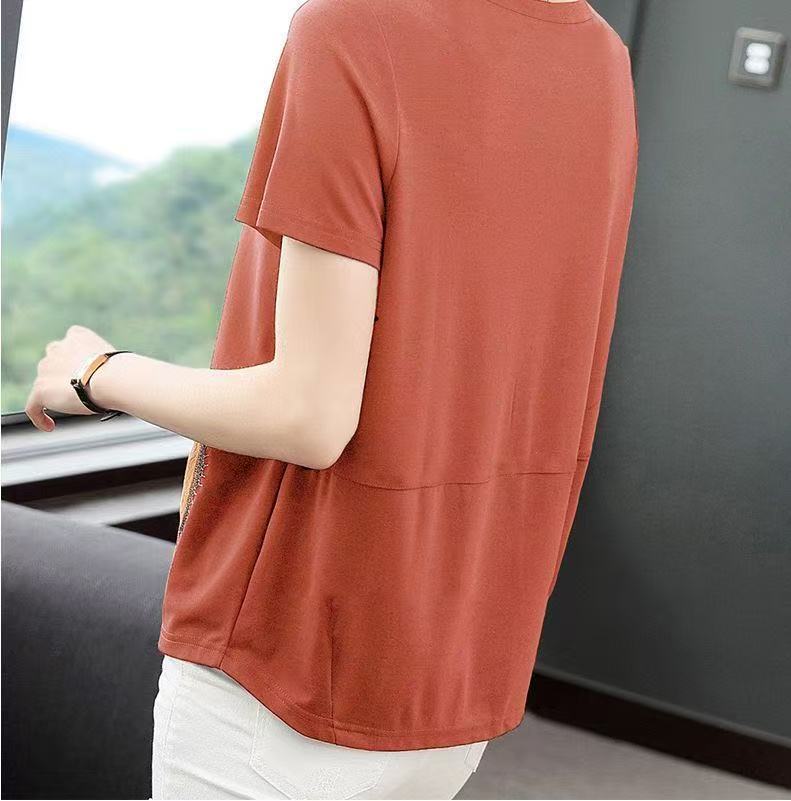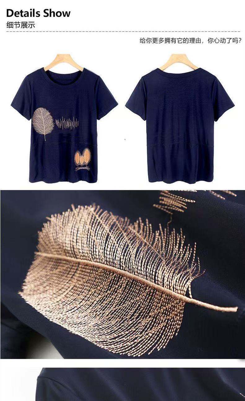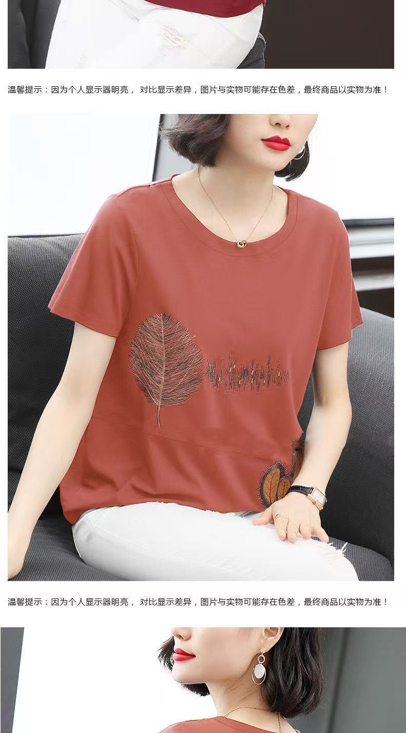 중년 어머니의 자수 반팔 티셔츠 여자 플러스 사이즈 2025 면 여름 새로운 유행 한국 느슨한 여성 탑스토어 가기