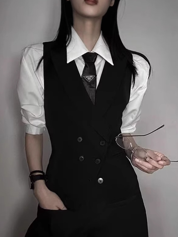 남성과 여성의 캐주얼 세트 바지선 칼라 비즈니스 조끼 영국 스타일 하이 레벨 건 바지선 칼라 슬림-핏 조끼 조끼 재킷