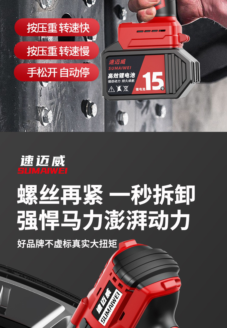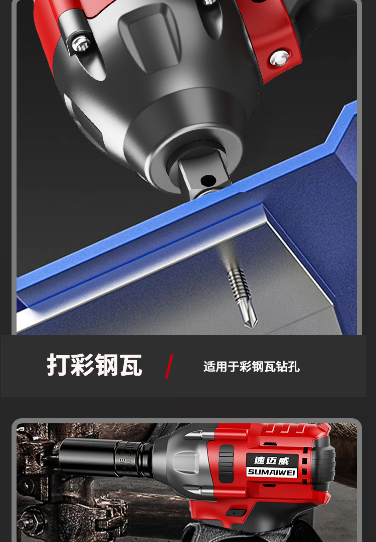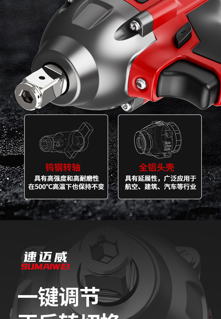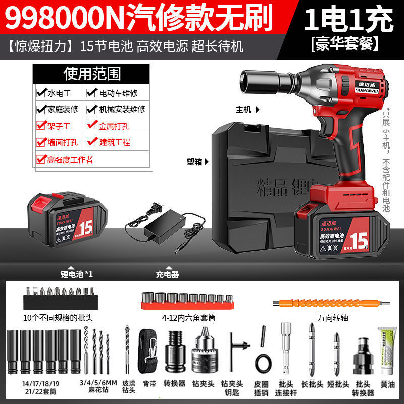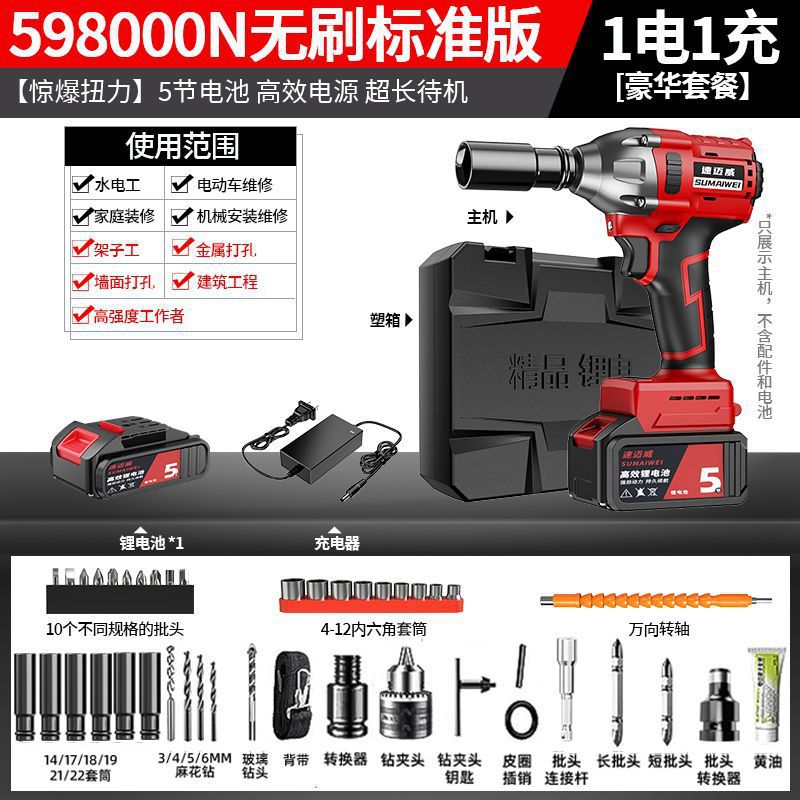 브러시리스 전기 렌치 리튬 배터리 충격 렌치 대형 토크 충전 렌치 비계 목공 자동 수리 슬리브 에어건