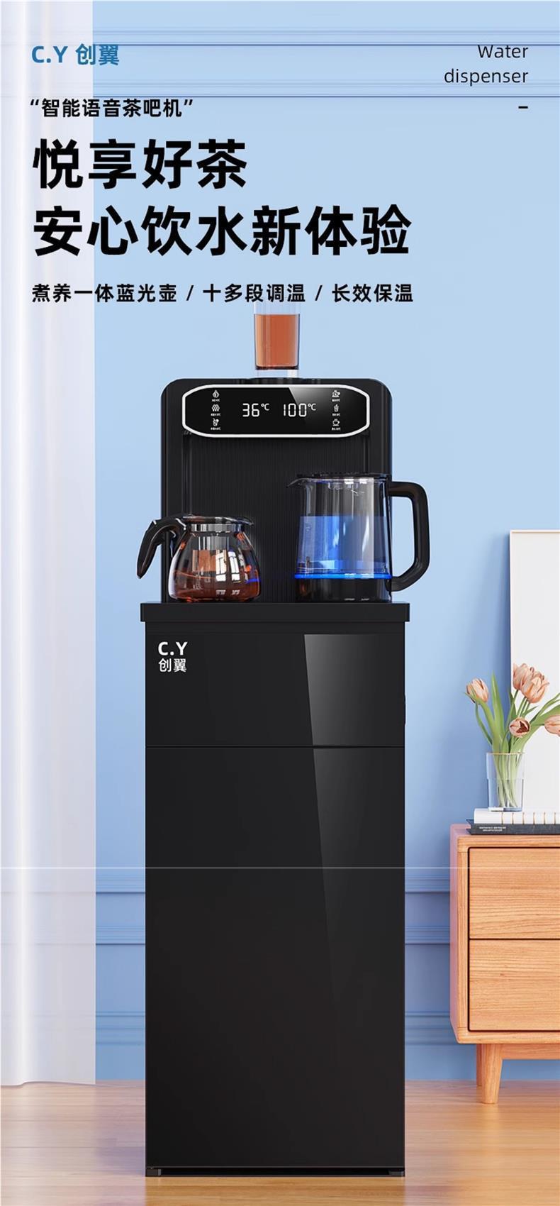 티 바 기계 지능형 음성 가정용 워터 디스펜서 수직 하단 버킷 완전 자동 냉온수 다기능 2024 새 모델
