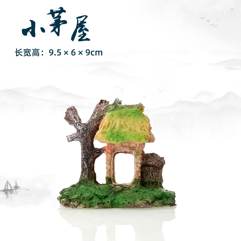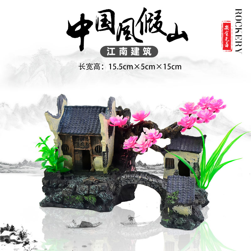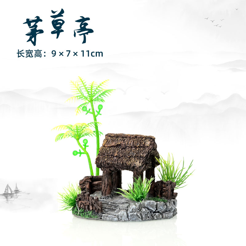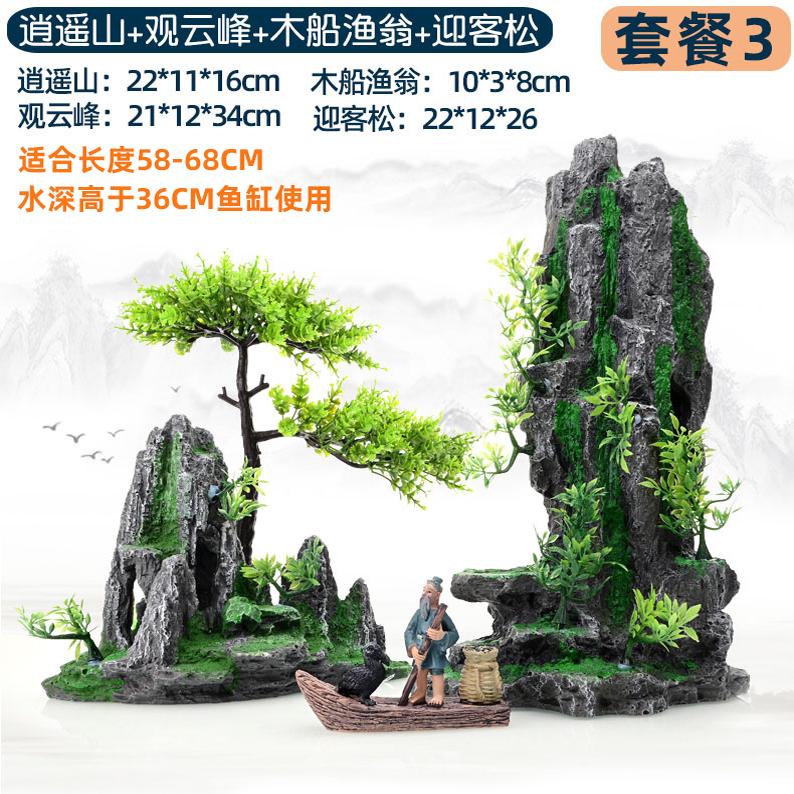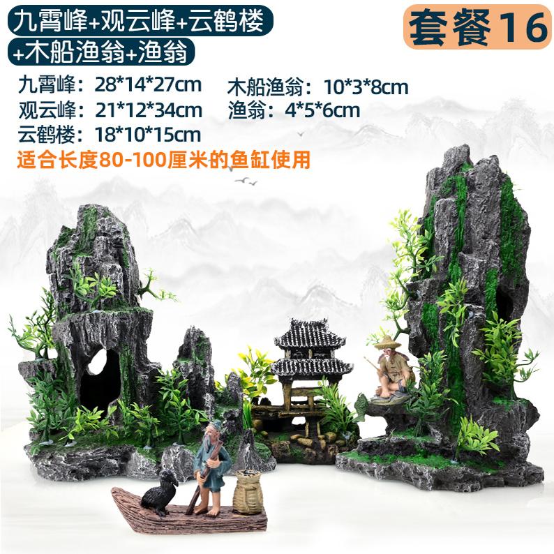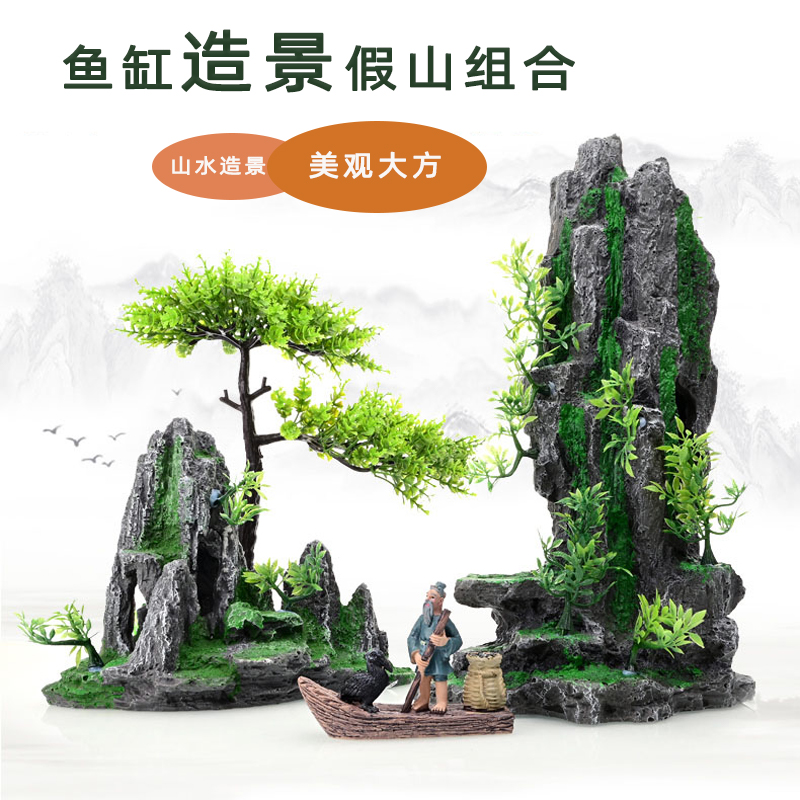 물고기 탱크 조경 바위 장식 물 잔디 나무 작은 다리 어부 장식품 수족관 풍경 내부 탈출 구멍의 전체 세트
