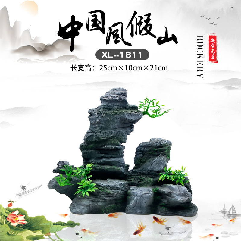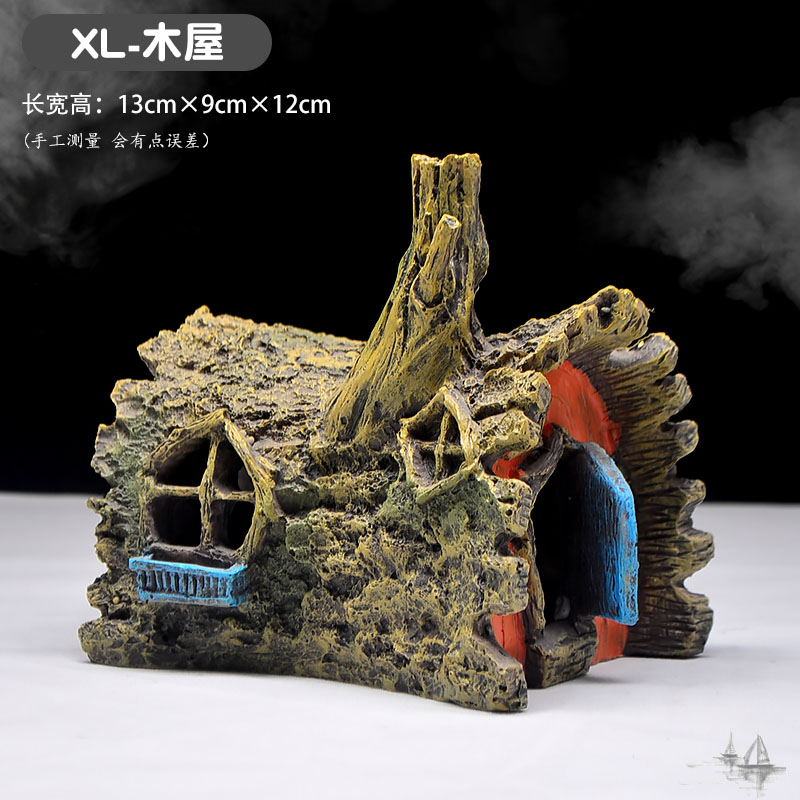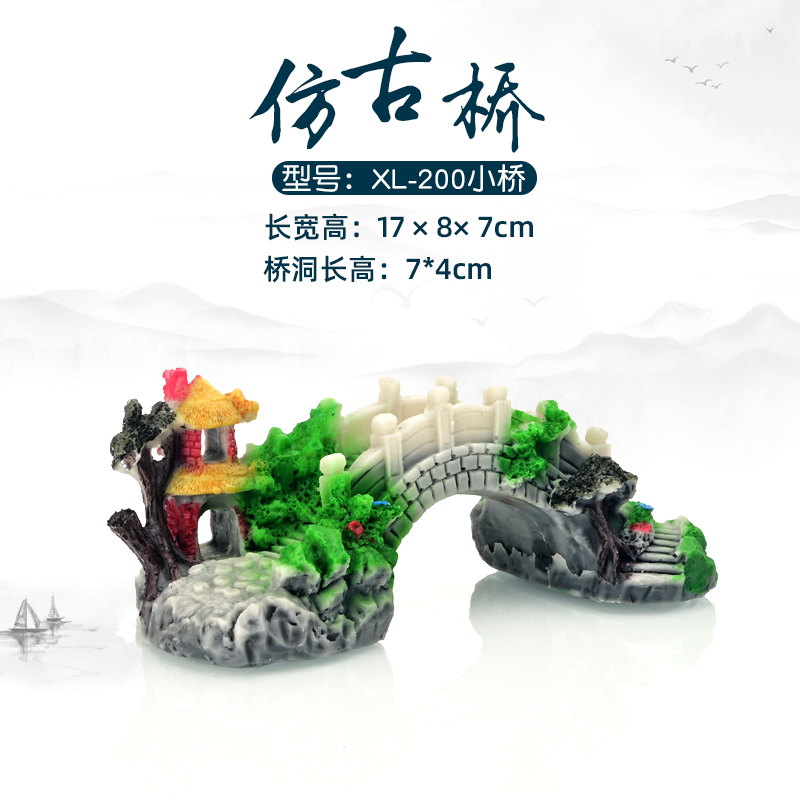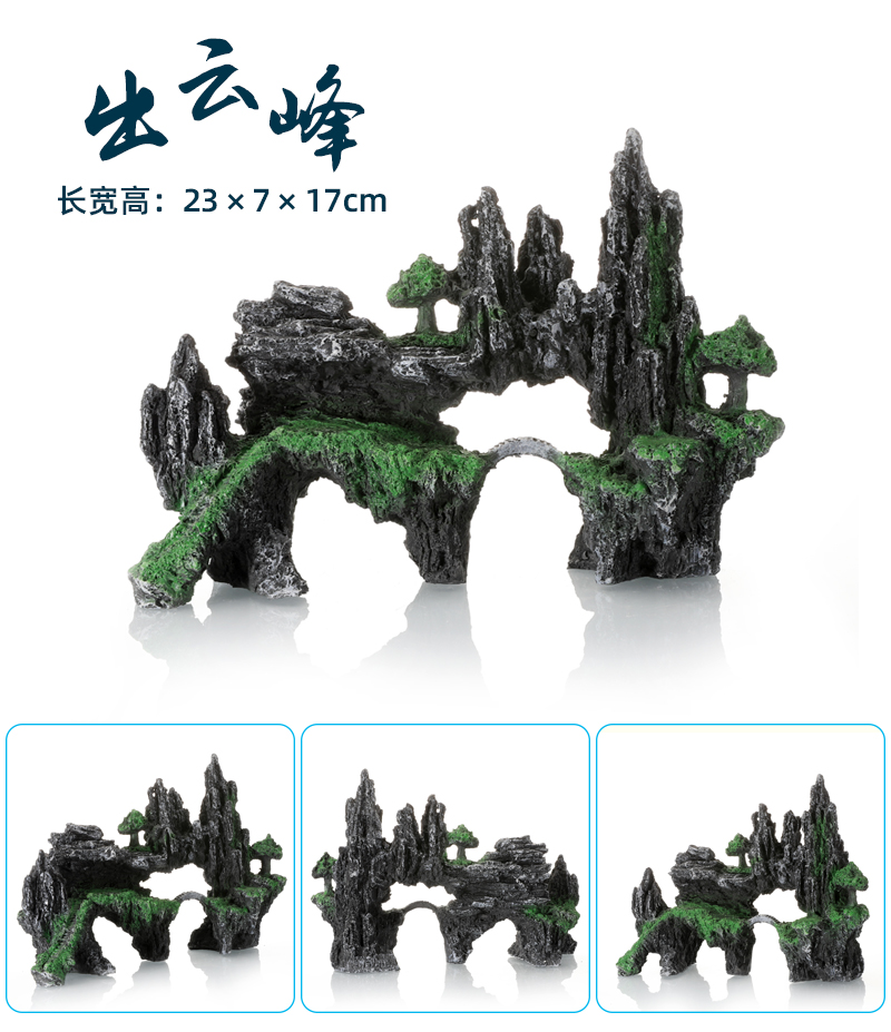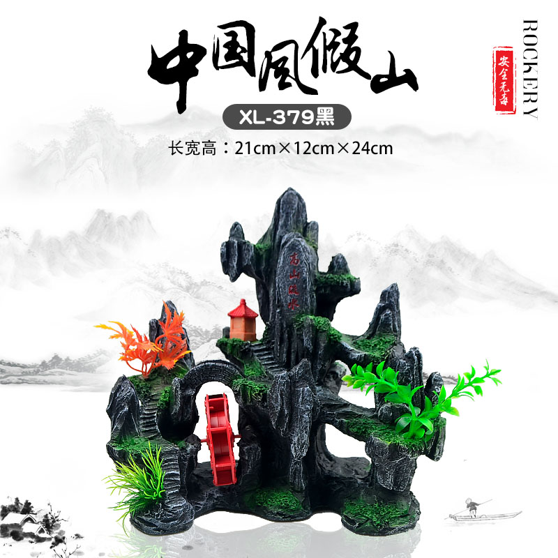 물고기 탱크 조경 바위 장식 물 잔디 나무 작은 다리 어부 장식품 수족관 풍경 내부 탈출 구멍의 전체 세트