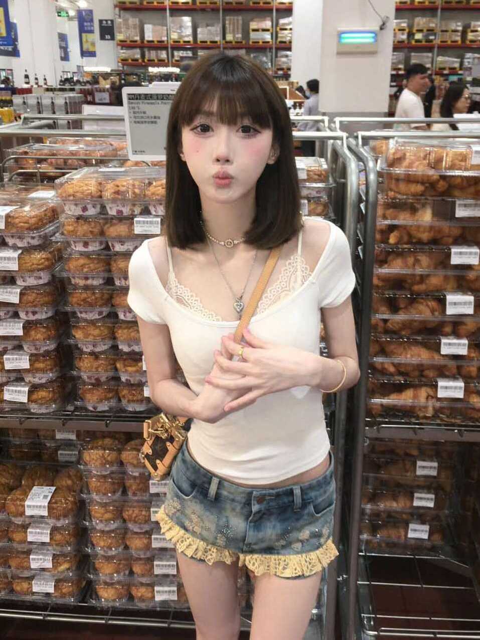 국경 간 AliExpress American Retro 2 Millennium Hot Girl 틈새 레이스 스플 라이스 로우 웨이스트 데님 미니 스커트 여성 여름스토어 가기