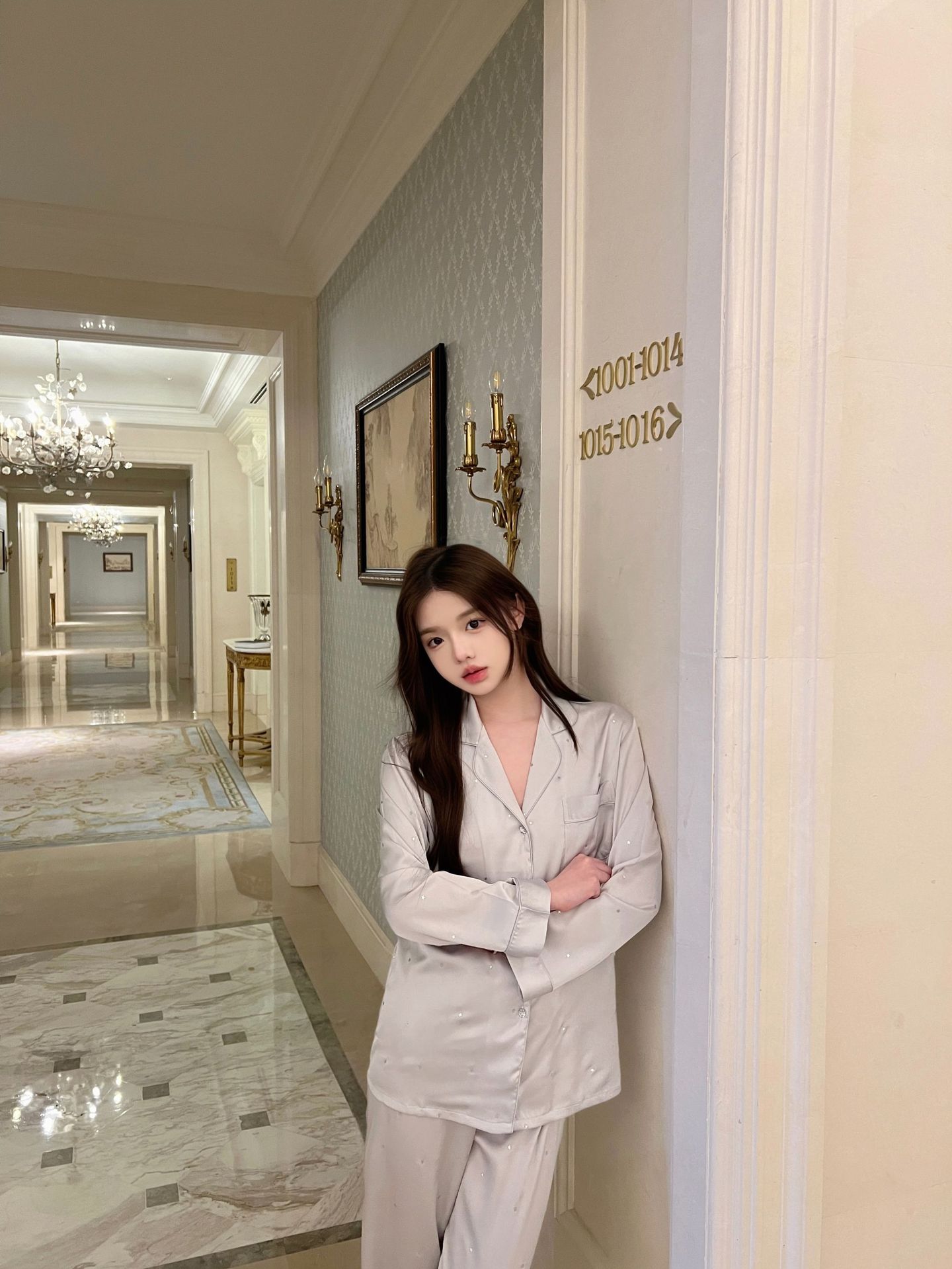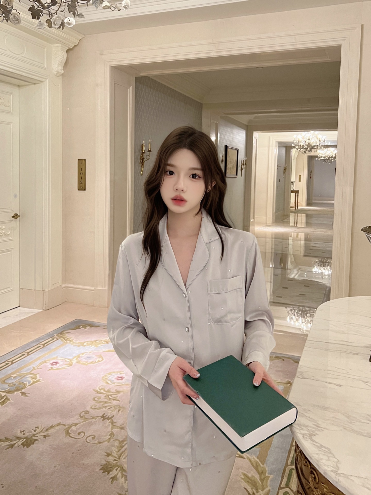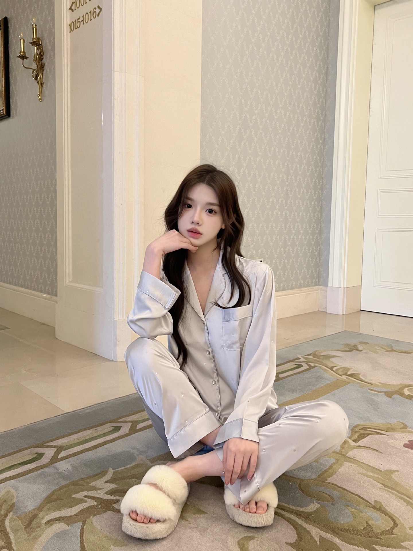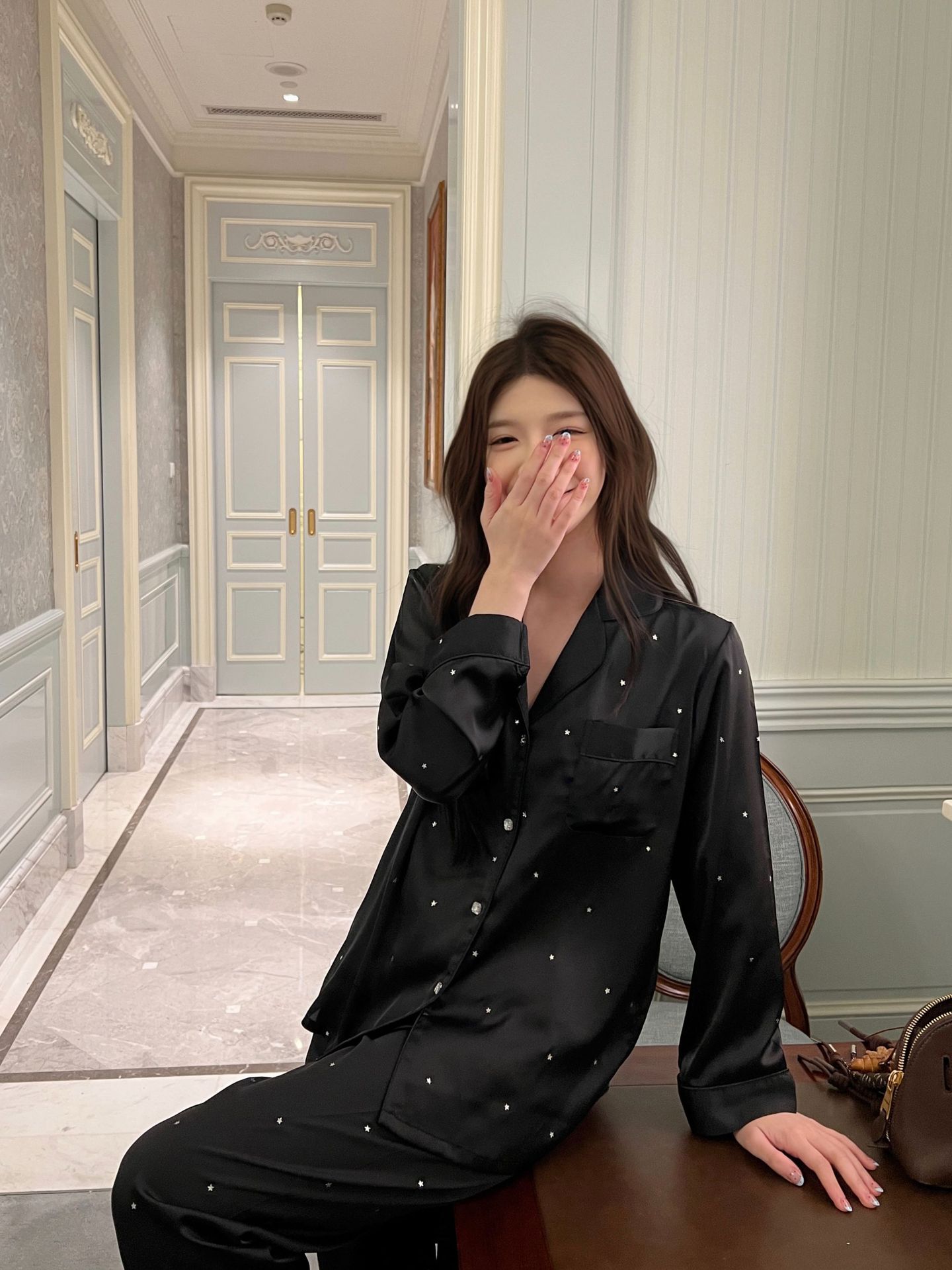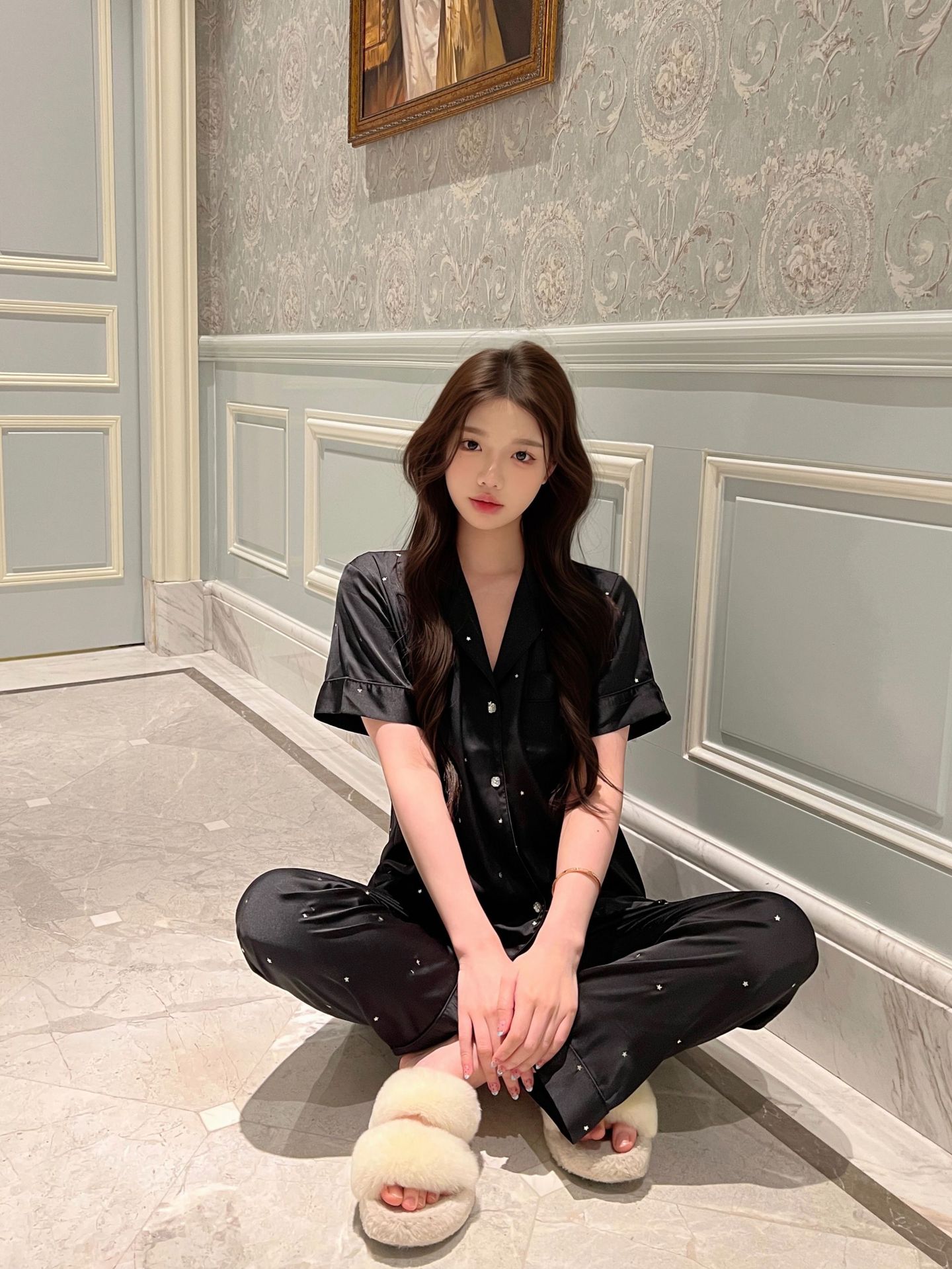 2025 새로운 아이스 실크 파자마 여성용 리틀 스타 옷깃 얇은 솔리드 컬러 하이 엔드 센스 홈 의류 세트 착용 가능스토어 가기