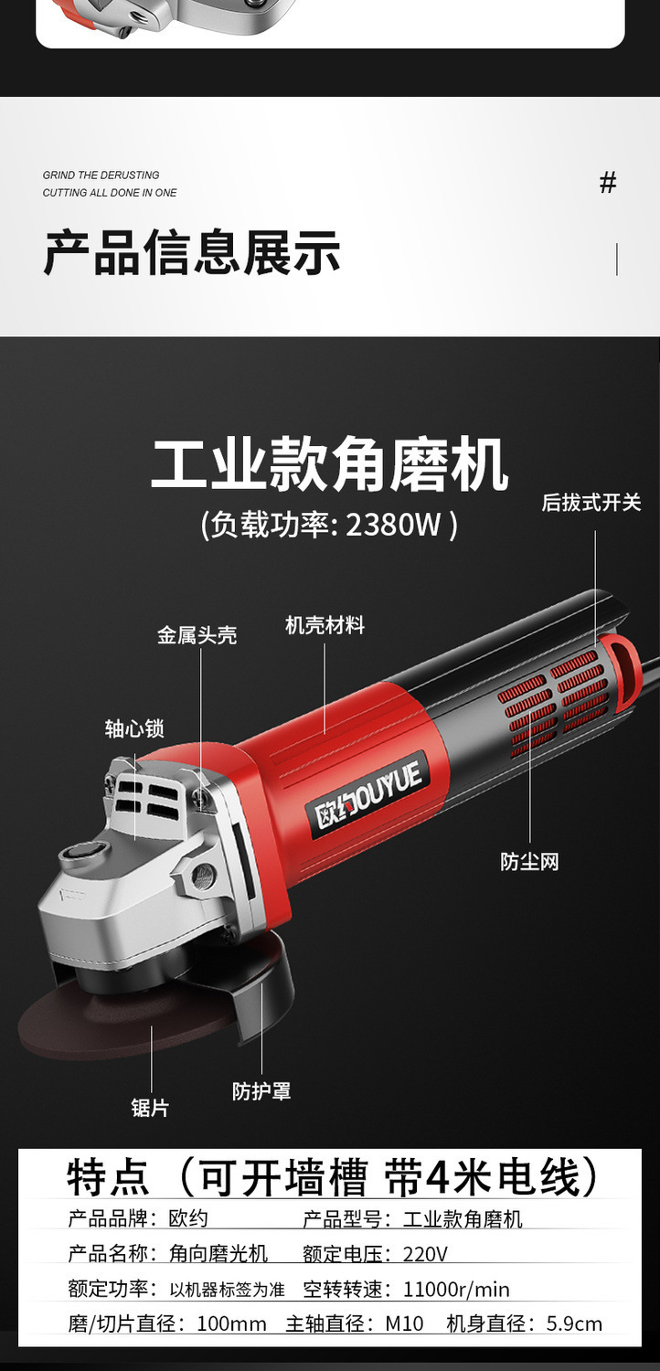 Oyo 앵글 그라인더 다기능 연삭 기계 연삭 기계 손 연삭 기계 연마 기계 절단 기계 가정용 손 연삭 휠