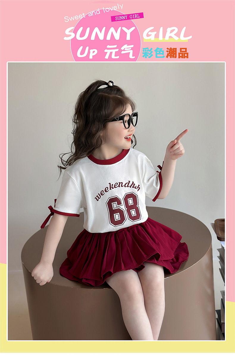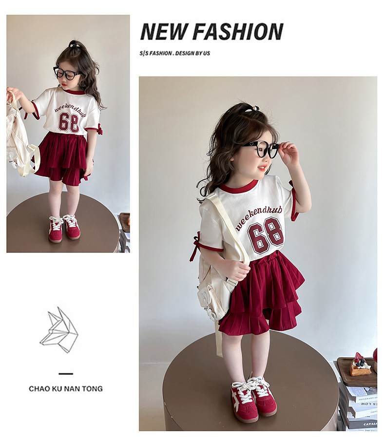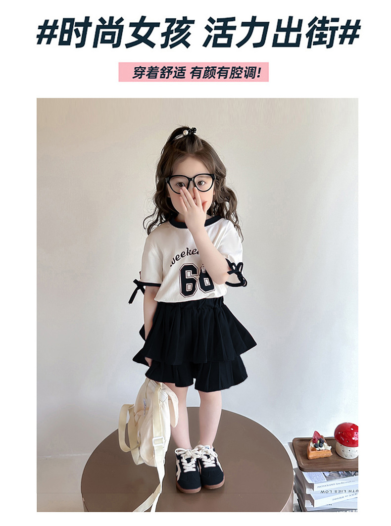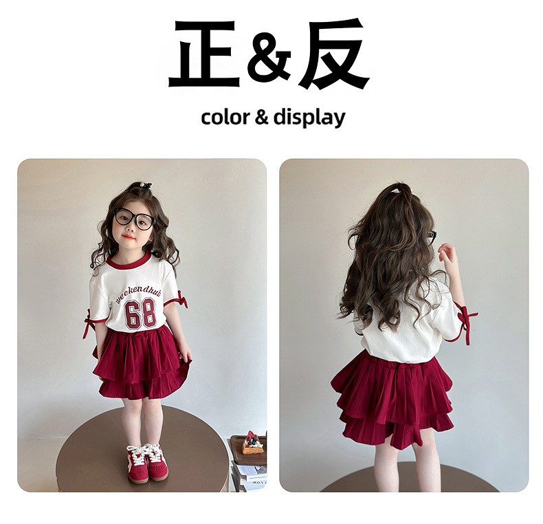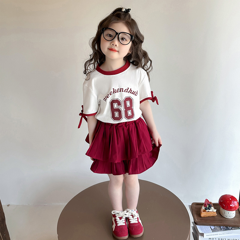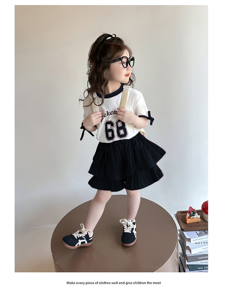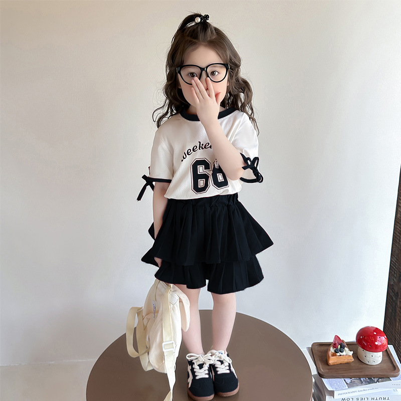 【48시간 배송】여아용 투피스 스포츠 세트 여름 아동용 세련된 만화 케이크 스커트 세트