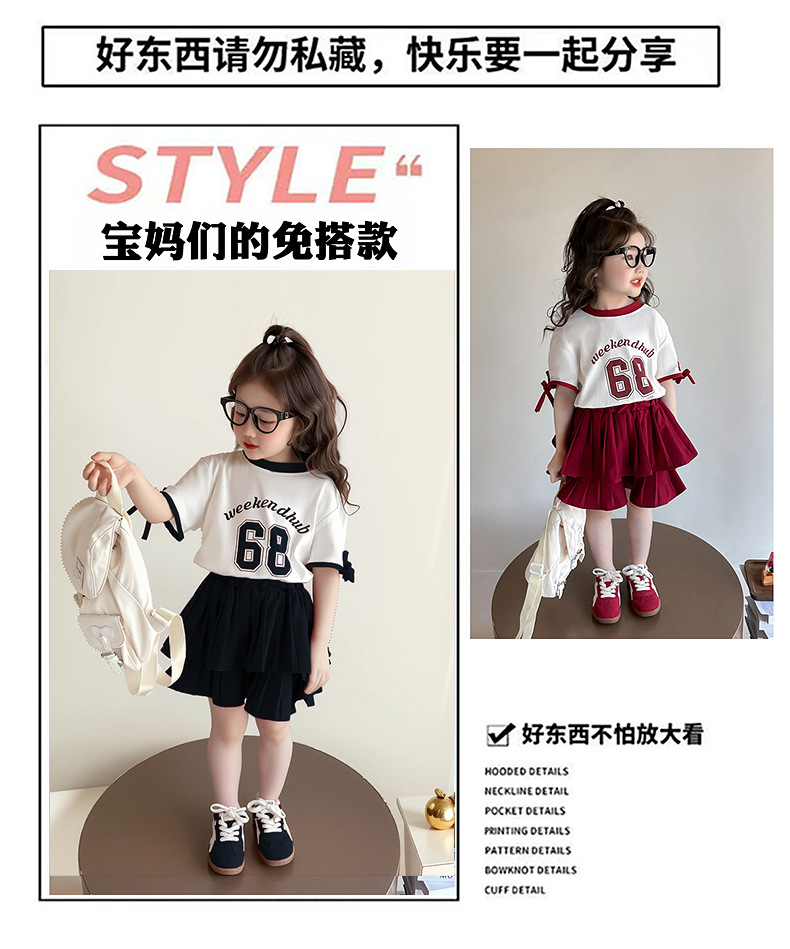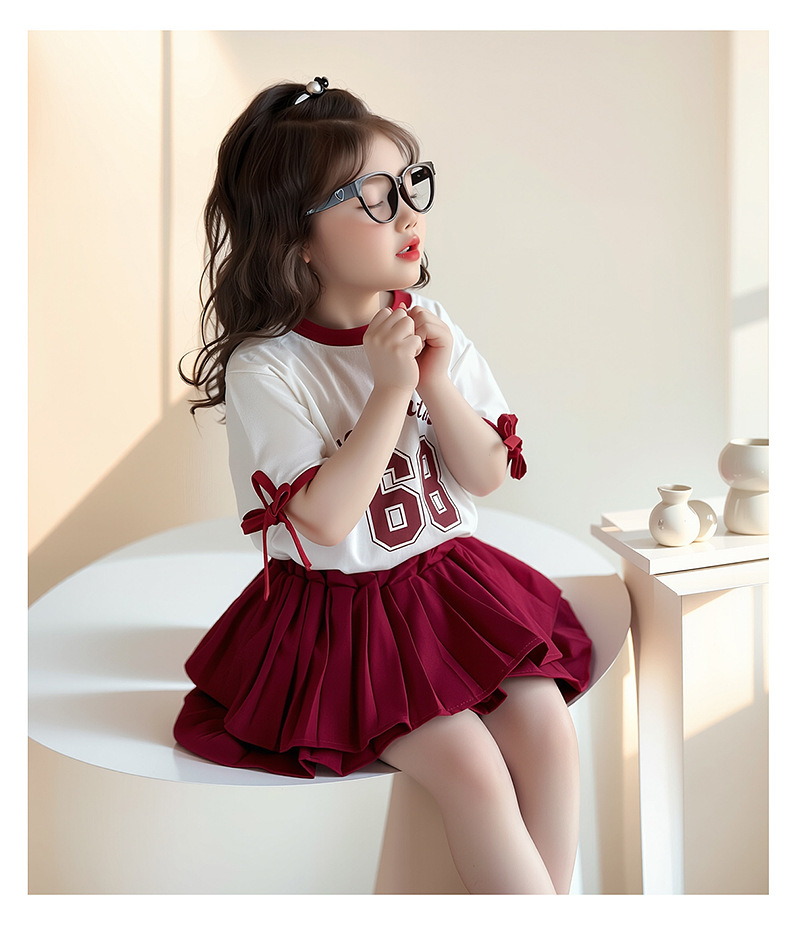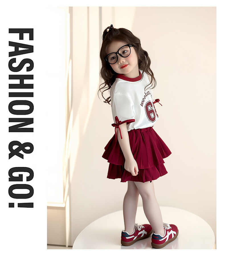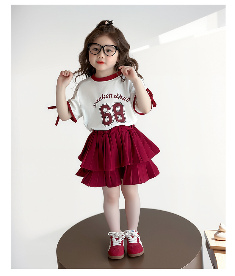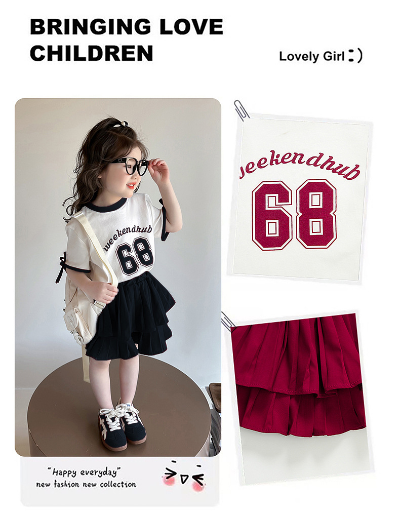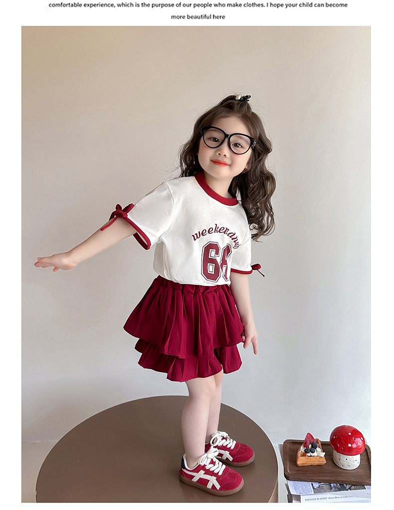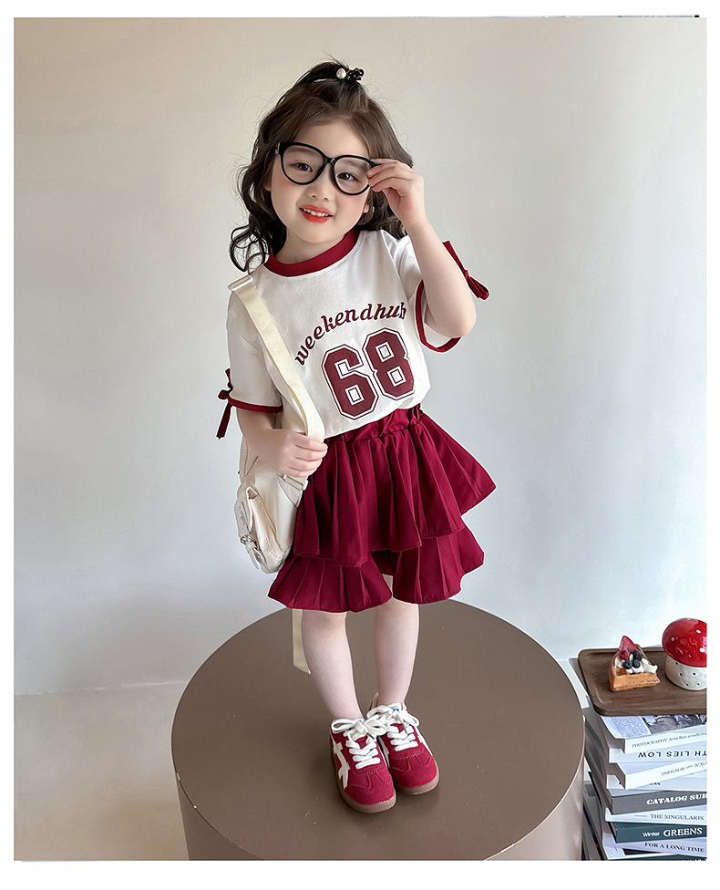 【48시간 배송】여아용 투피스 스포츠 세트 여름 아동용 세련된 만화 케이크 스커트 세트