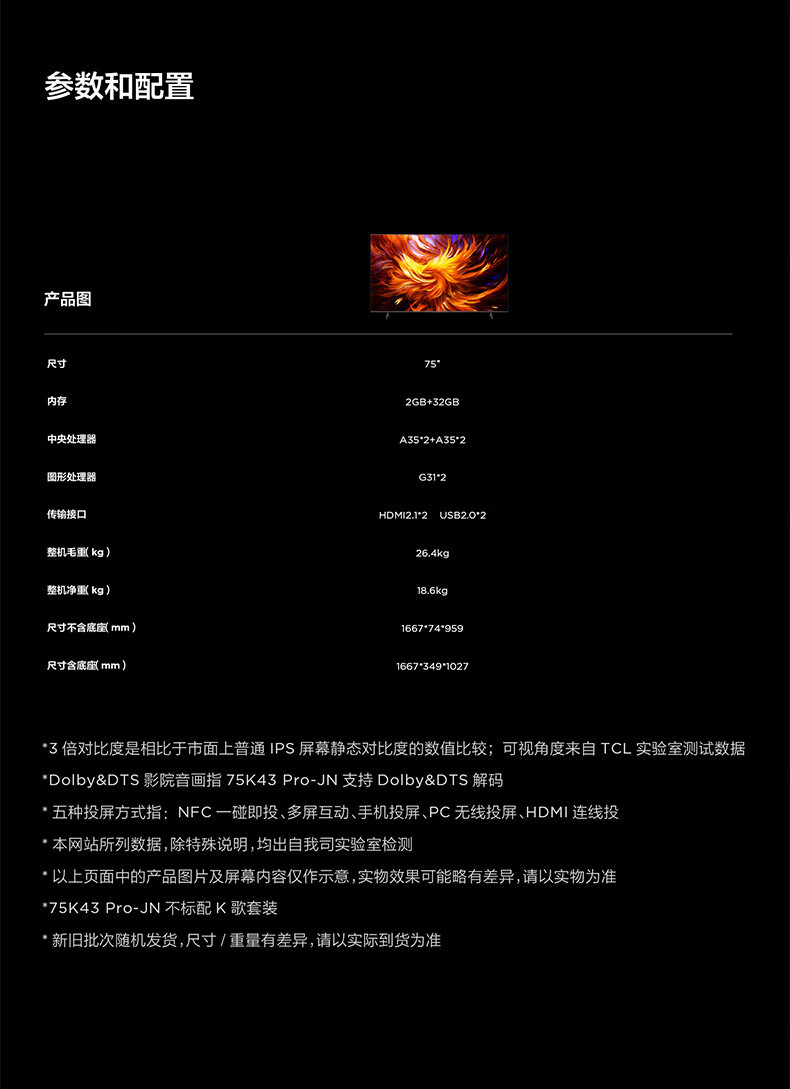 레화 TV 55/65/ 75inch 75K43 Pro-JN 65K43 Pro-J 55K43 Pro-J