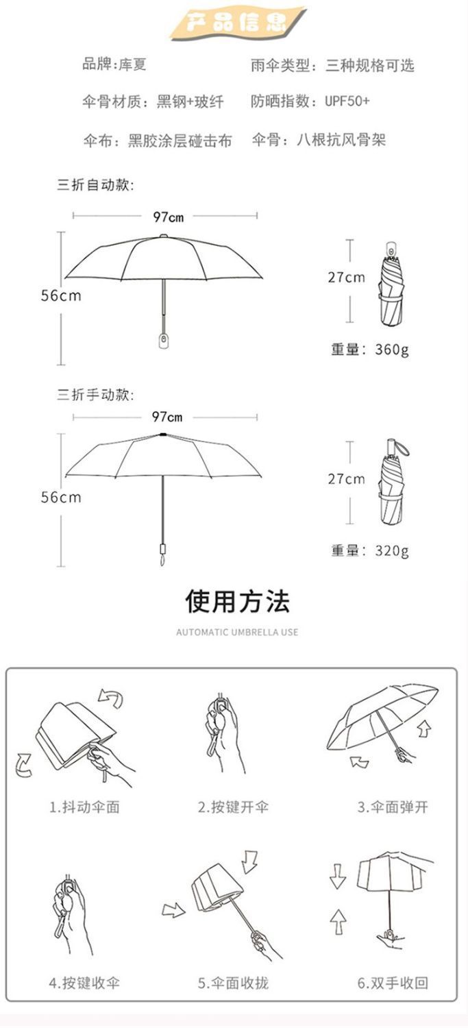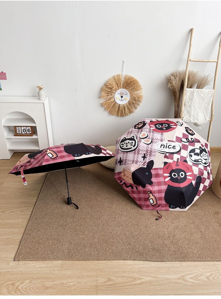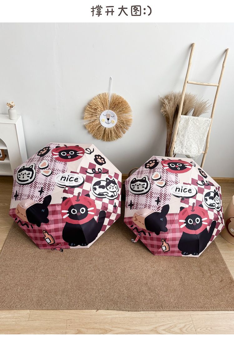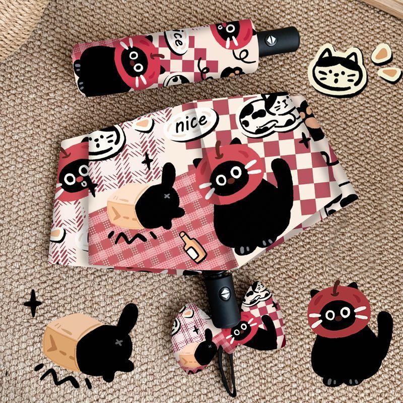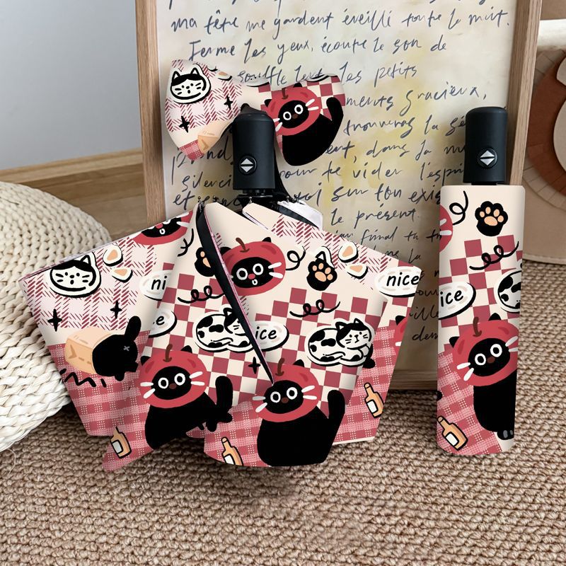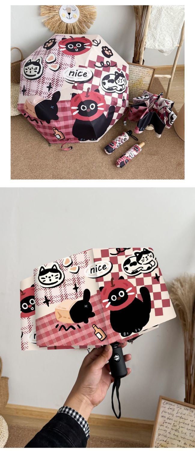 레트로 고양이 비와 화창한 우산 접히는 자동 태양 우산 선 스크린 블랙 접착제 UV 우수한 양산 우산스토어 가기