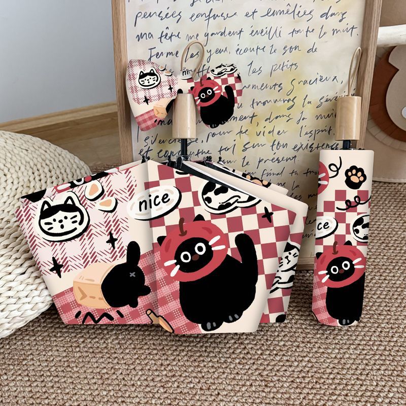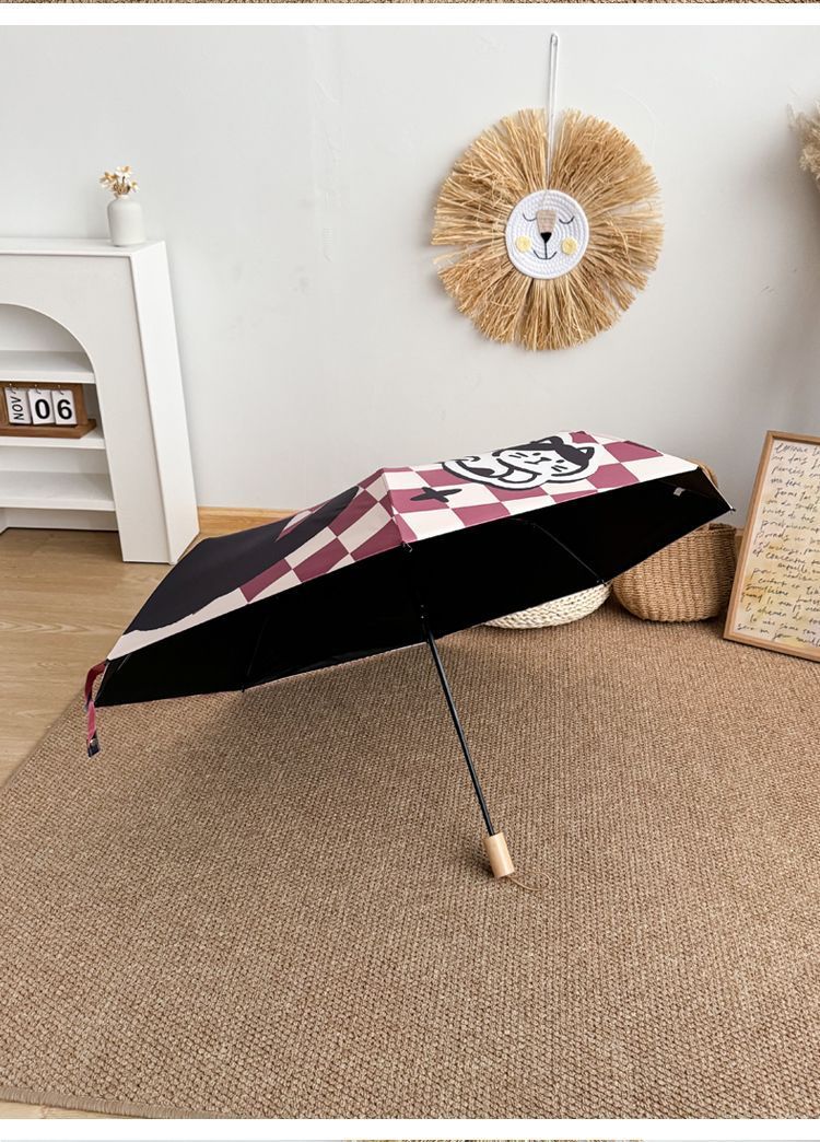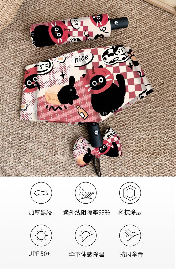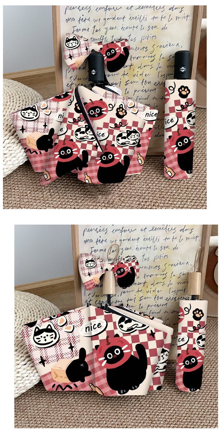 레트로 고양이 비와 화창한 우산 접히는 자동 태양 우산 선 스크린 블랙 접착제 UV 우수한 양산 우산