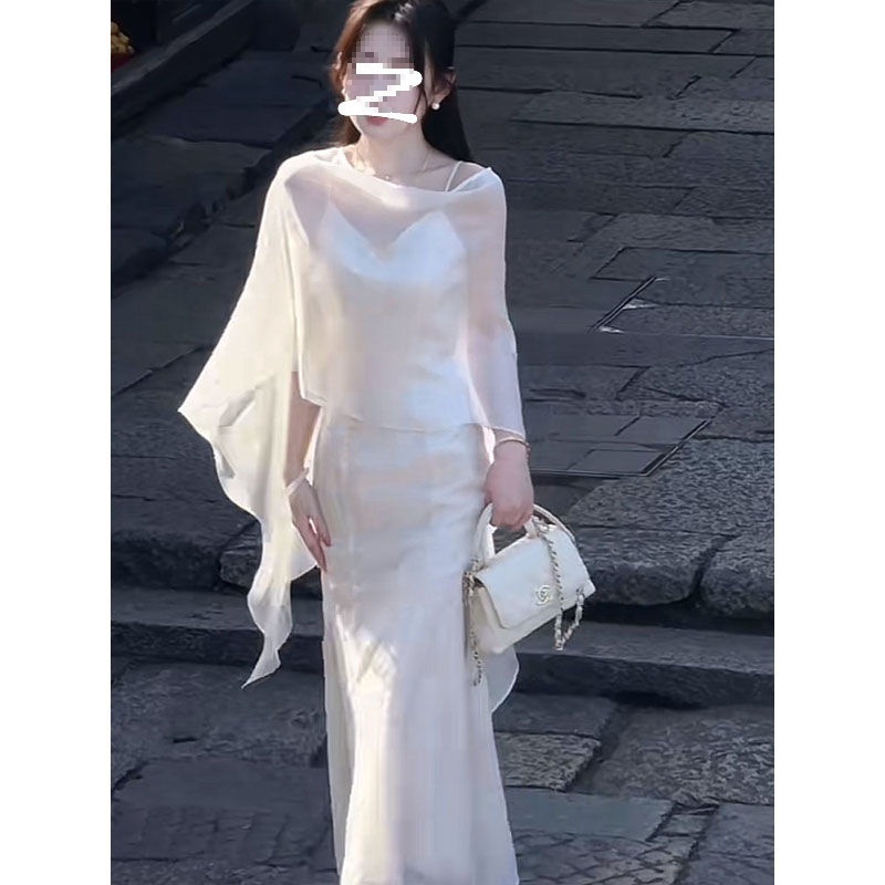 플러스 사이즈 통통한 차가운 느낌 틈새 세트 우아한 자외선 차단제 목도리 피쉬 테일 슬링 원피스 2 피스 100.00kg스토어 가기
