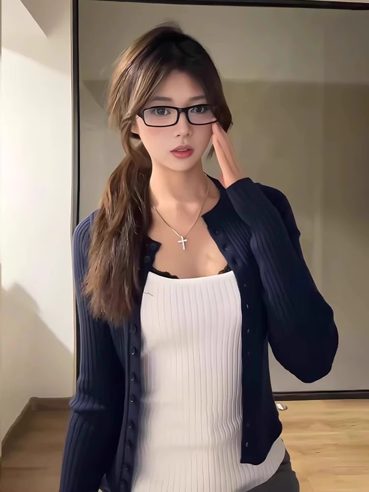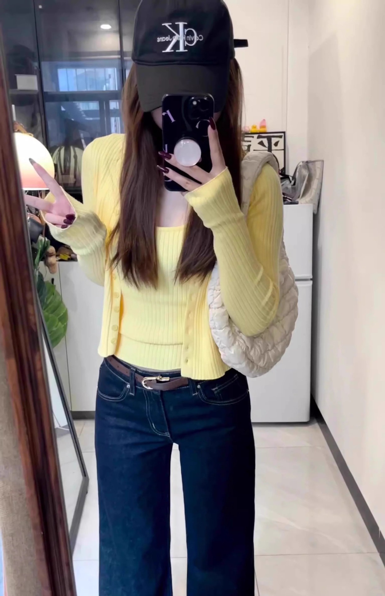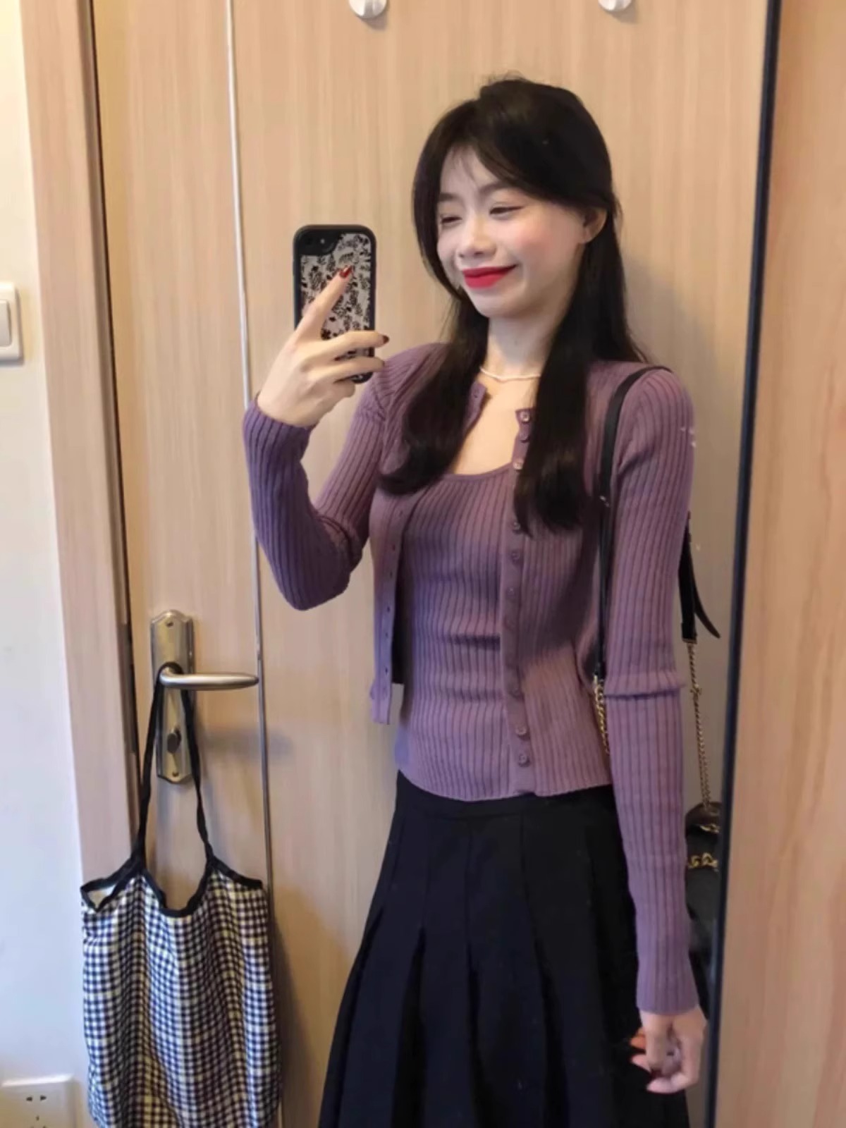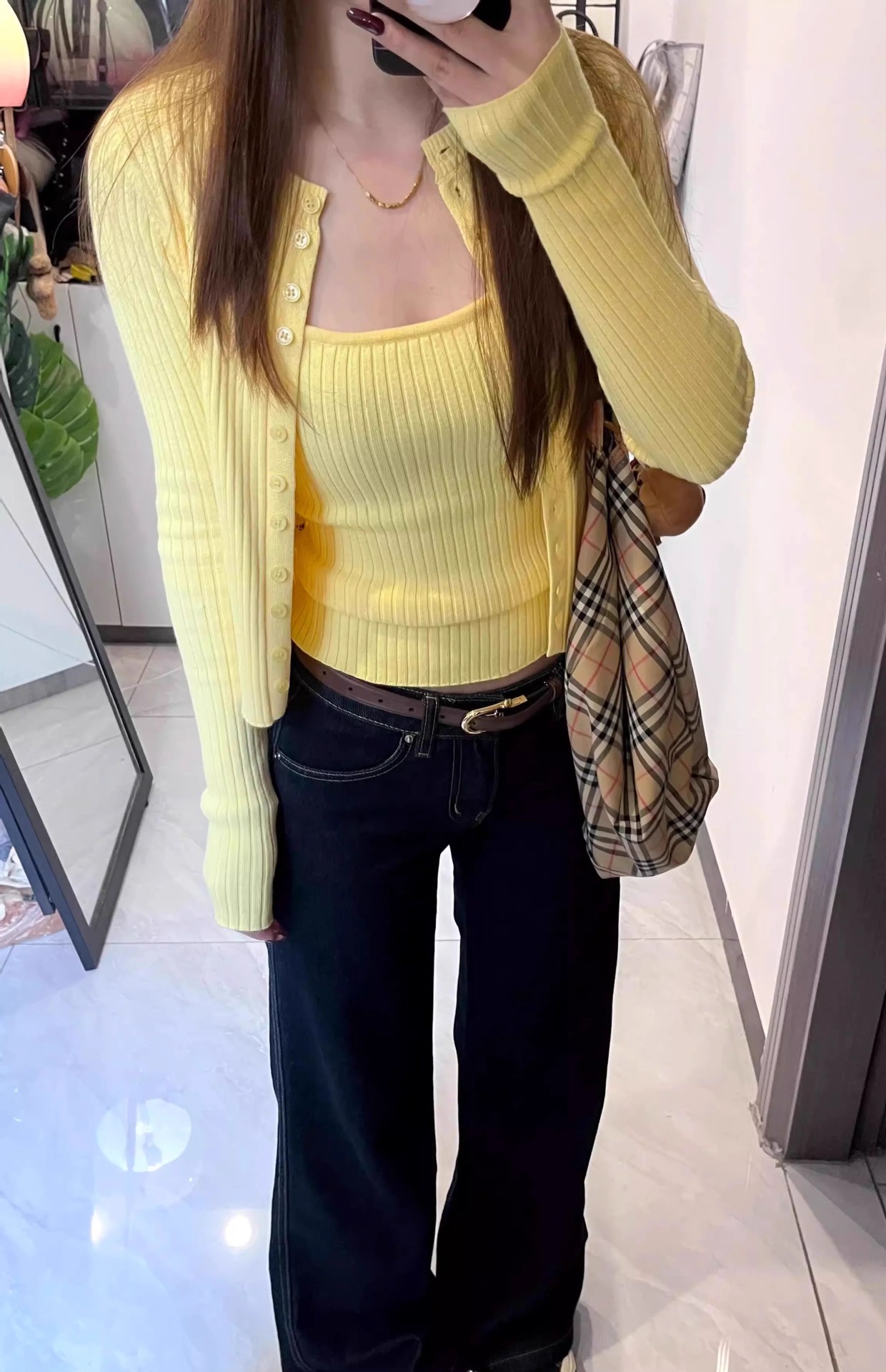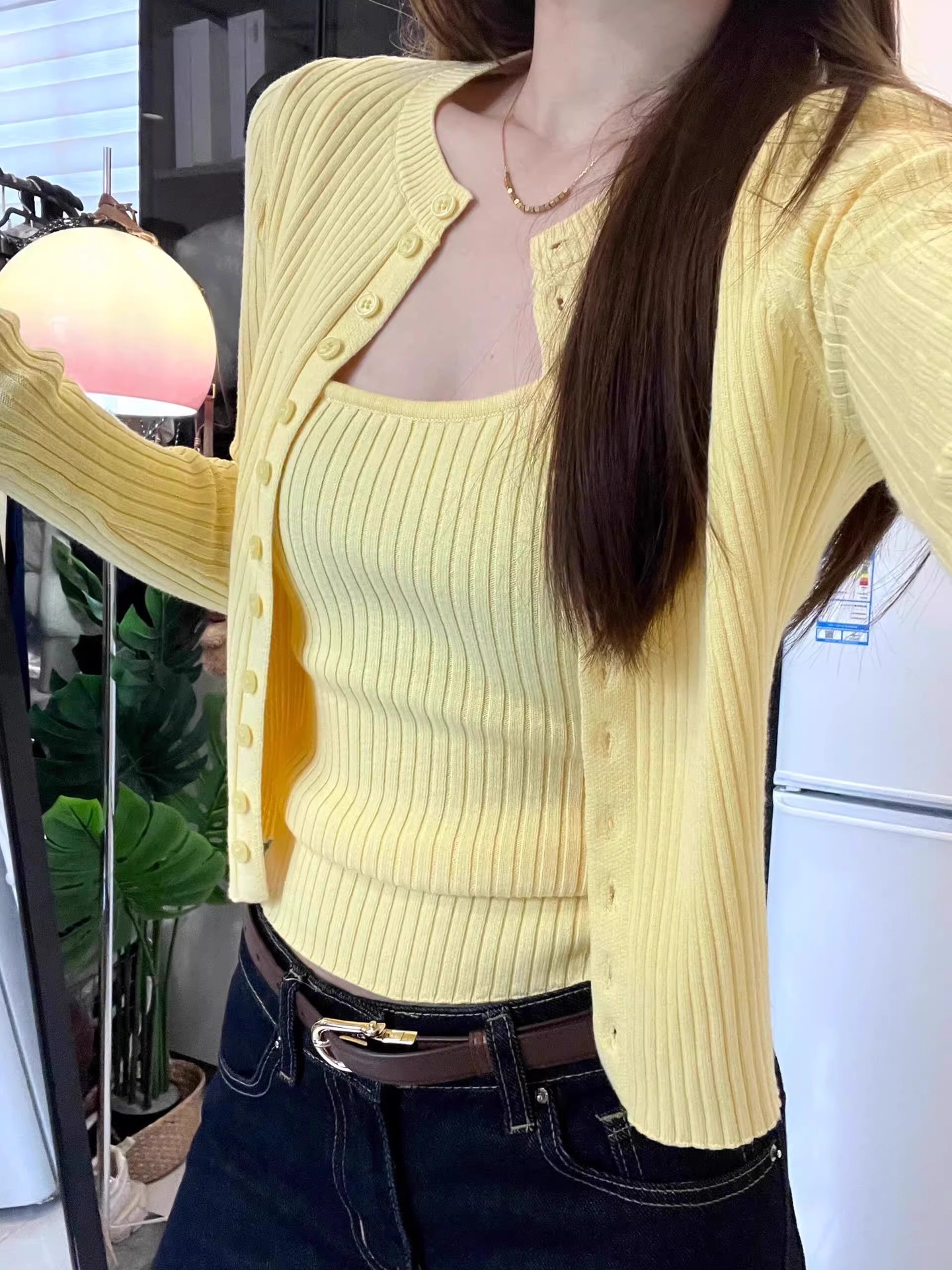 부드러운 스타일 노란색 짧은 니트 카디건 재킷 여성용 봄 인테리어 슬림 핏 카미 솔 니치 투피스 세트스토어 가기
