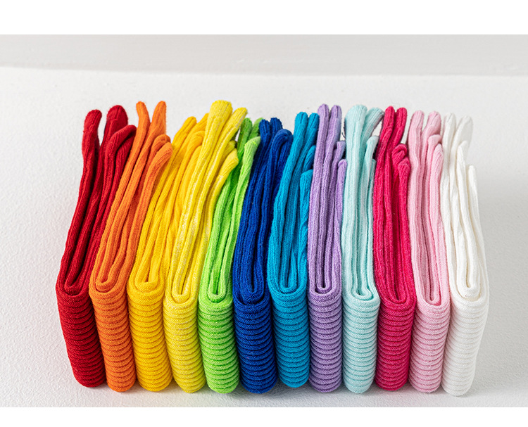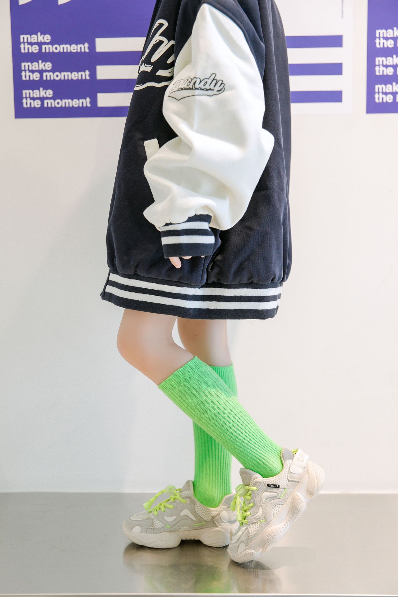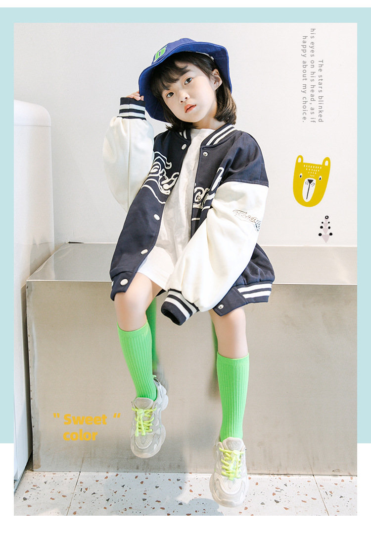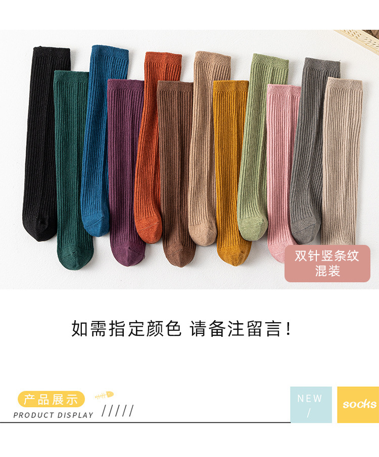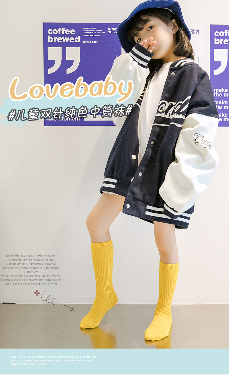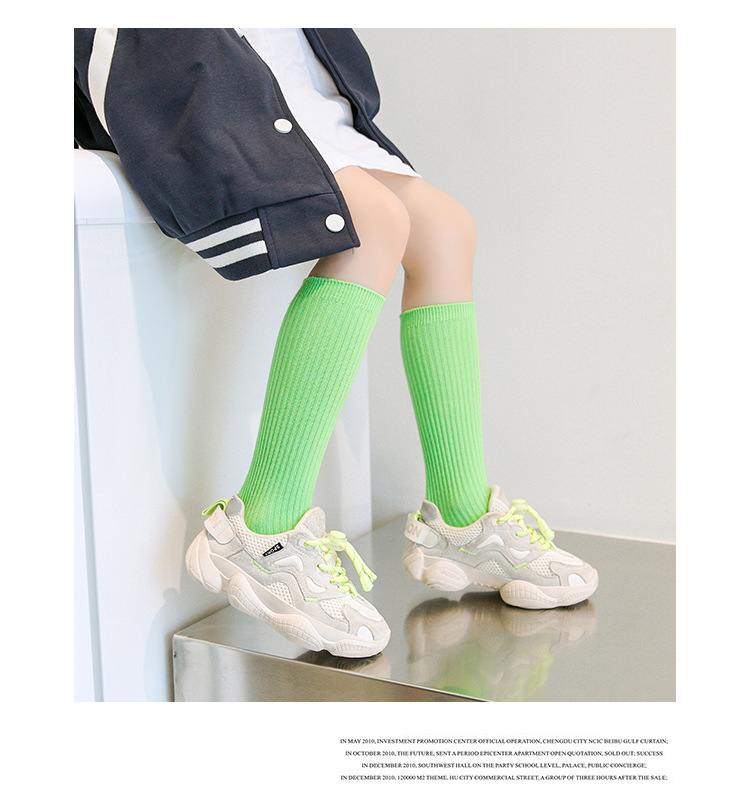 밝은 색상의 어린이 양말, 형광색, 남아 및 여아용 양말, 이중 바늘 종아리 양말, 스트레이트 긴 양말, 봄, 가을 면 양말스토어 가기