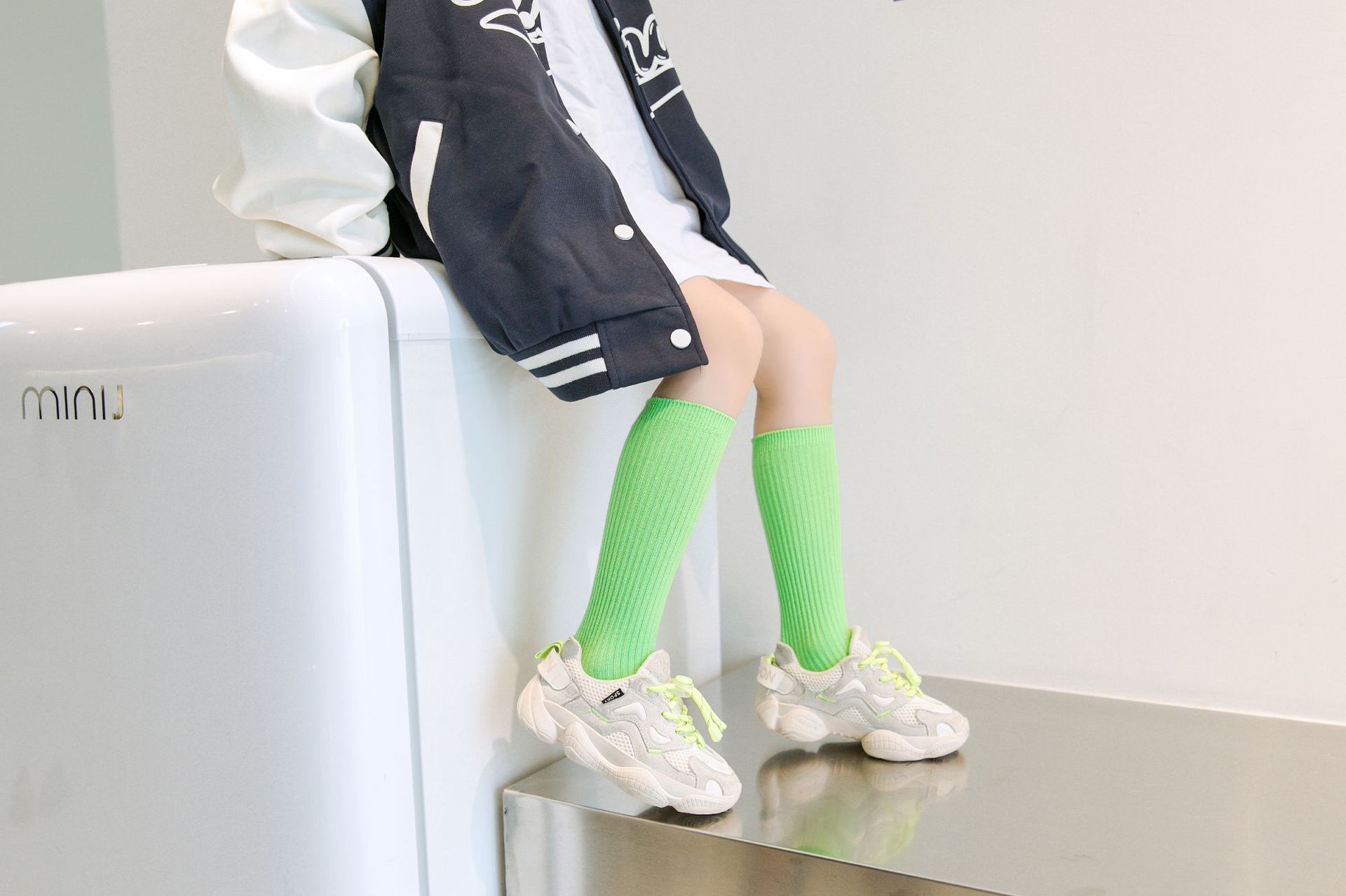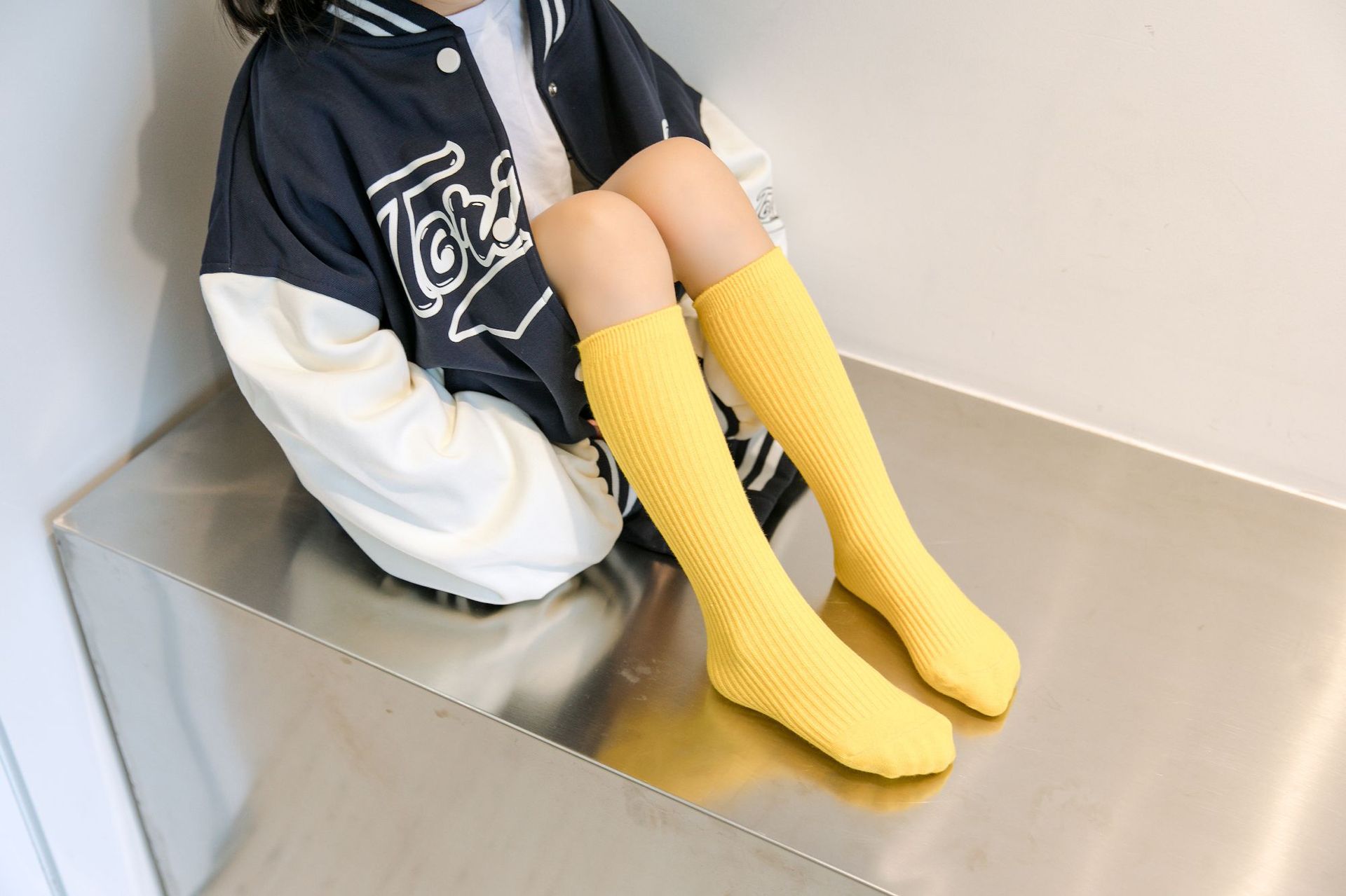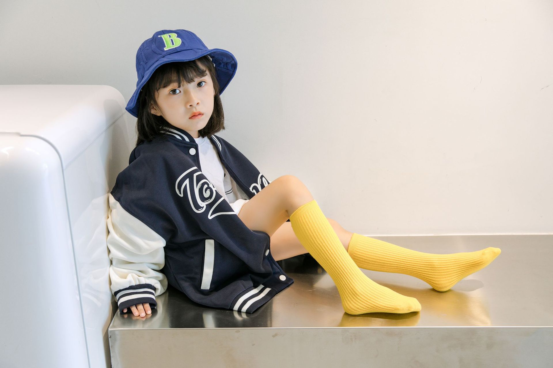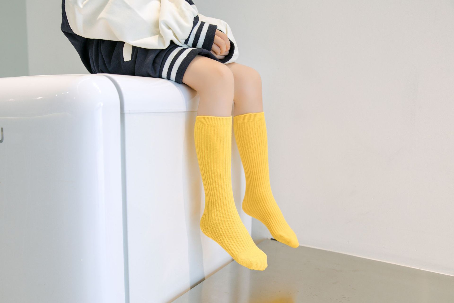 밝은 색상의 어린이 양말, 형광색, 남아 및 여아용 양말, 이중 바늘 종아리 양말, 스트레이트 긴 양말, 봄, 가을 면 양말스토어 가기