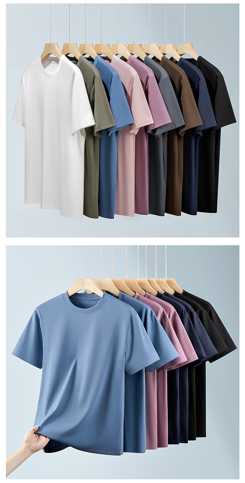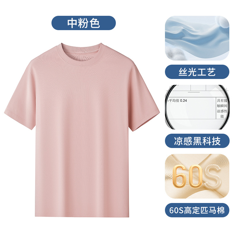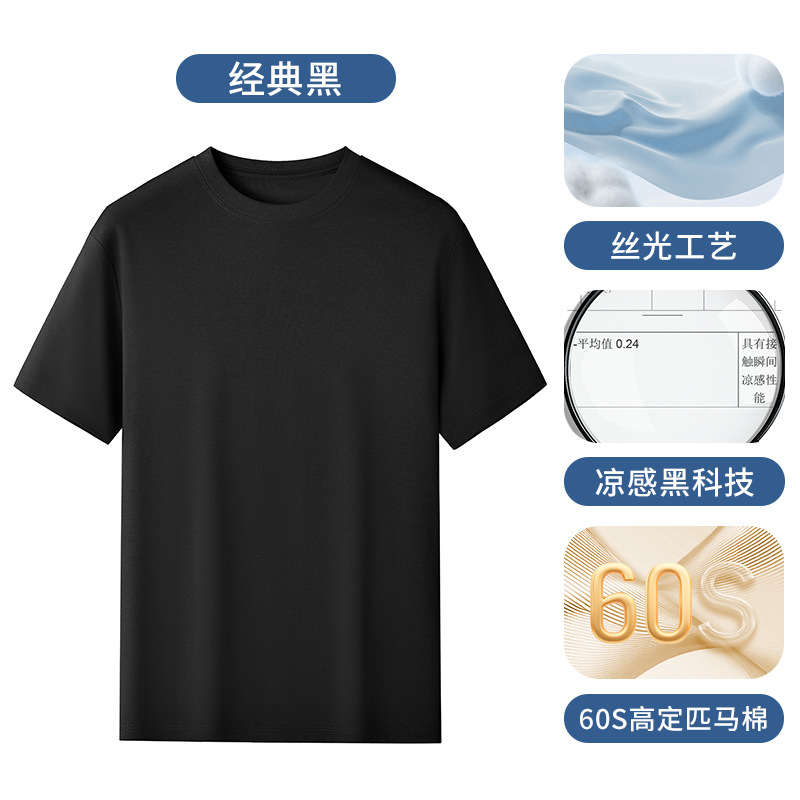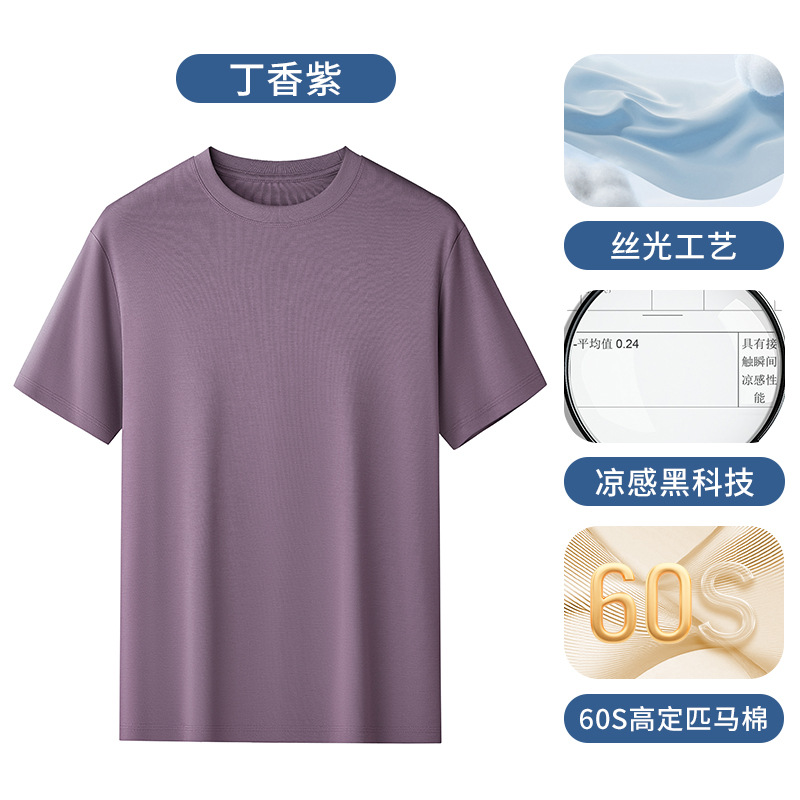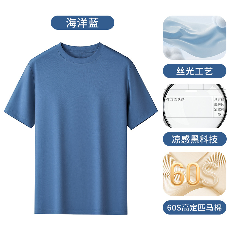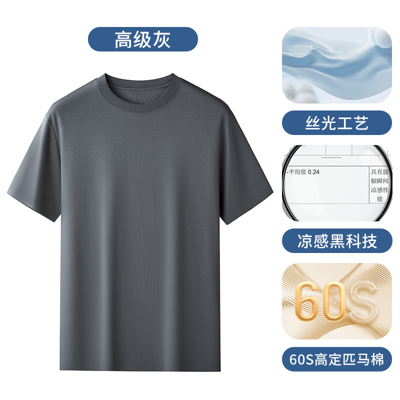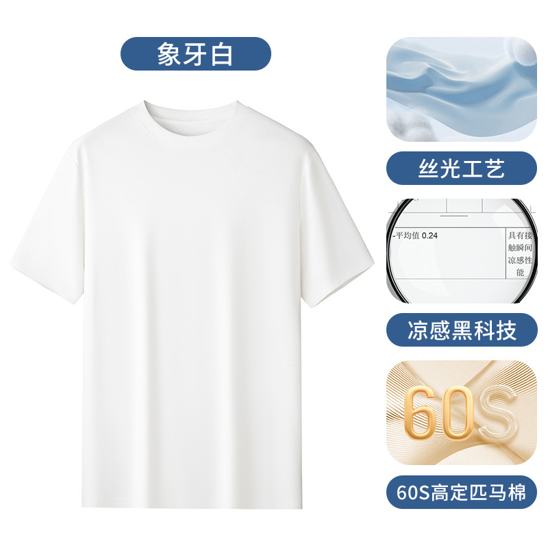 60S 하이 브랜치 말 코튼 반팔 화이트 티셔츠 남성용 쿨 실크 안티 주름 여름 솔리드 컬러 라운드 넥 캐주얼베이스 니트 스웨터