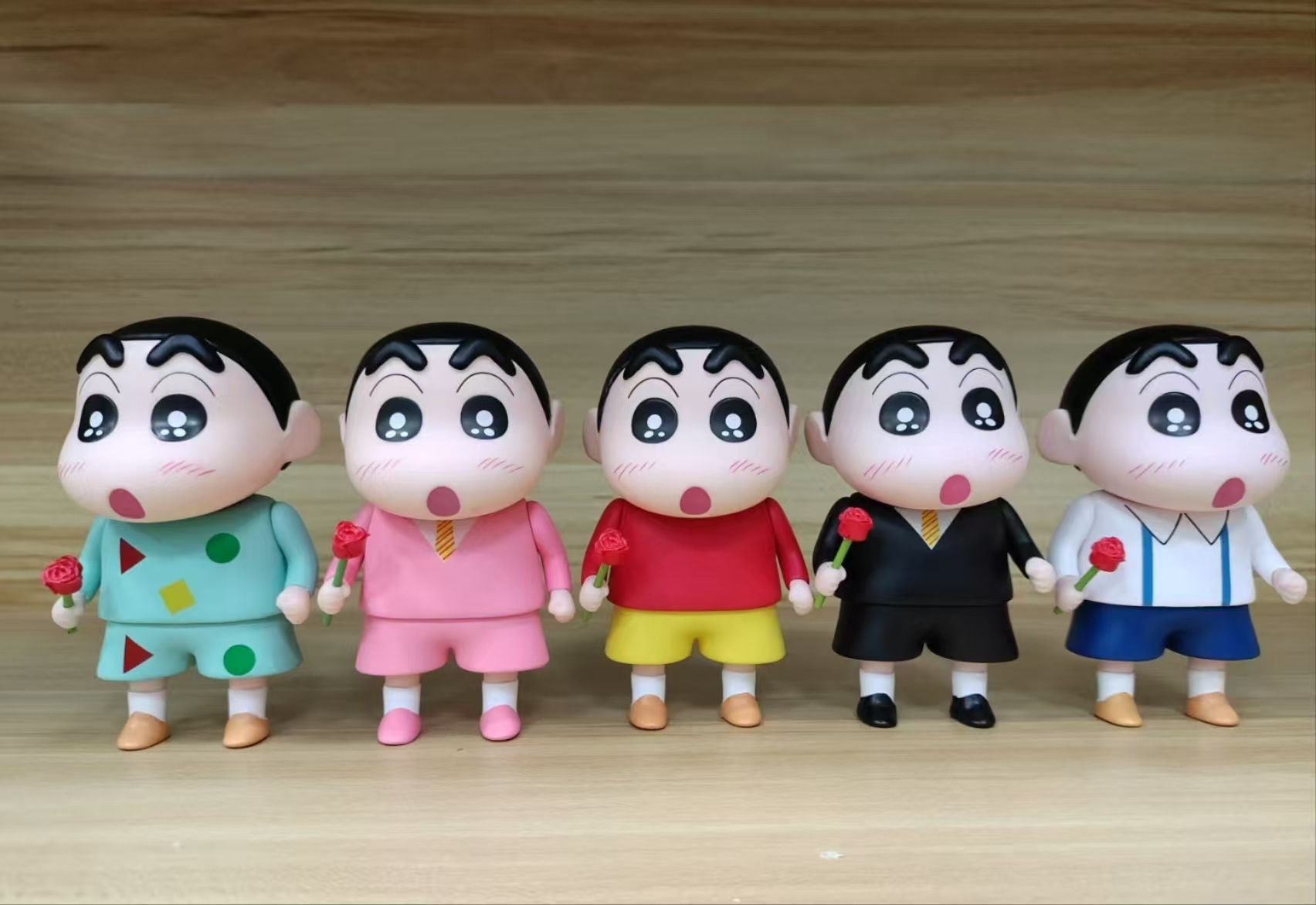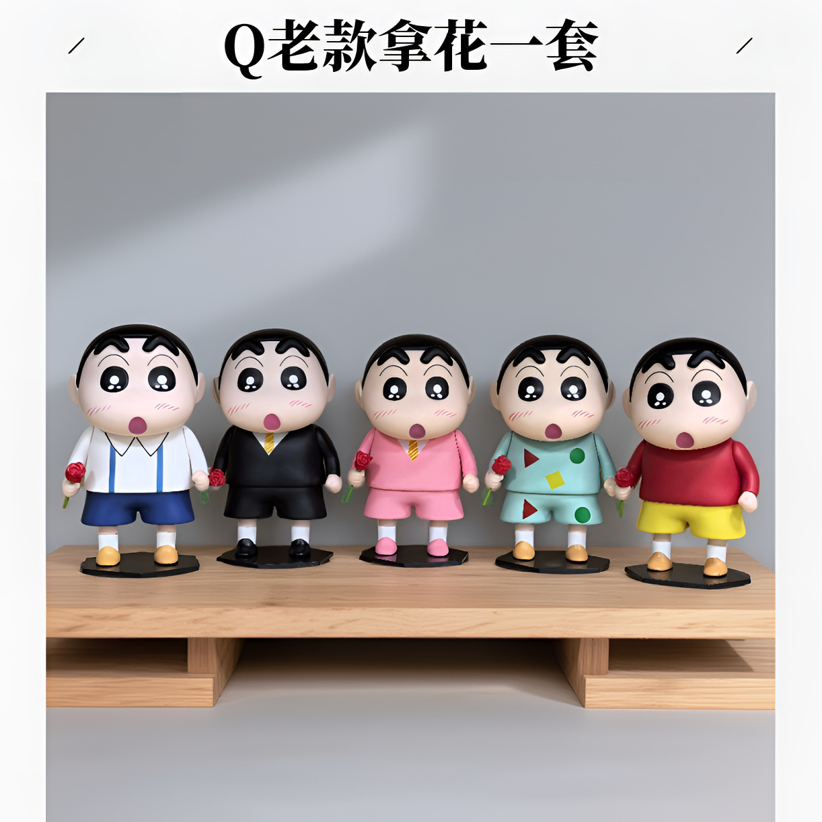 크레용 신짱 피규어 로즈 코난 귀여운 애니메이션 피규어 꽃을 들고 나하라 신노스케 인형 장식품 데스크탑