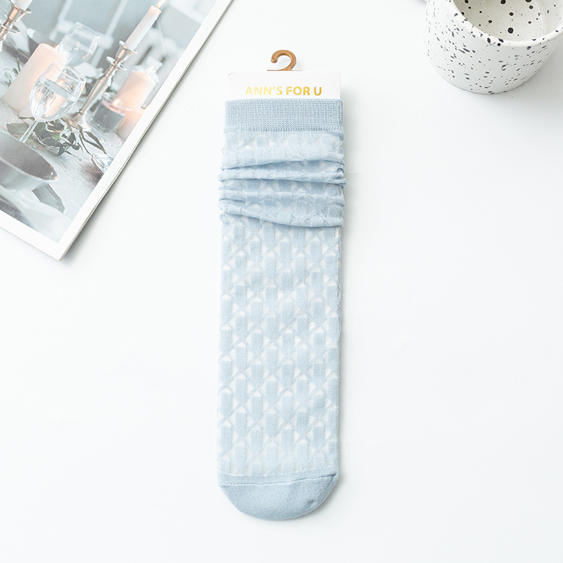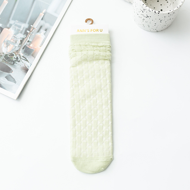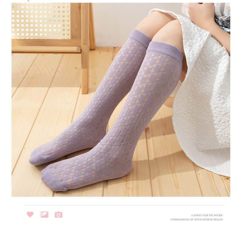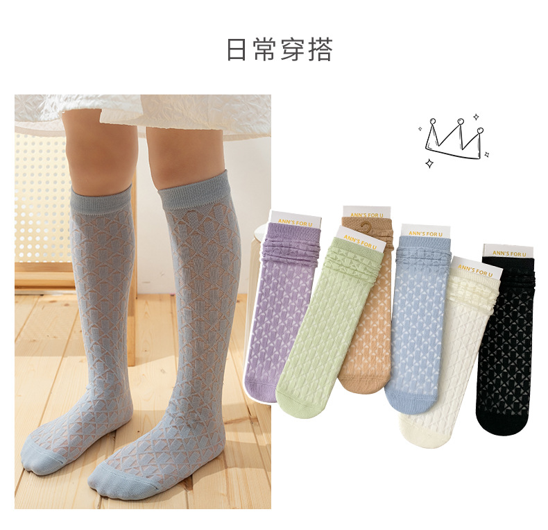 여아 종아리 양말, 여름 얇은 체크 무늬 중공 캔디 컬러 아동 양말, 학생 댄스 양말, 아동 모기 방지 양말