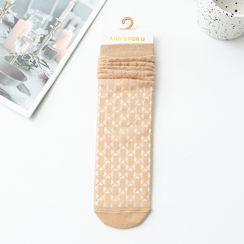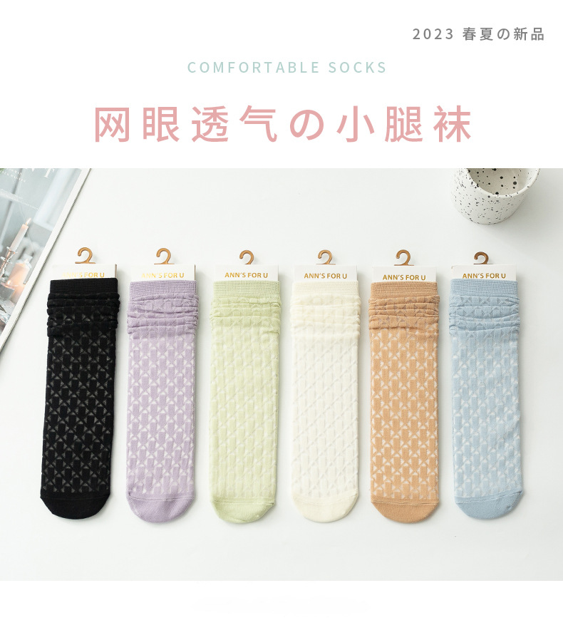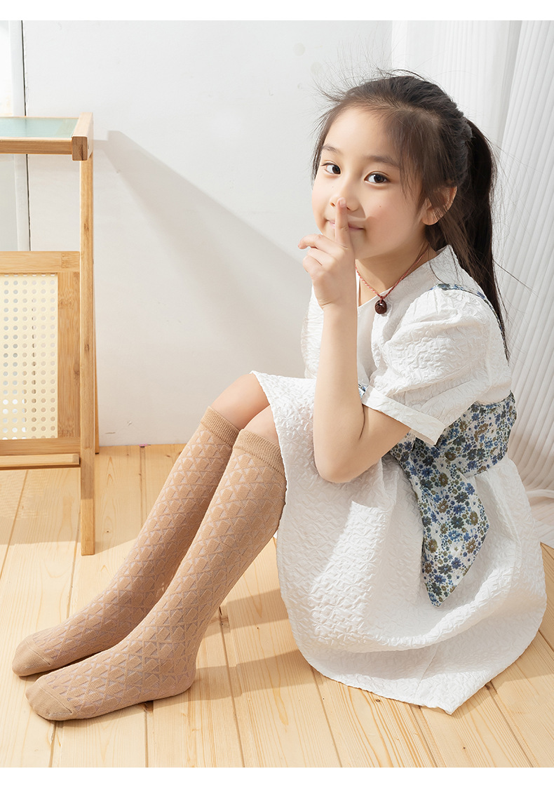 여아 종아리 양말, 여름 얇은 체크 무늬 중공 캔디 컬러 아동 양말, 학생 댄스 양말, 아동 모기 방지 양말스토어 가기