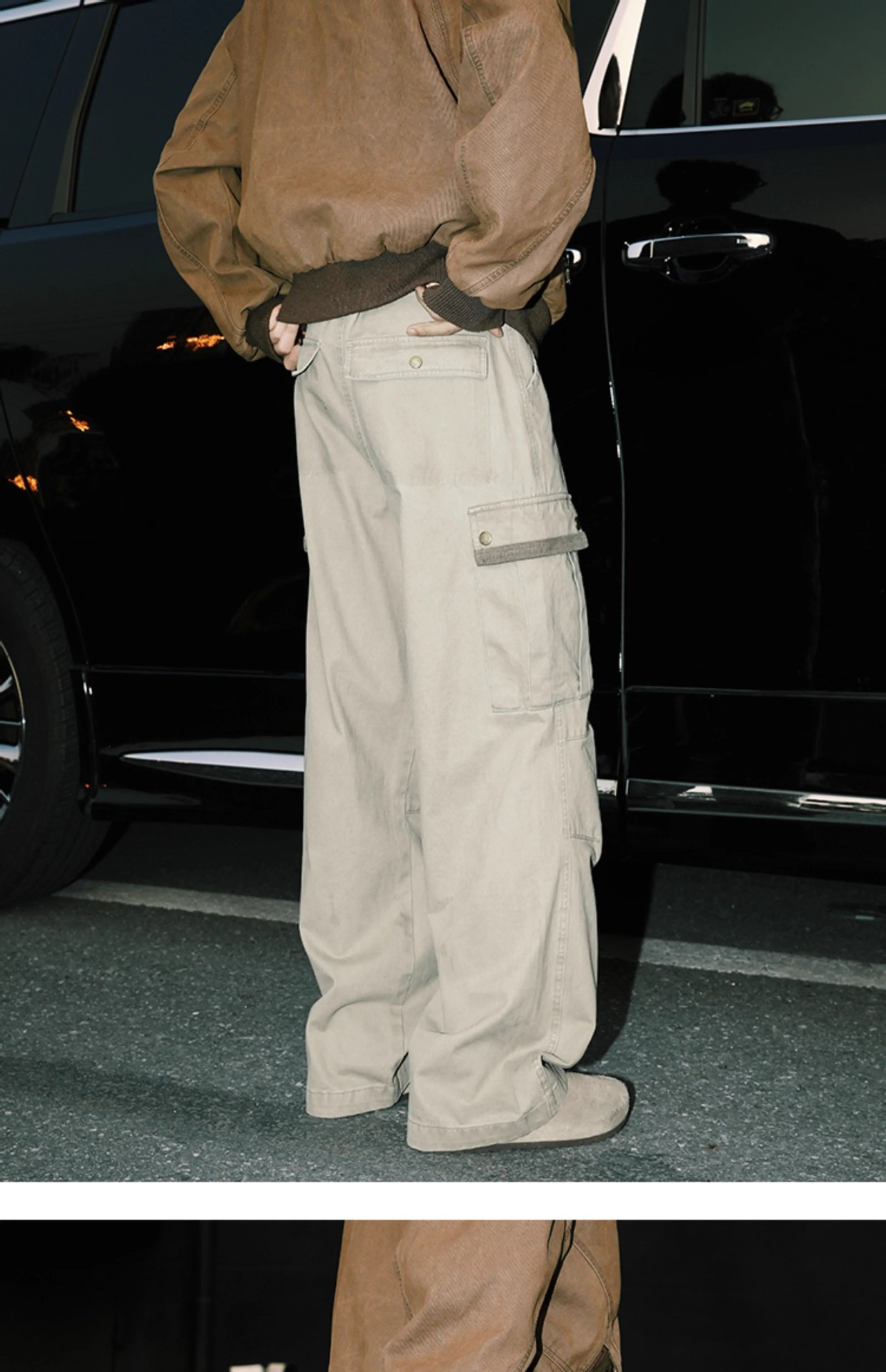 남성과 여성을 위한 아메리칸 스타일 디스트레스드 멀티 포켓 오버올, 봄 트렌디한 디자인, 클린핏 와이드 팬츠, 핸섬 캐주얼 팬츠스토어 가기