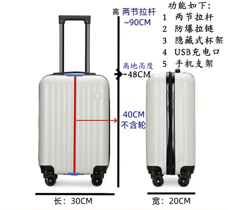소형 기내용 캐리어 16inch 트롤리 캐리어 여성용 고급스러운 경량 여행용 캐리어 남성용 203040 항공 방폭 지퍼