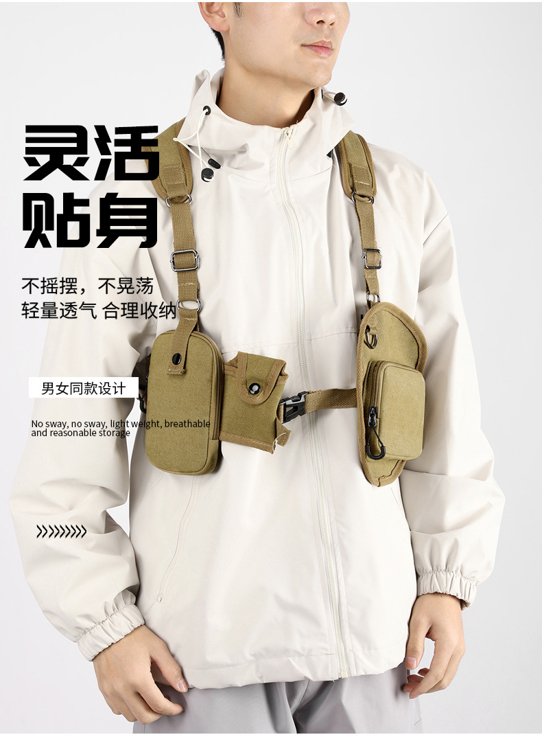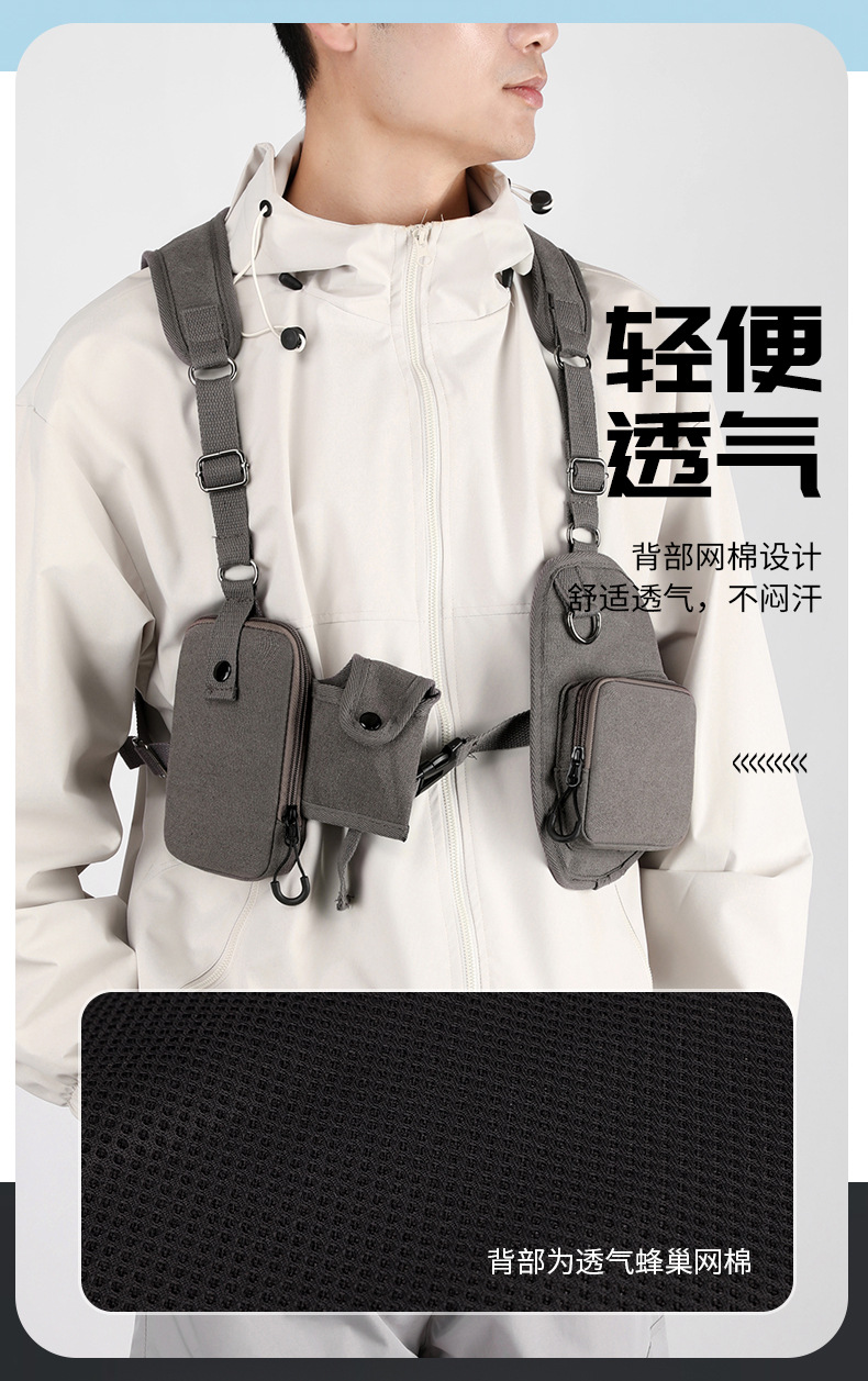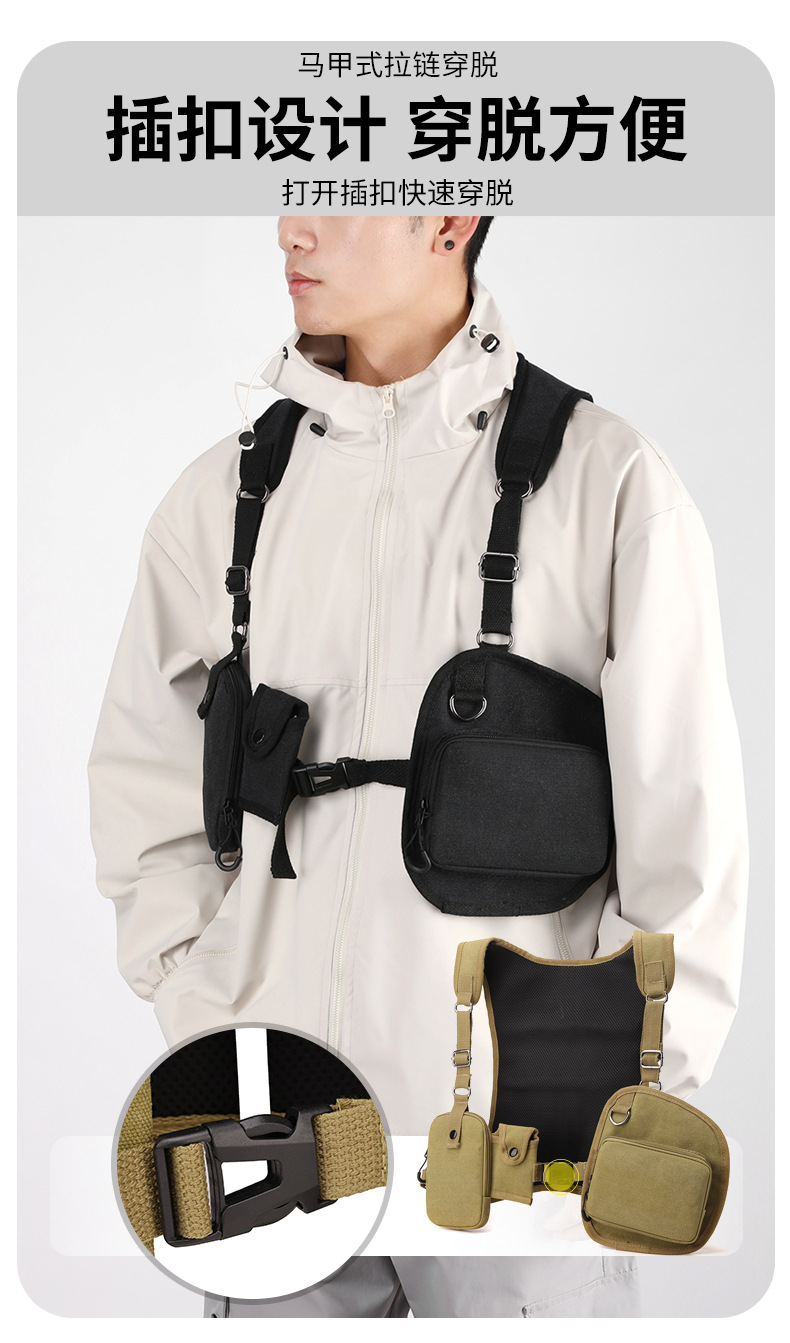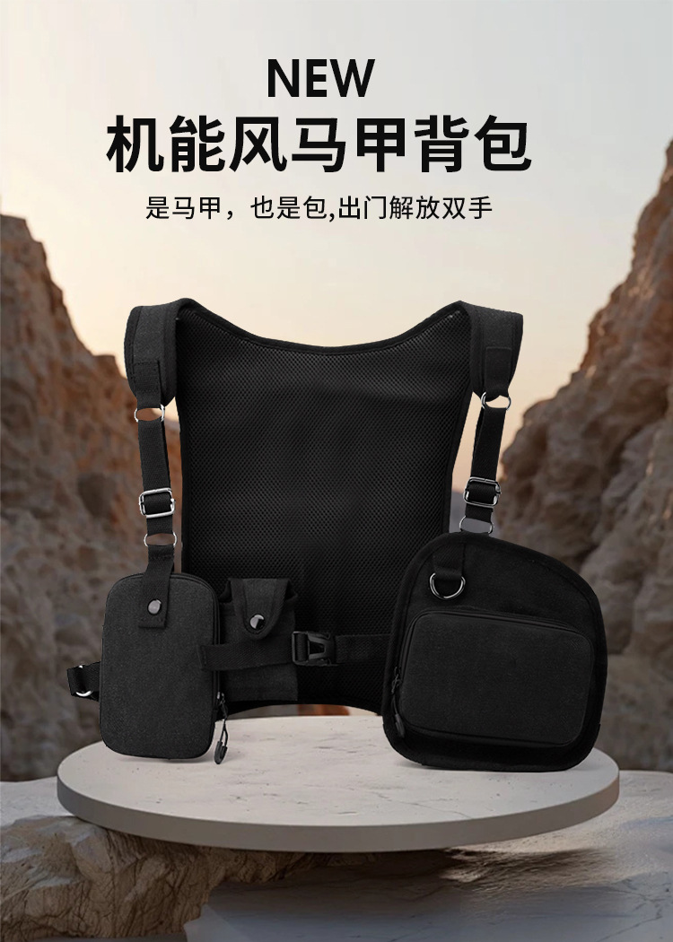 새로운 스타일의 작업 가방, 전술 가방, 트렌디한 브랜드 기능성 스타일 멀티 포켓 조끼 배낭, 트렌디하고 멋진 웨어러블 배낭 가슴 가방스토어 가기