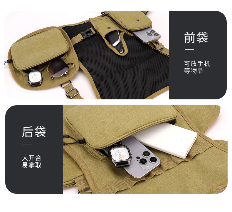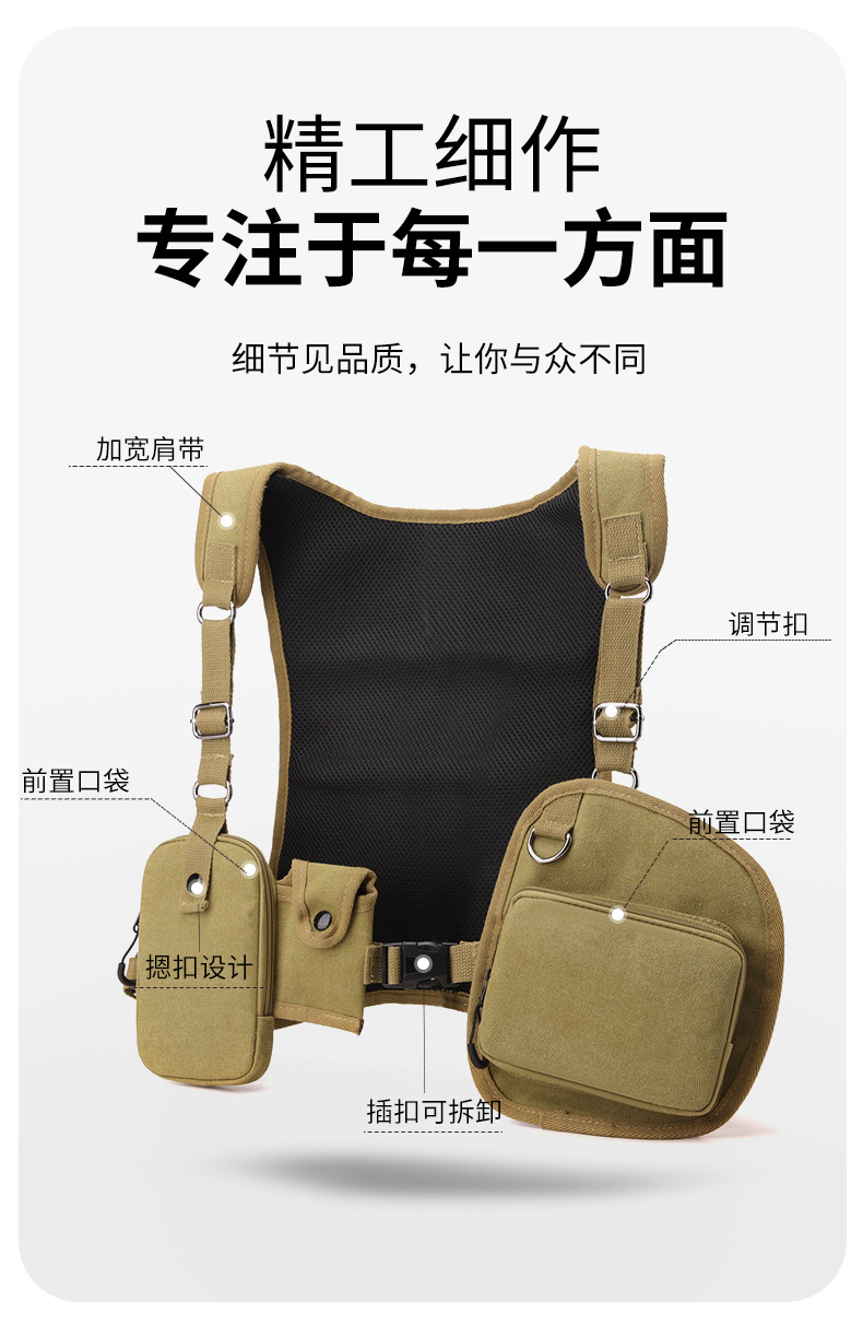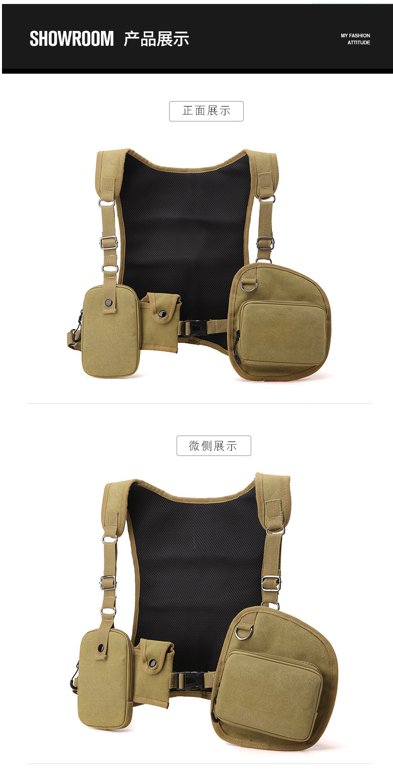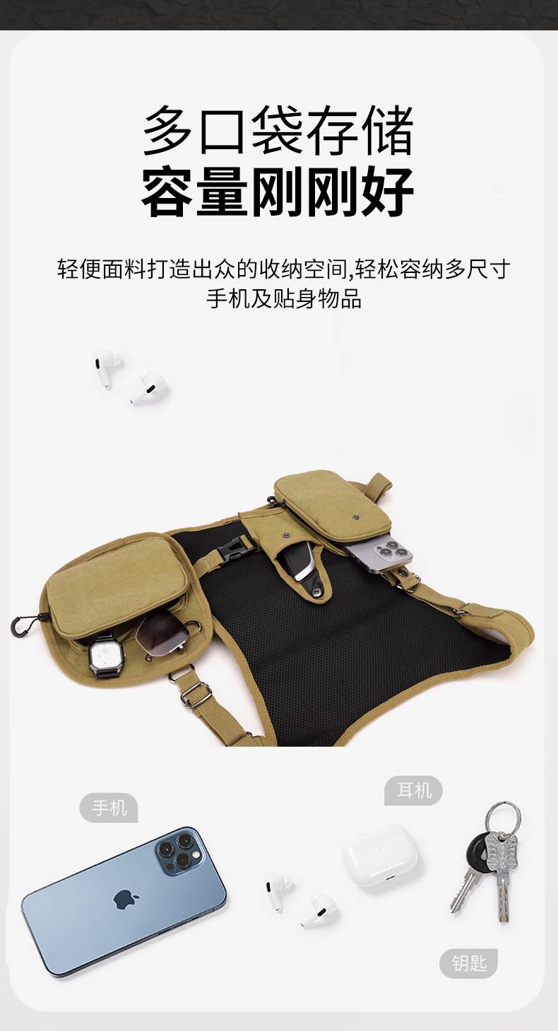 새로운 스타일의 작업 가방, 전술 가방, 트렌디한 브랜드 기능성 스타일 멀티 포켓 조끼 배낭, 트렌디하고 멋진 웨어러블 배낭 가슴 가방스토어 가기