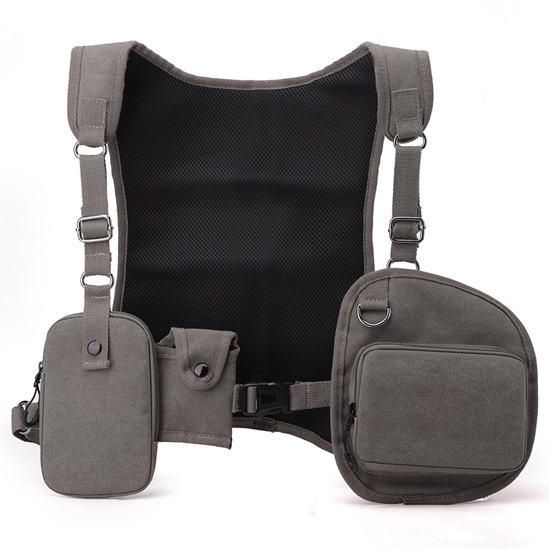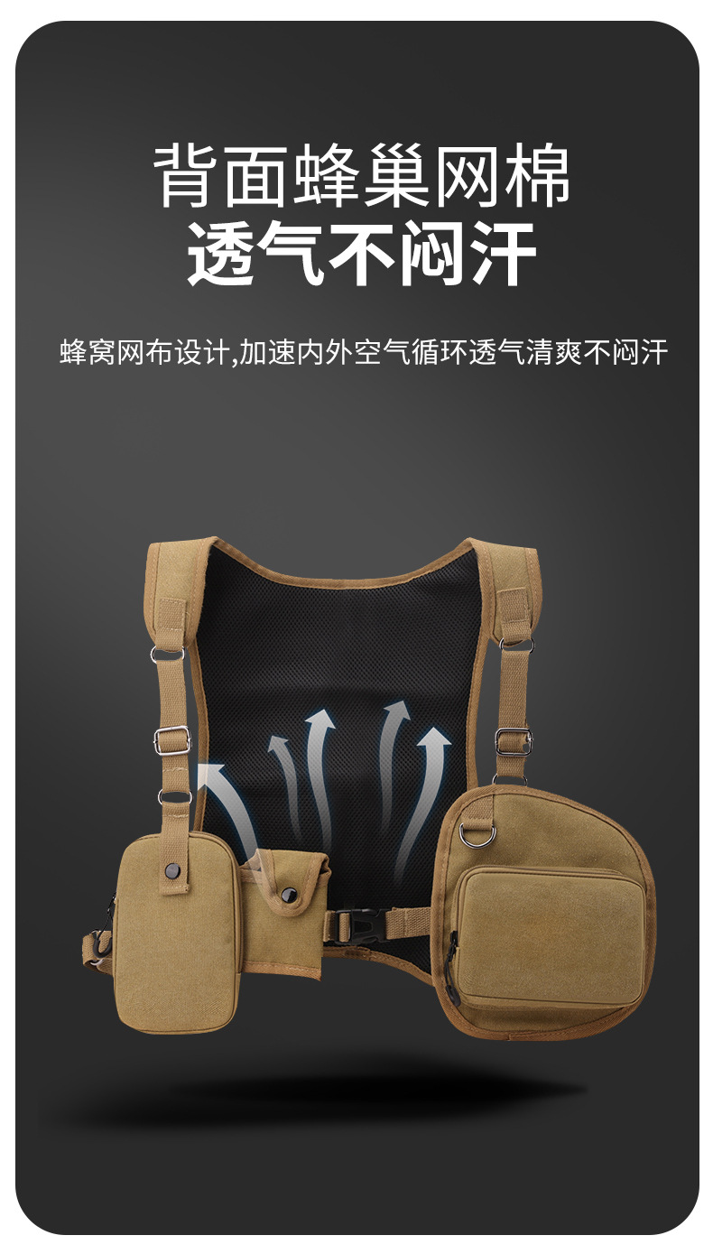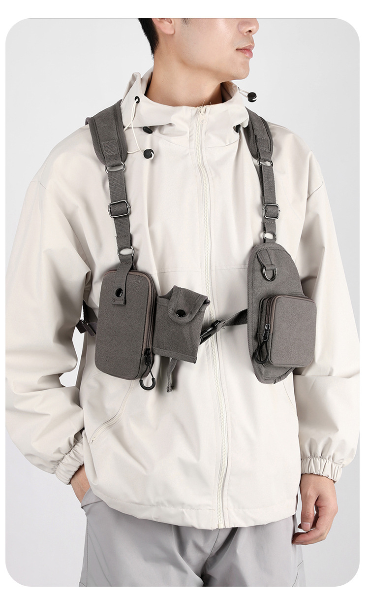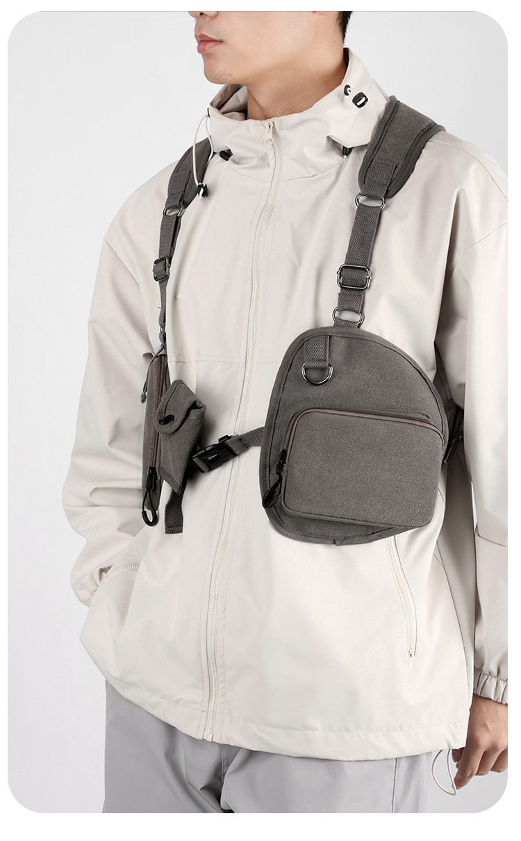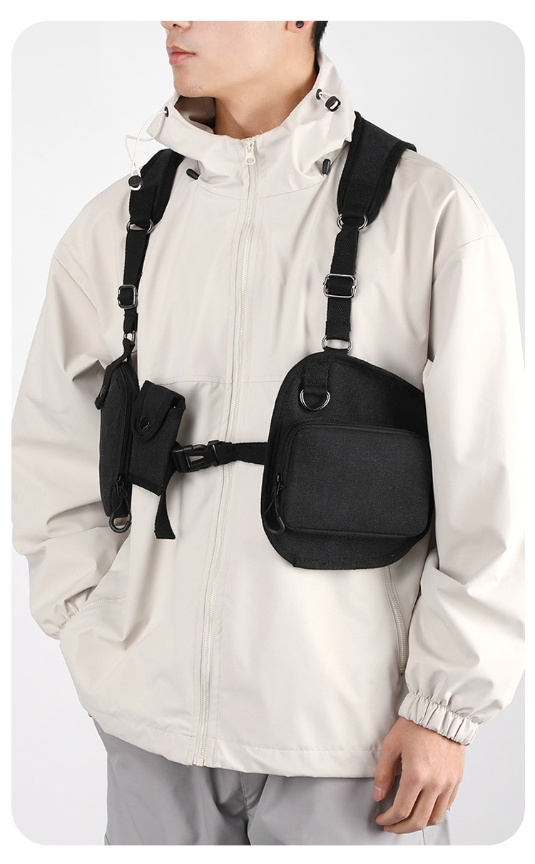 새로운 스타일의 작업 가방, 전술 가방, 트렌디한 브랜드 기능성 스타일 멀티 포켓 조끼 배낭, 트렌디하고 멋진 웨어러블 배낭 가슴 가방
