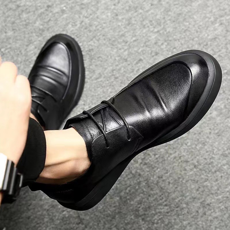 남성 캐주얼 가죽 신발 부드러운 가죽 다목적 새로운 영국 비즈니스 남성 신발 통기성 부드러운 단독 미끄럼 방지 클래식 블랙 신발스토어 가기